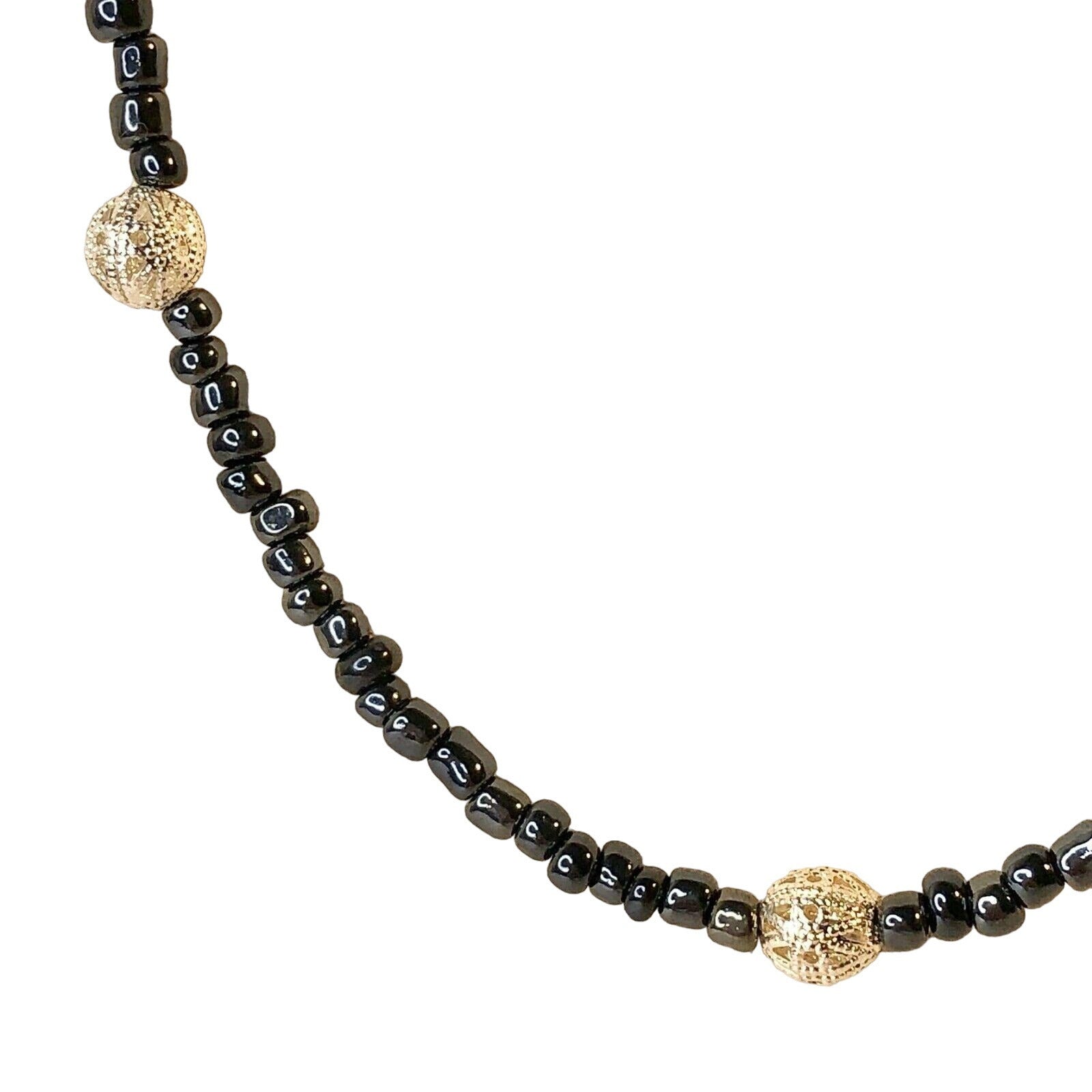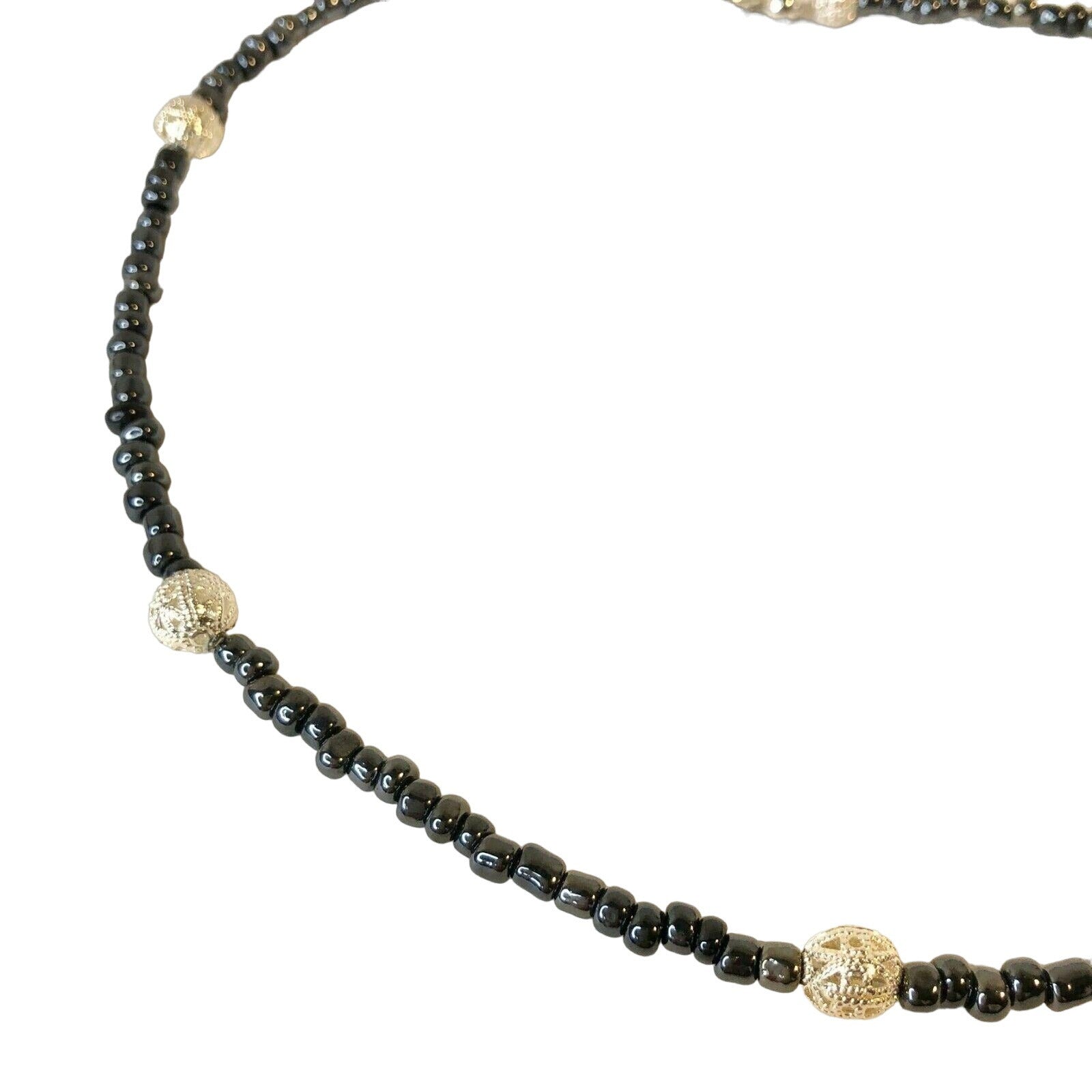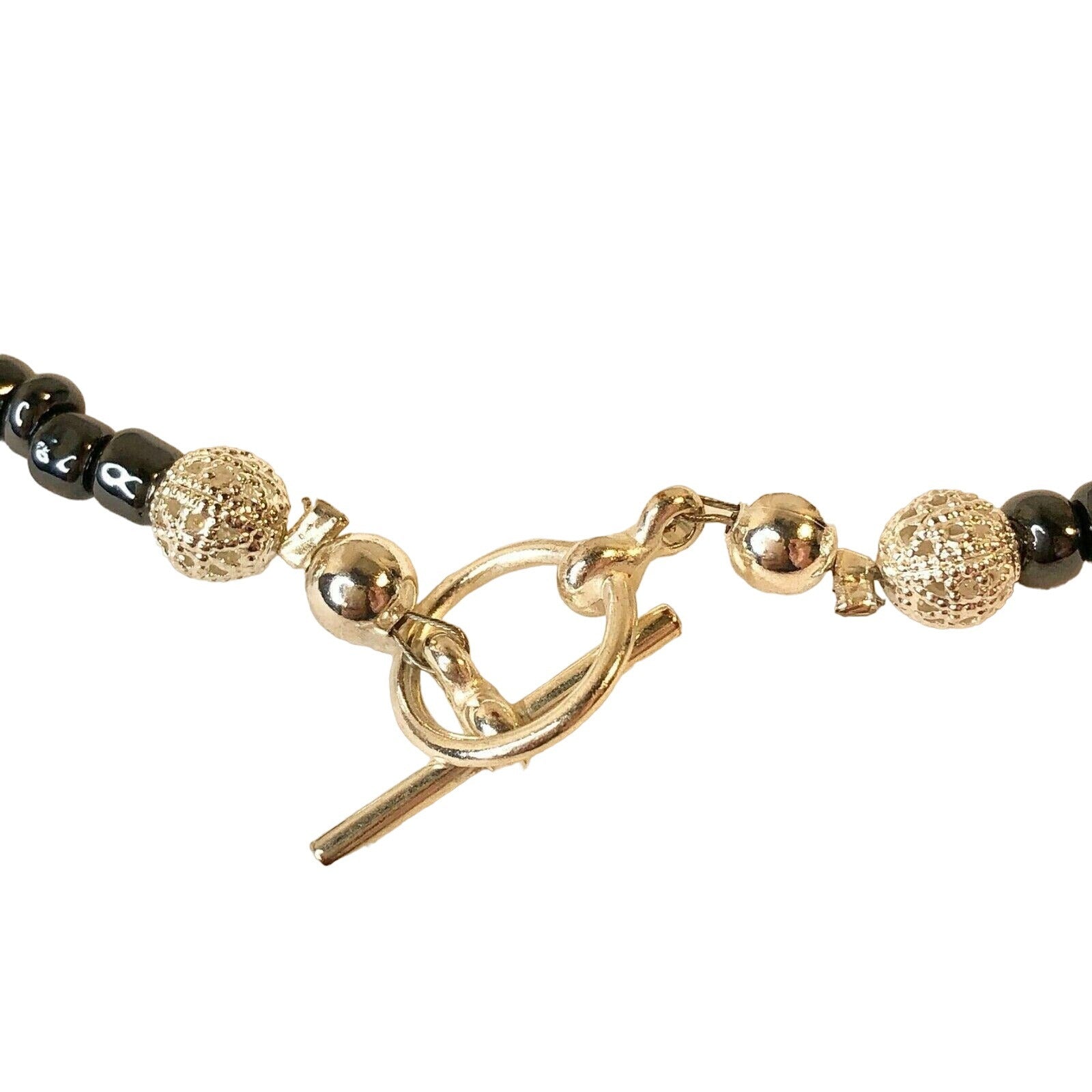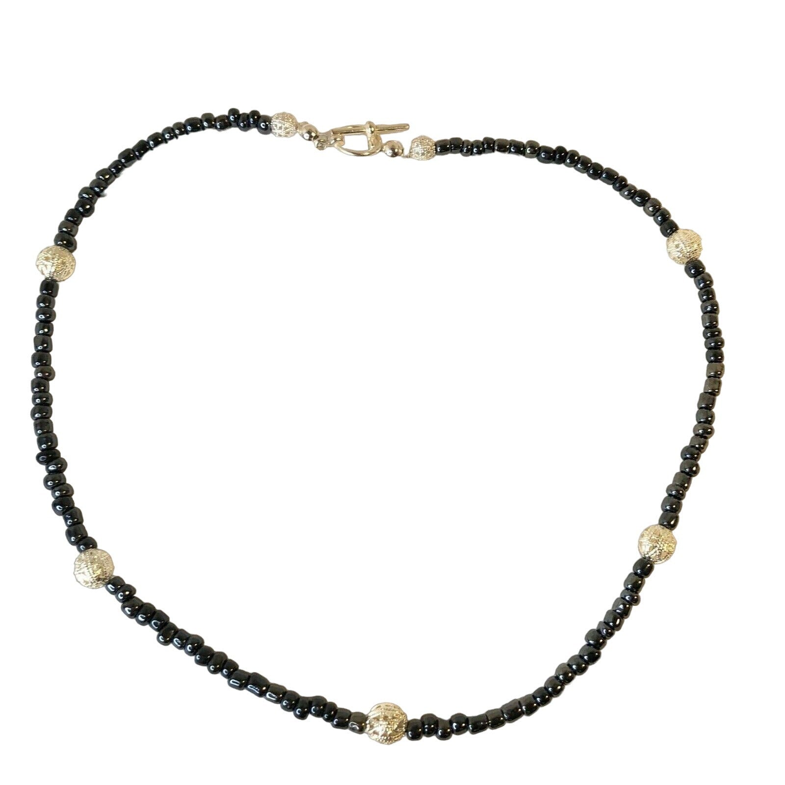 Handcrafted Beaded Necklace Pewter Colored Beads with Silver Accent Beads NEW
