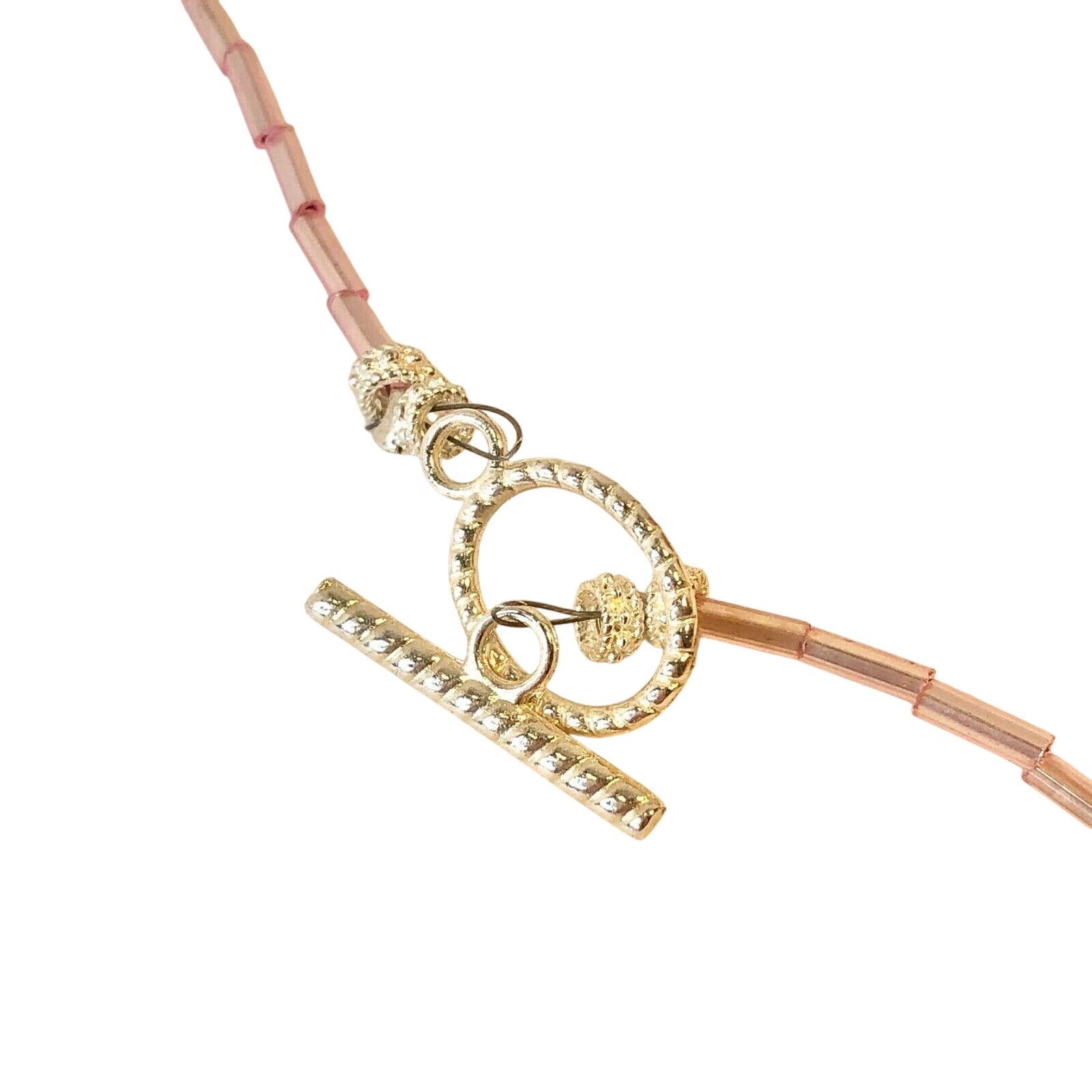 In a world of fleeting moments, this necklace tells a story of timeless elegance. Handcrafted glass beads shimmer in hues of purple, reflecting light like whispers of a shared secret. The toggle clasp secures not only the necklace but the charm of understated sophistication.