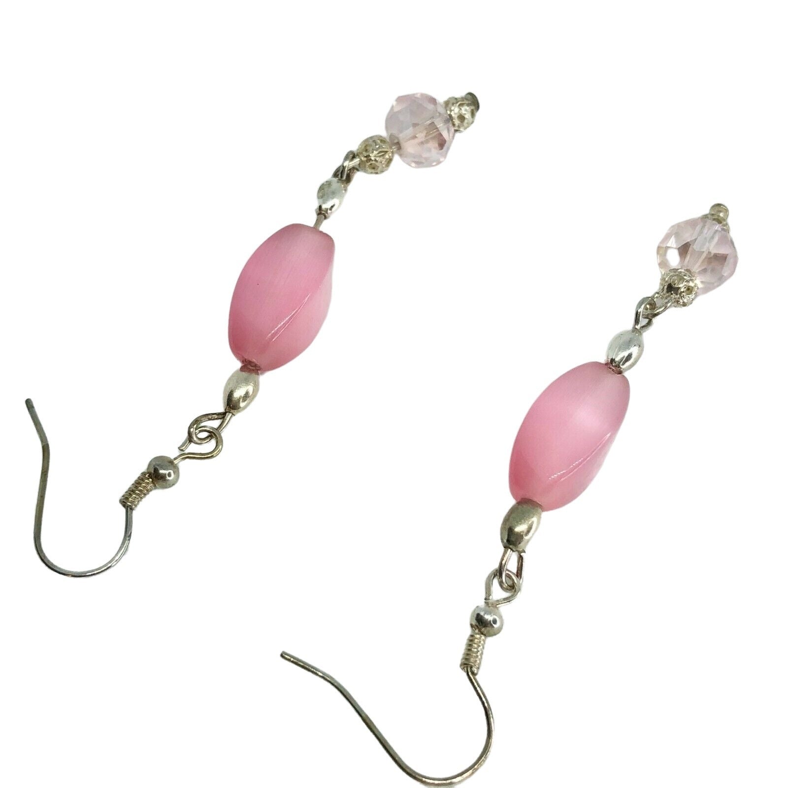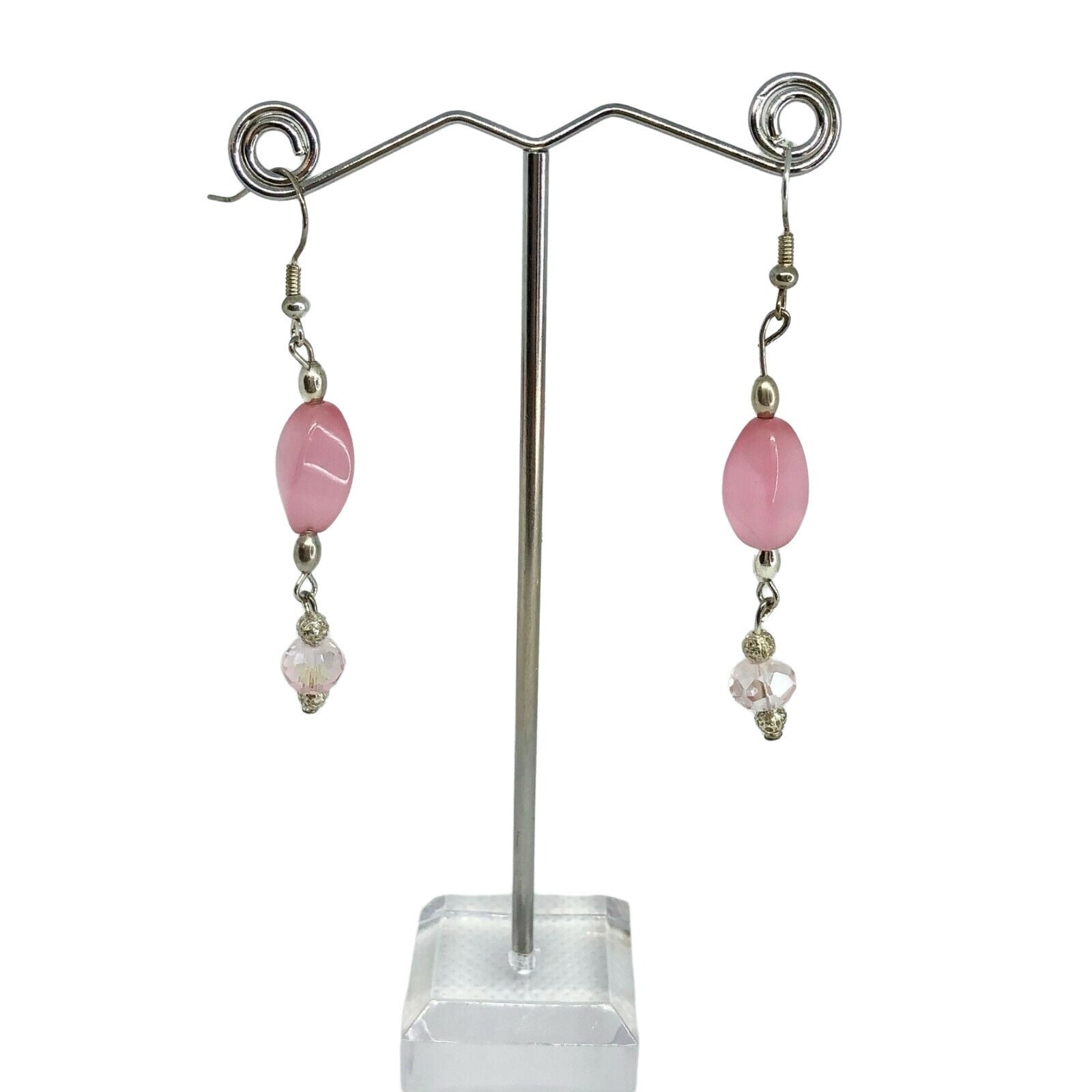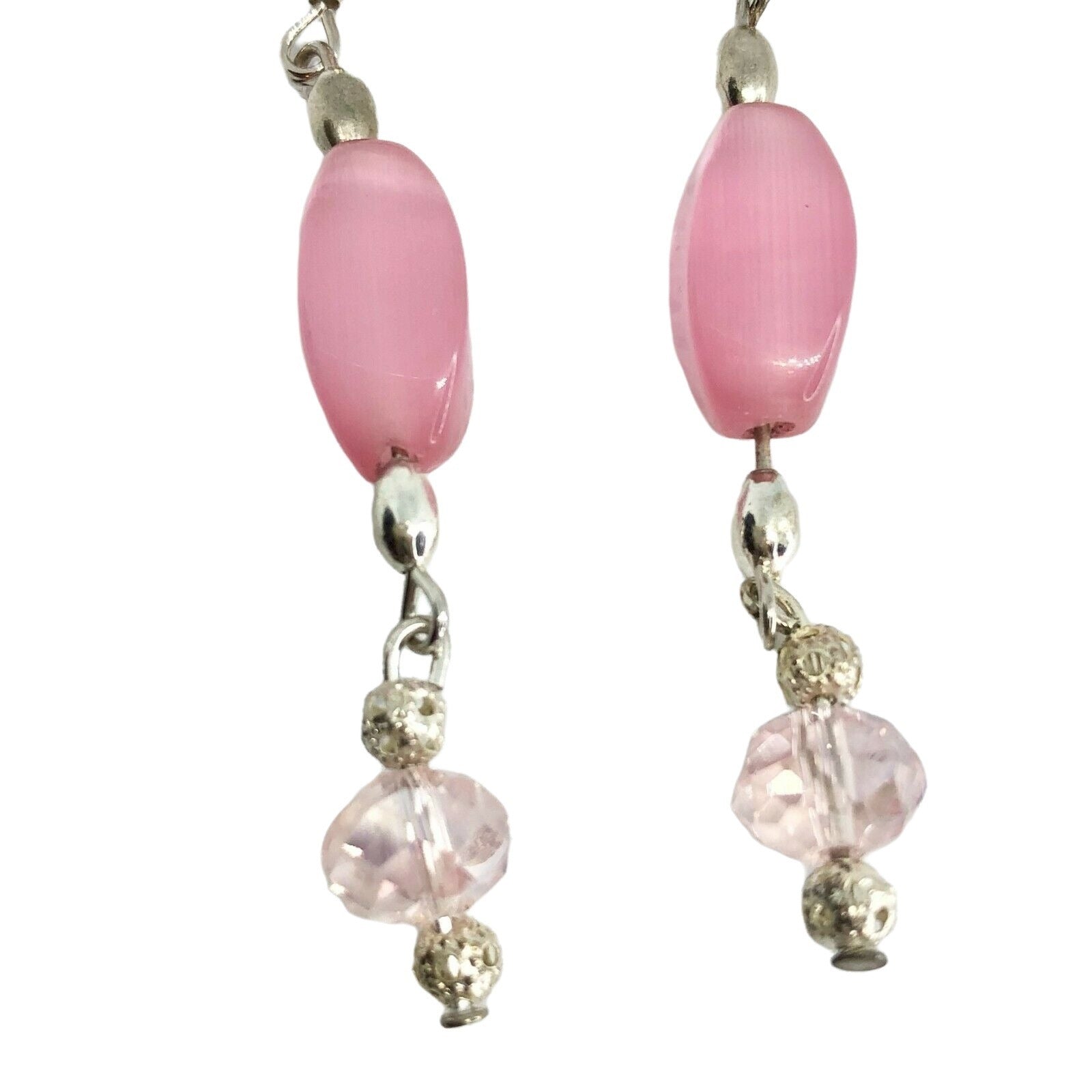 Handcrafted Earrings Pink Glass and Silver Metal Beads Delicate Spring
