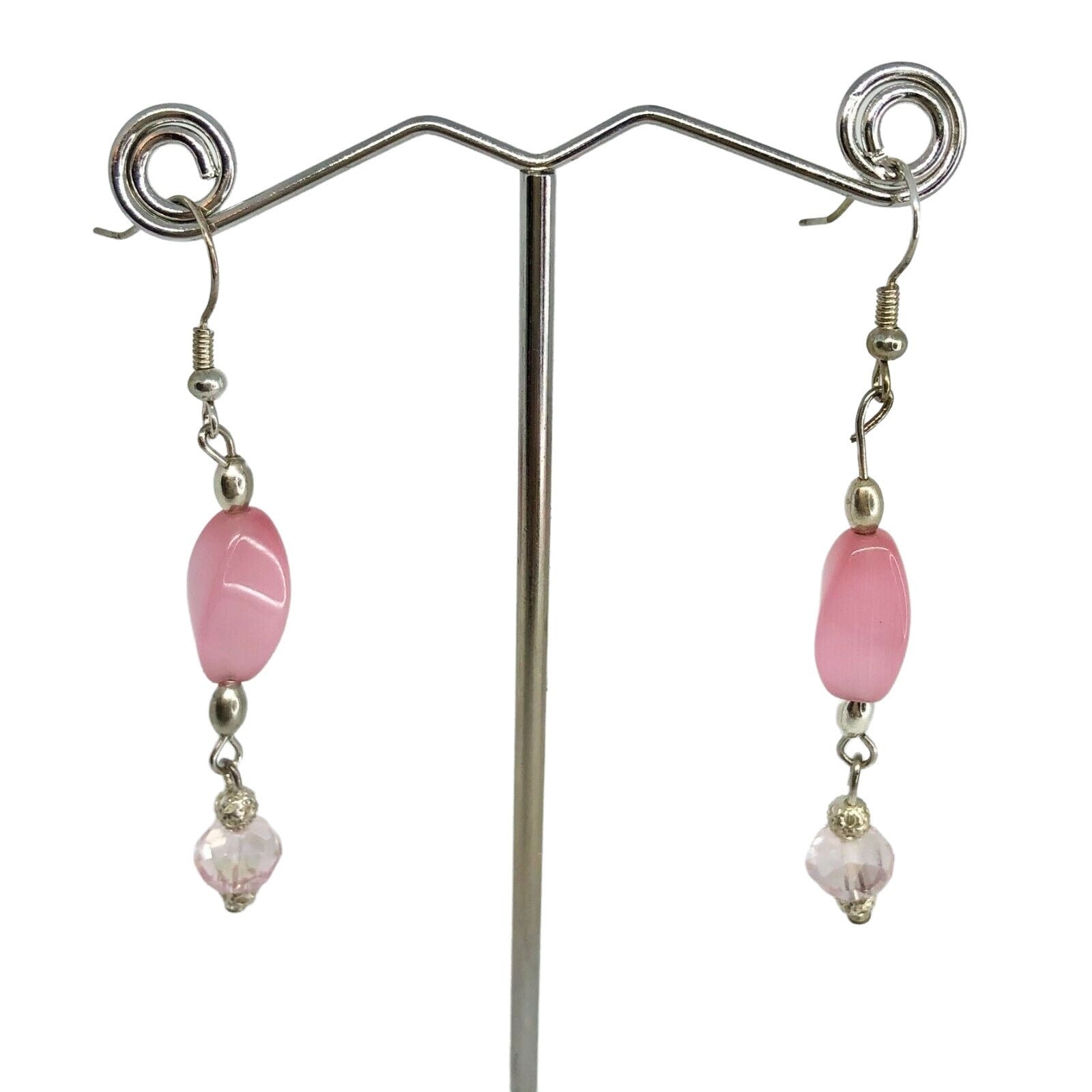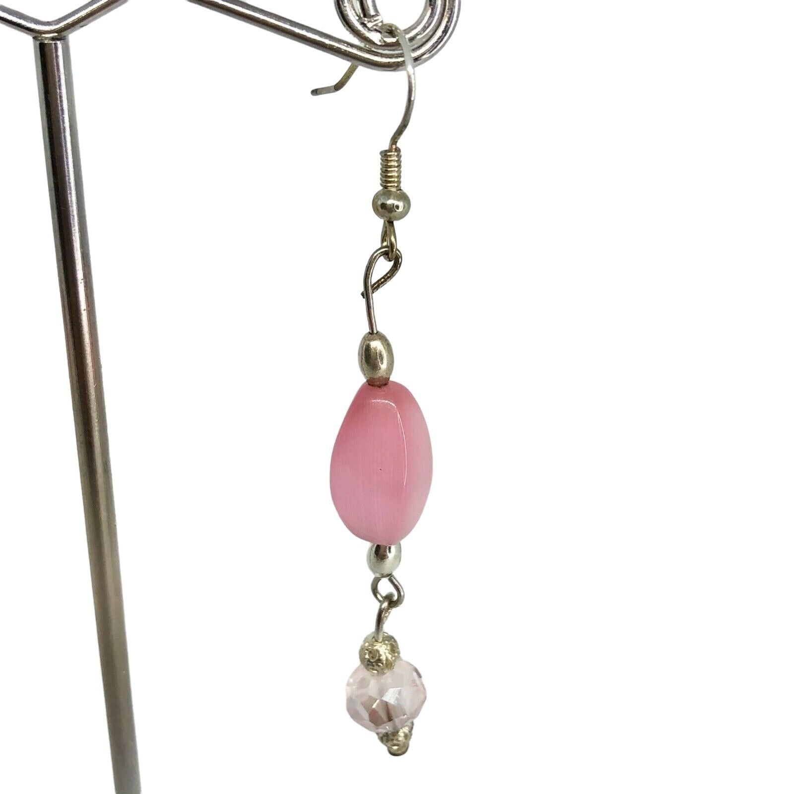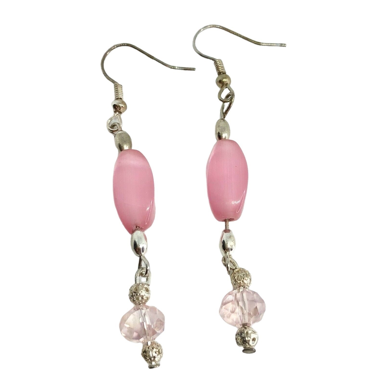 Handcrafted Earrings Pink Glass and Silver Metal Beads Delicate Spring