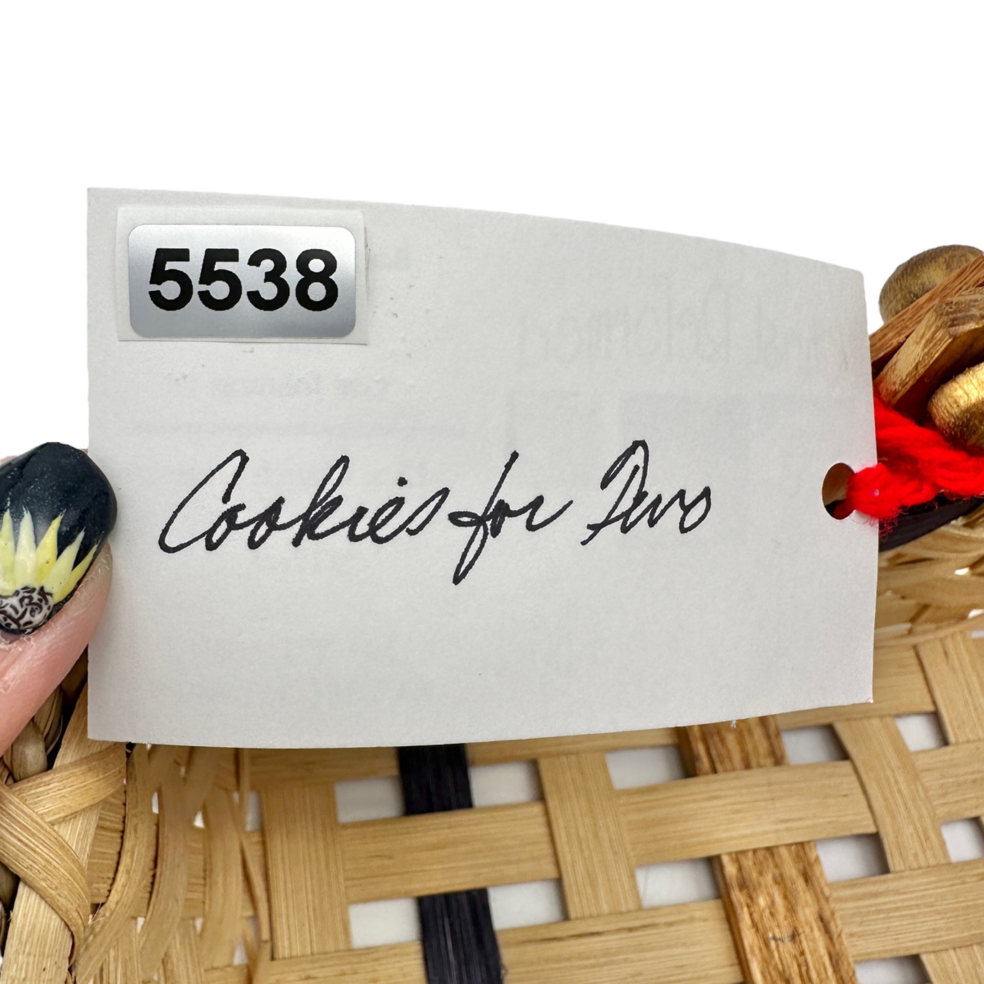 Handmade Basket Cookies for Two with Blue Accent Moveable Wooden Handle Small