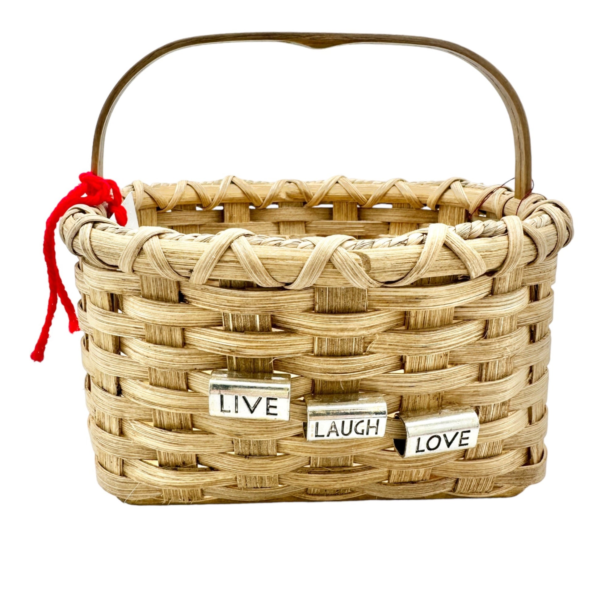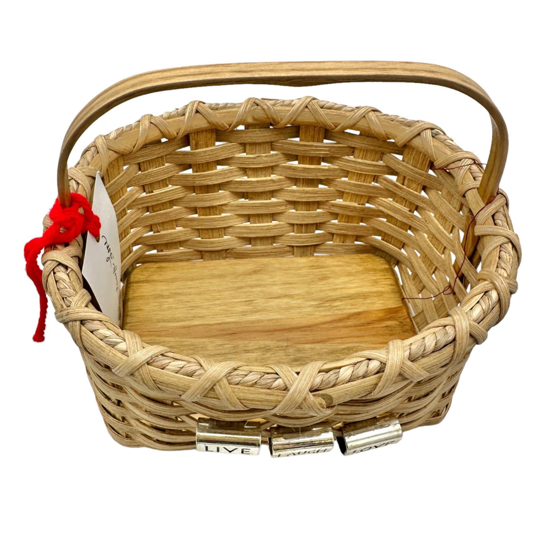 Handmade Basket Live Laugh Love Metal Accents Wood Base and Handle Small Cute