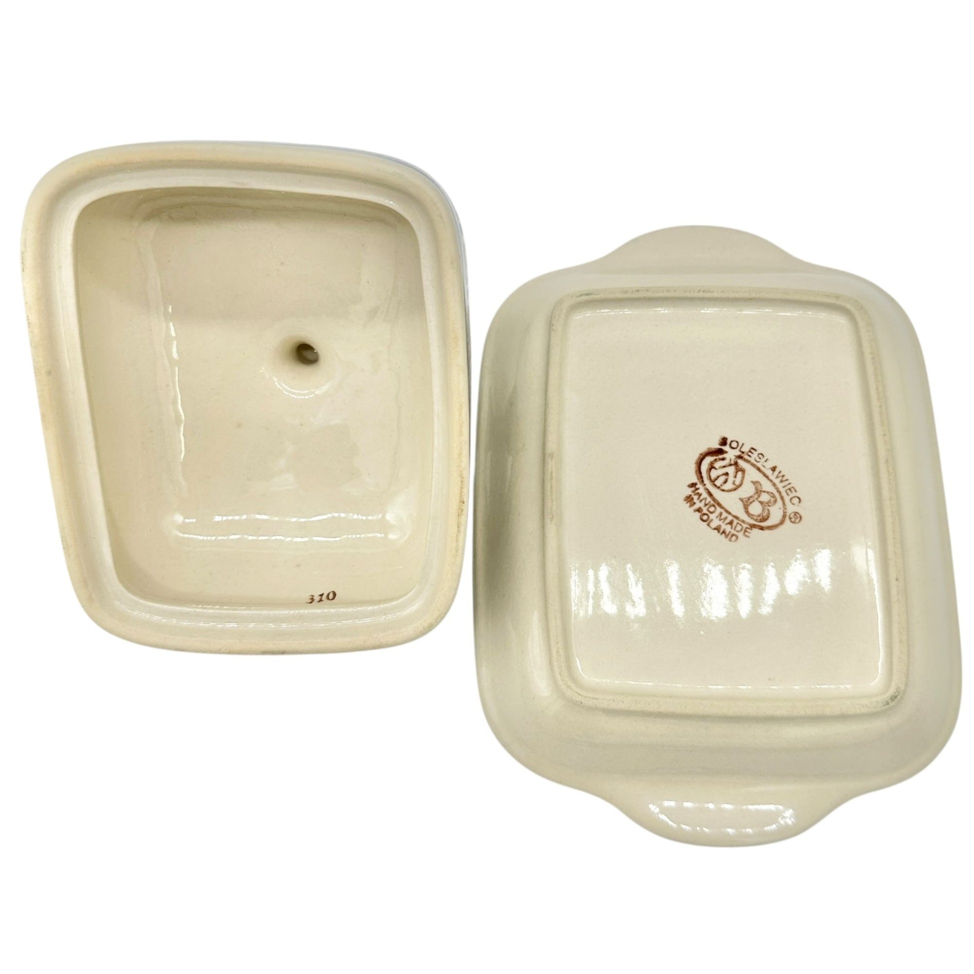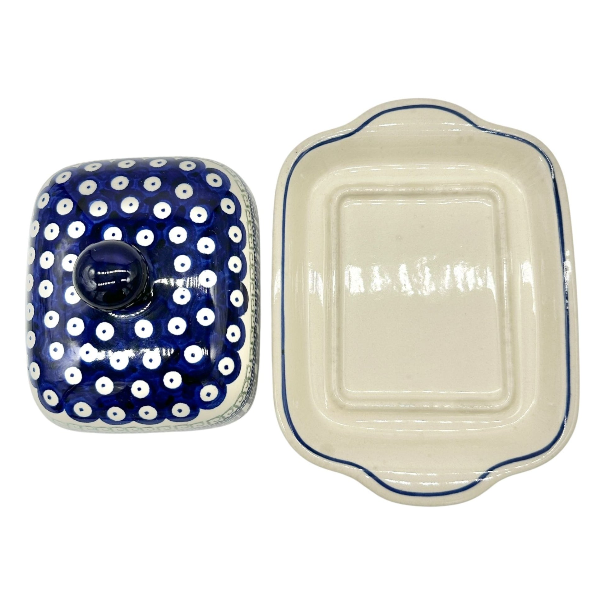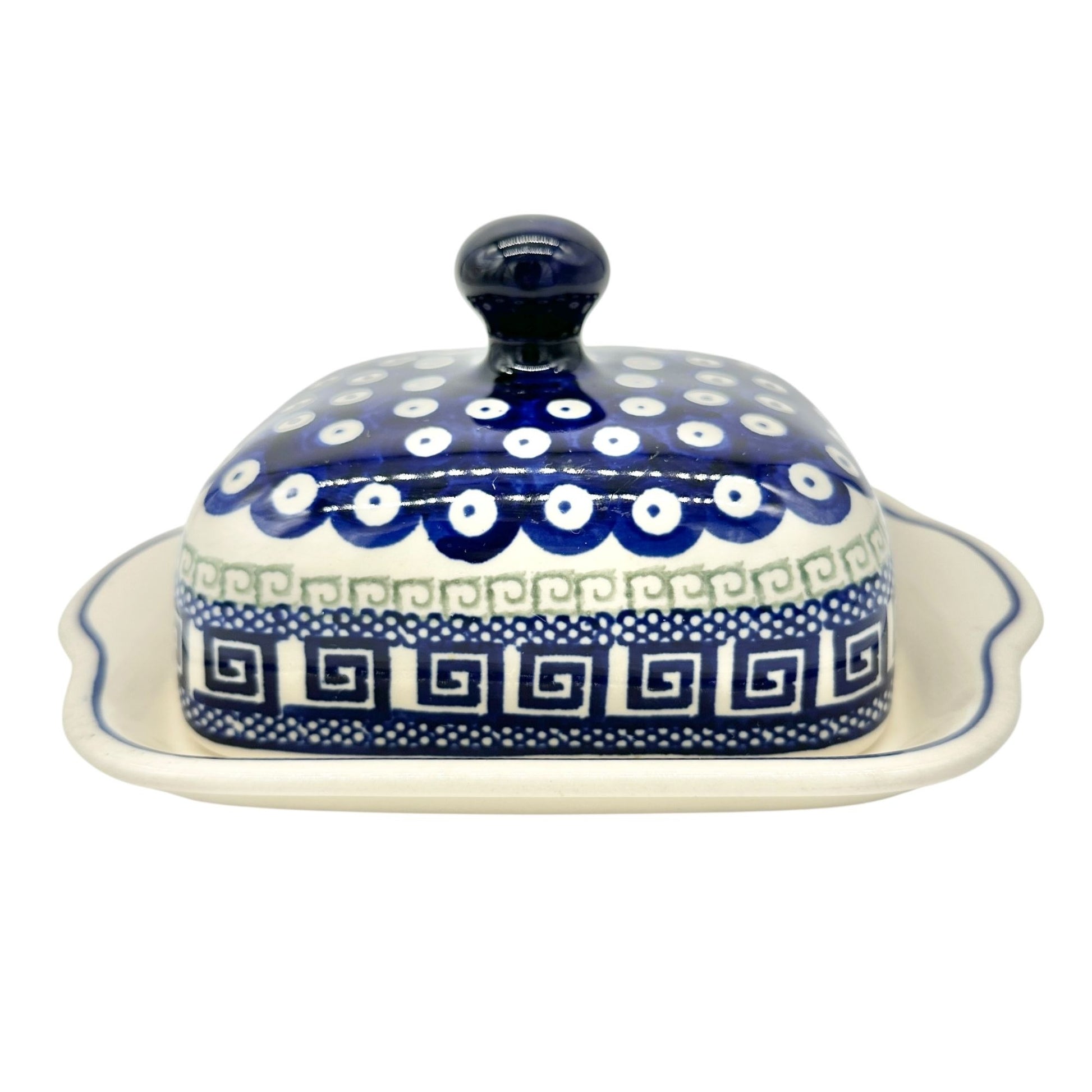 Handmade Boleslawiec Polish Pottery Butter Dish w Lid Blue+White Pattern 8.5 x 6