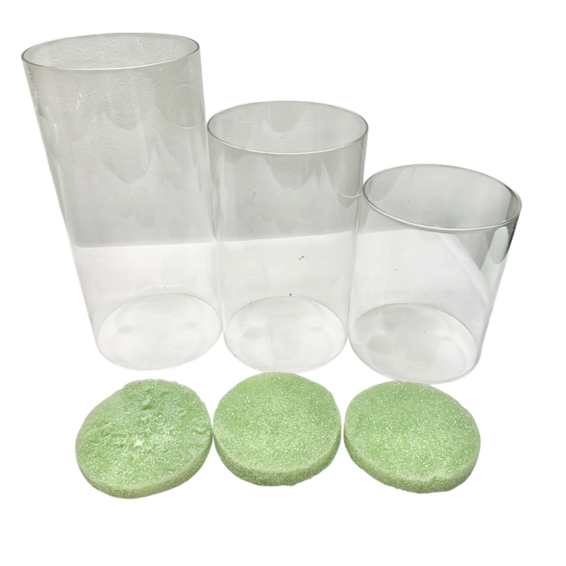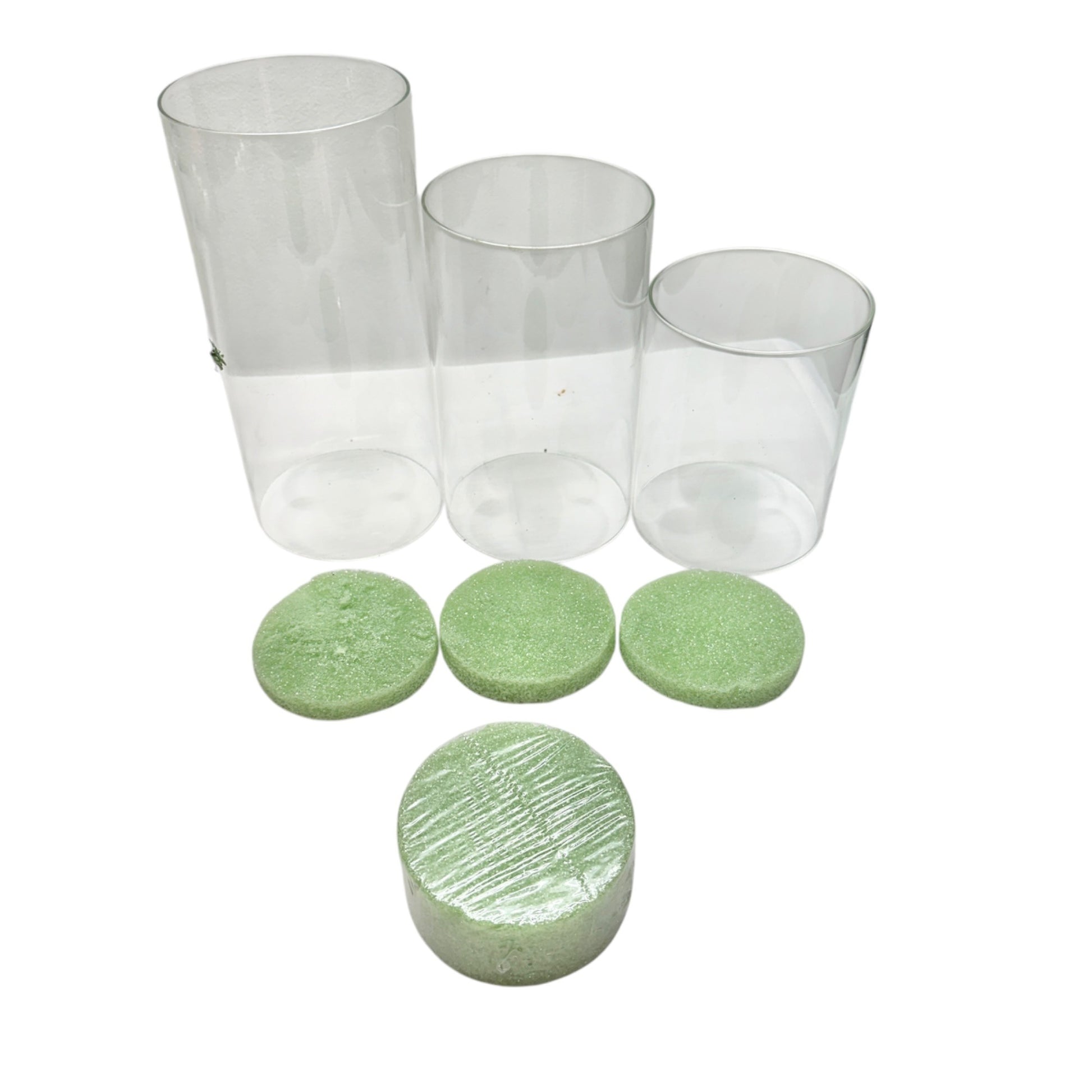 •3 cut pieces of floral styrofoam and one uncut round included to prop the candles up a bit higher.