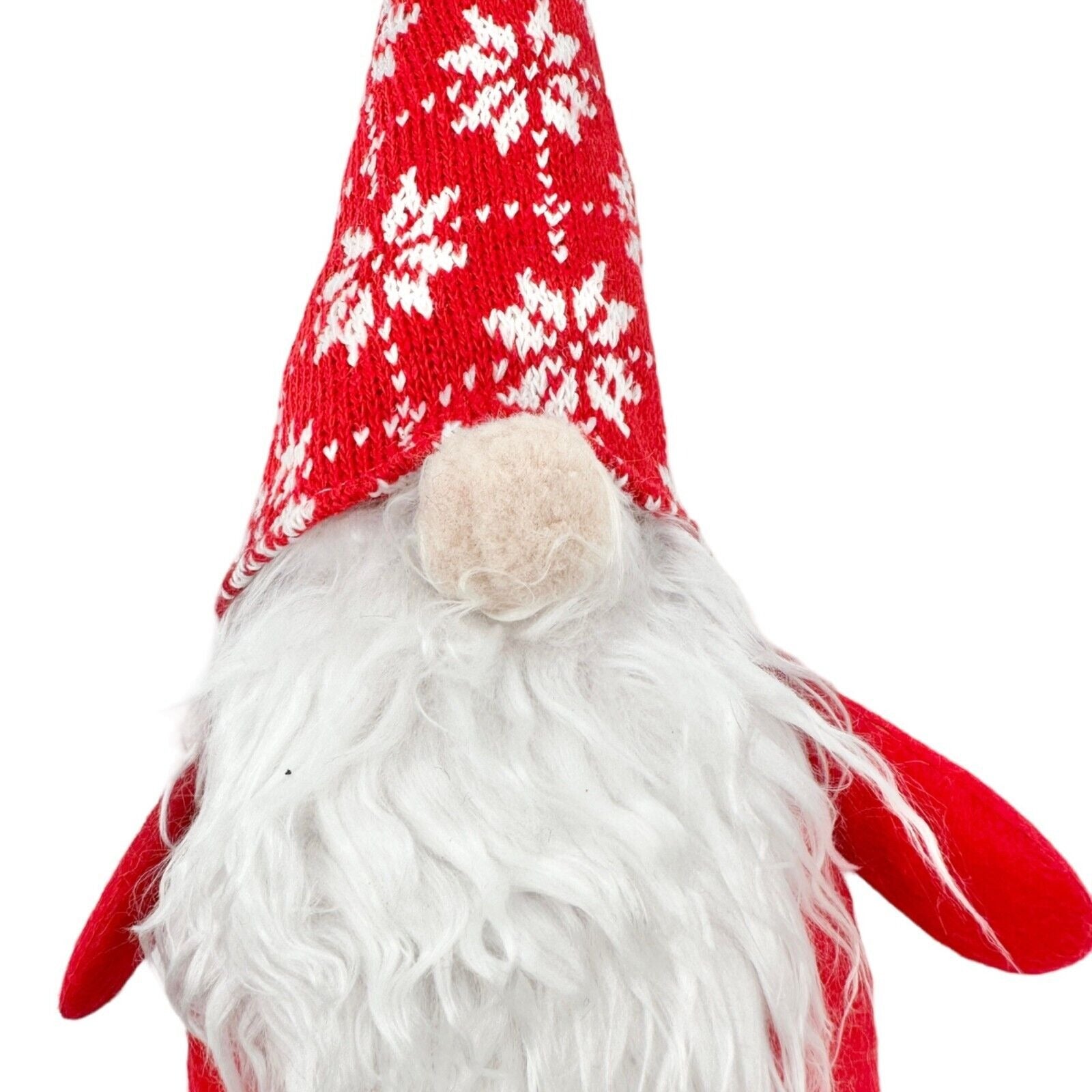 Holiday Gnome14 inch Red White Snowflake Cap - plush gnome featuring red hat with snowflakes. Perfect holiday décor item.