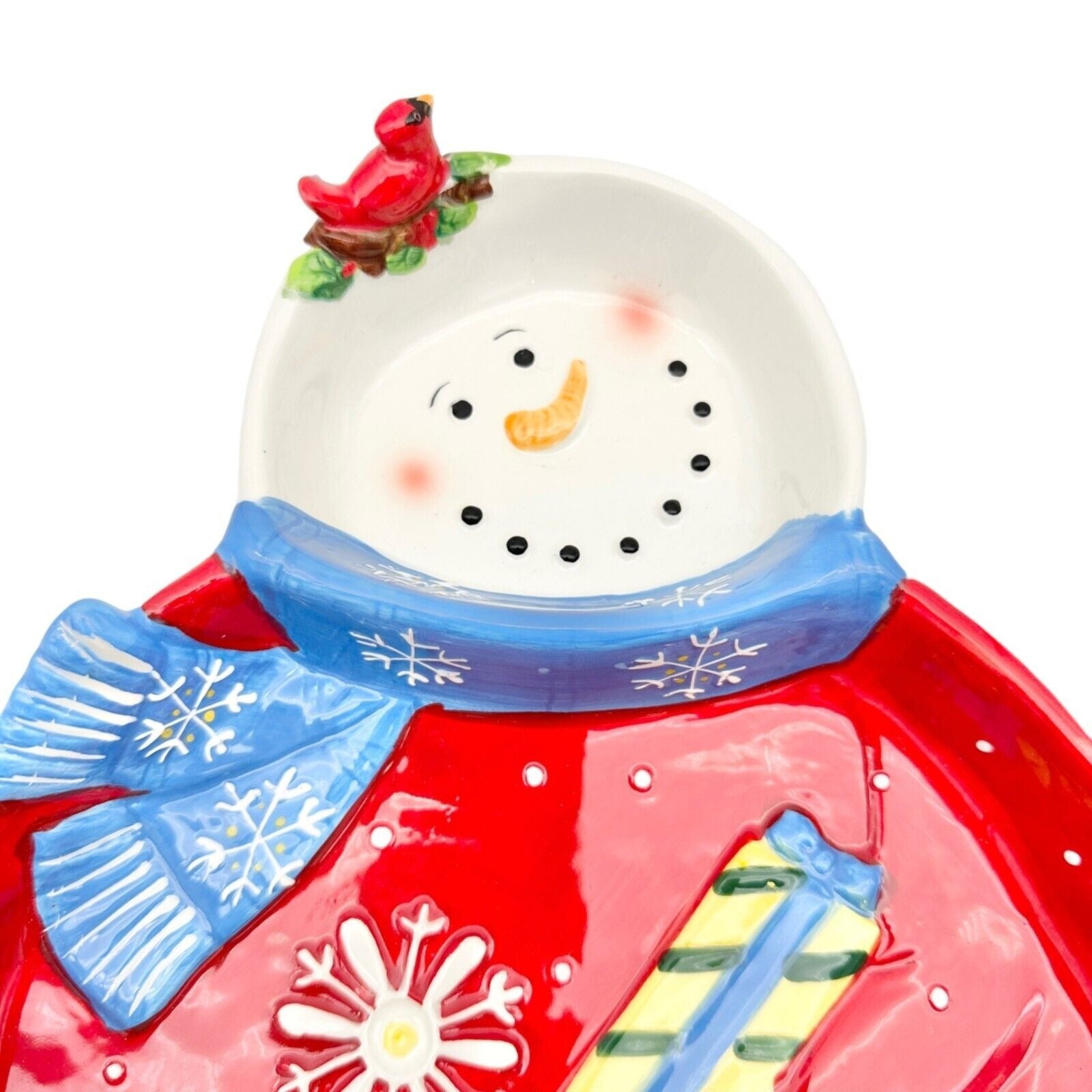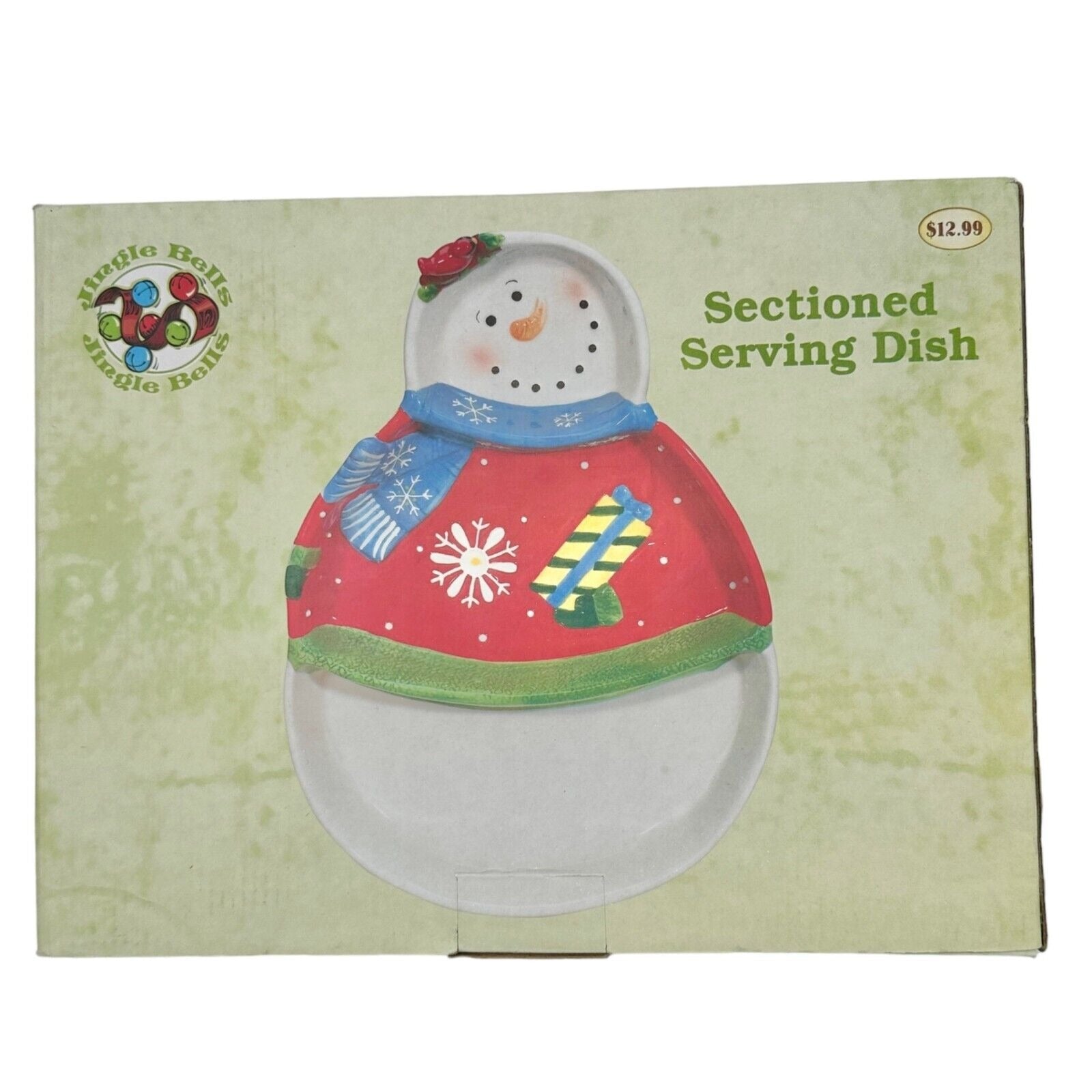 Jingle Bells Sectioned Serving Dish 13 inch Snowman NIB