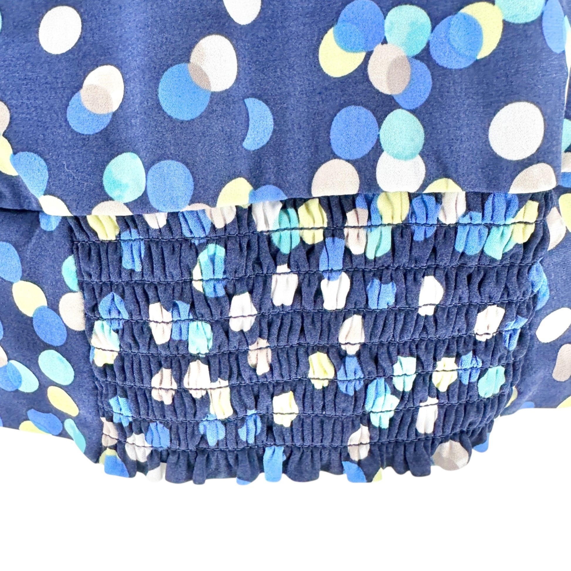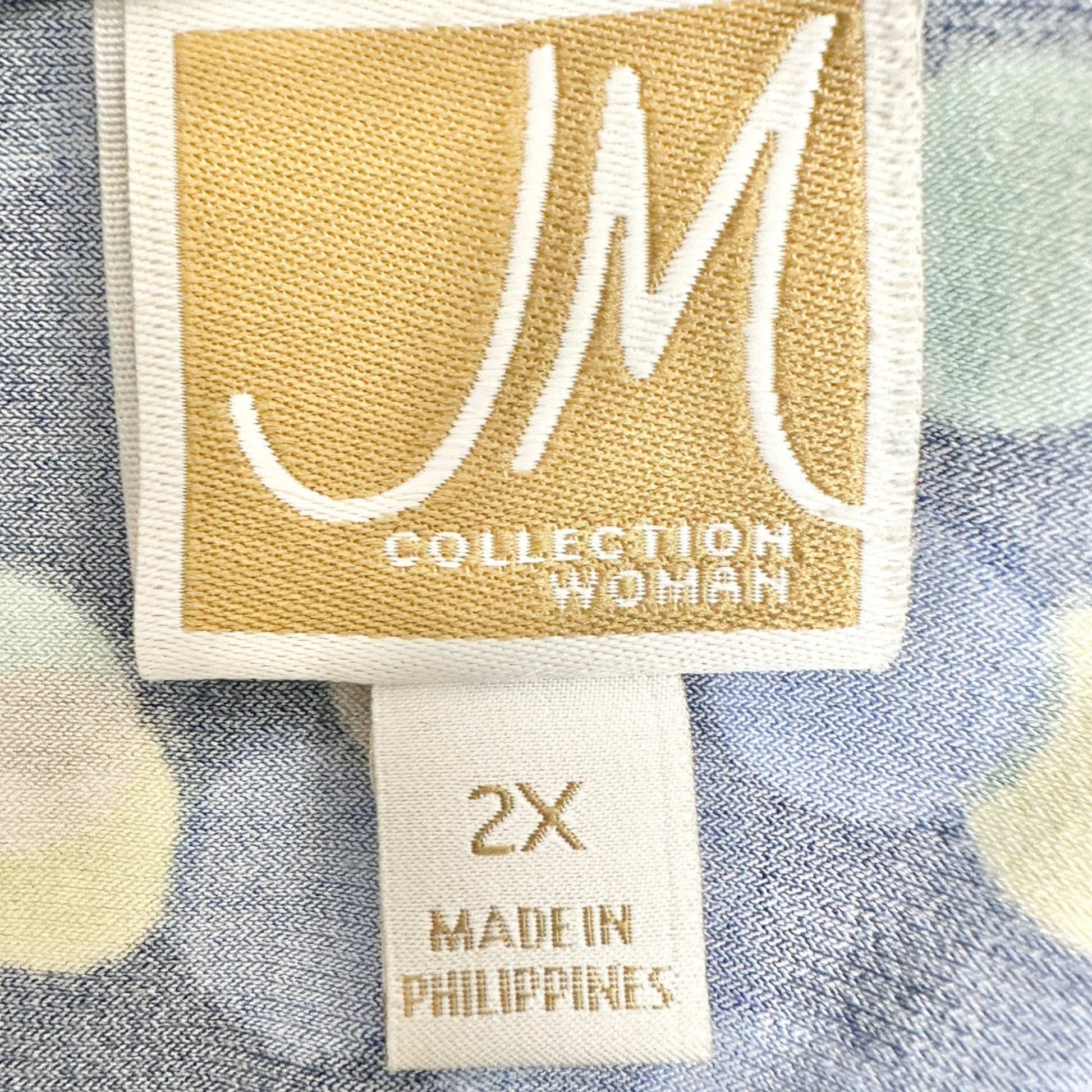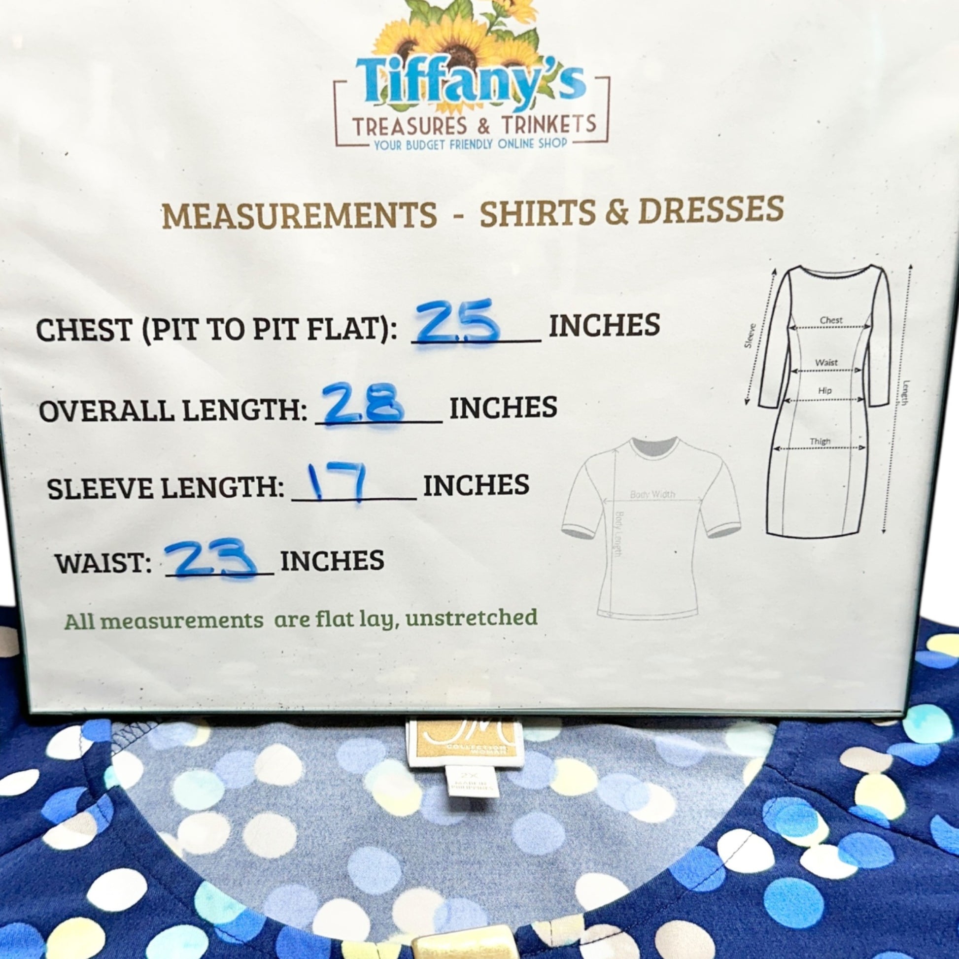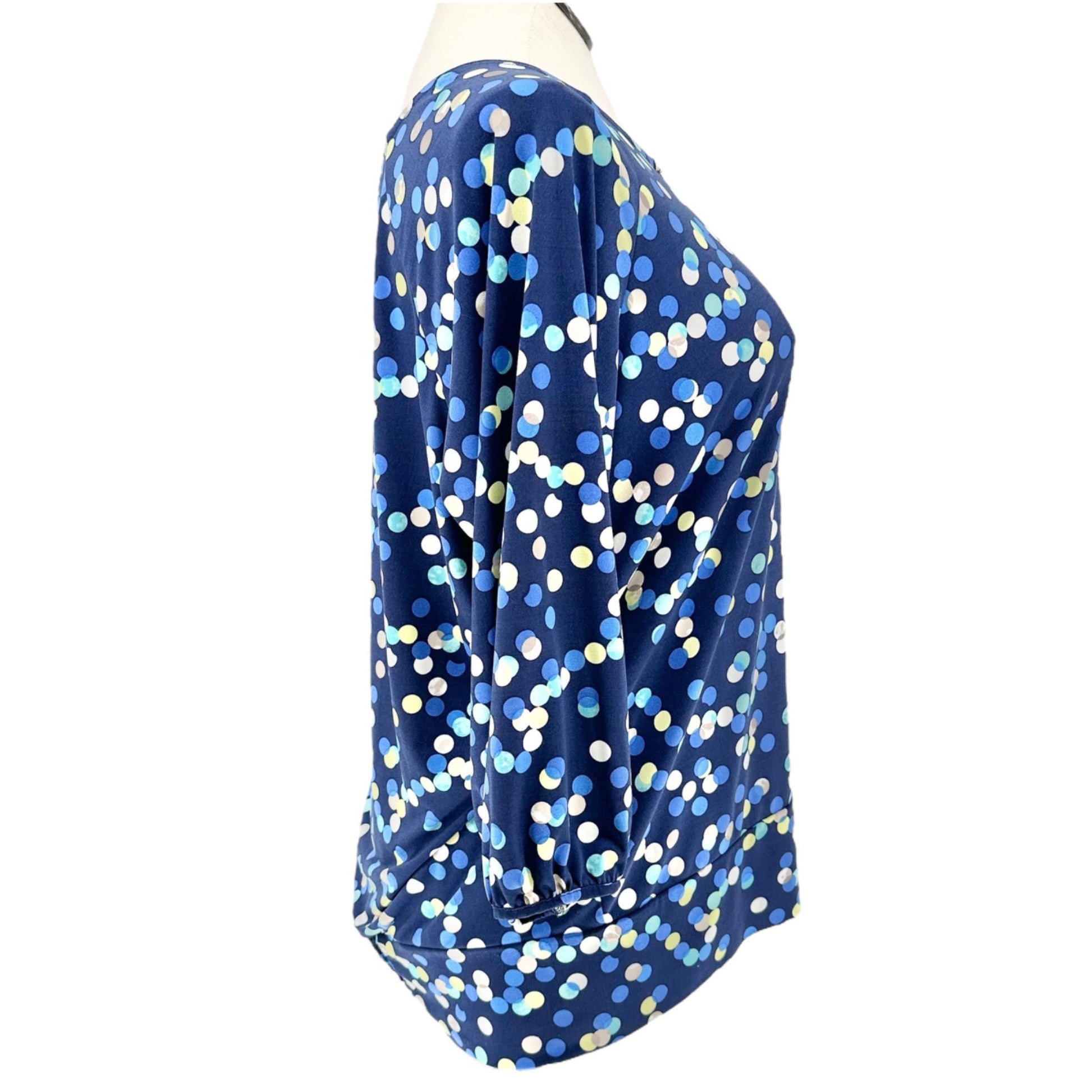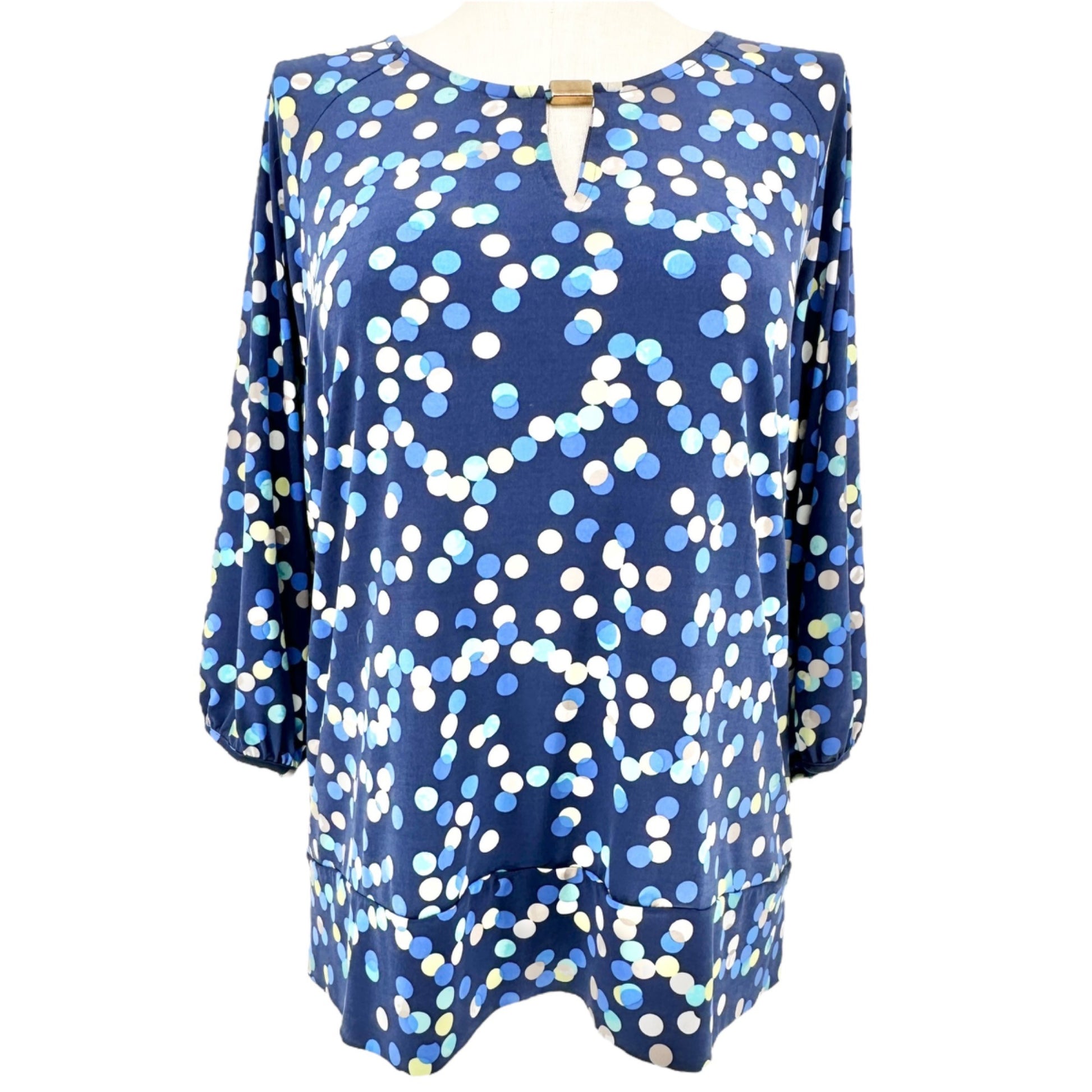 JM Collection Top Womens 2X Polka Dot Navy Blue LS Scoop Neck Keyhole Accent