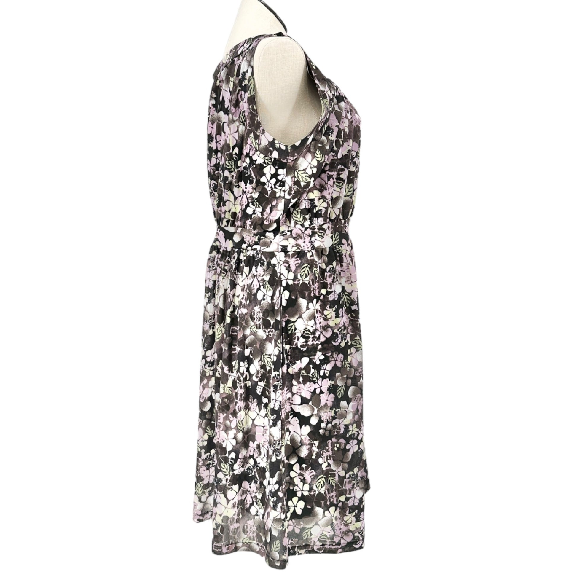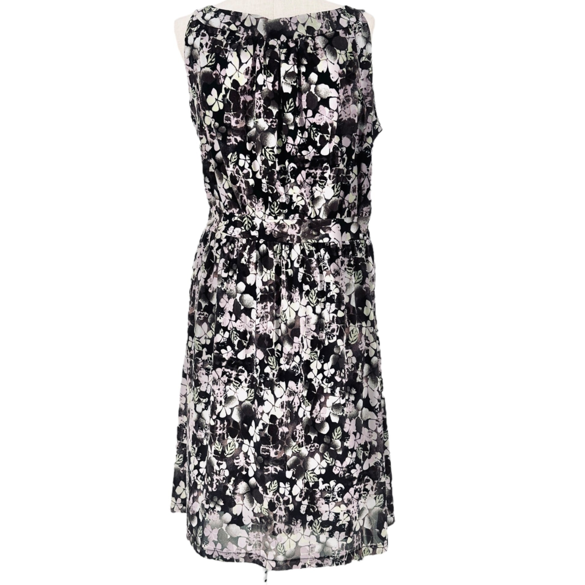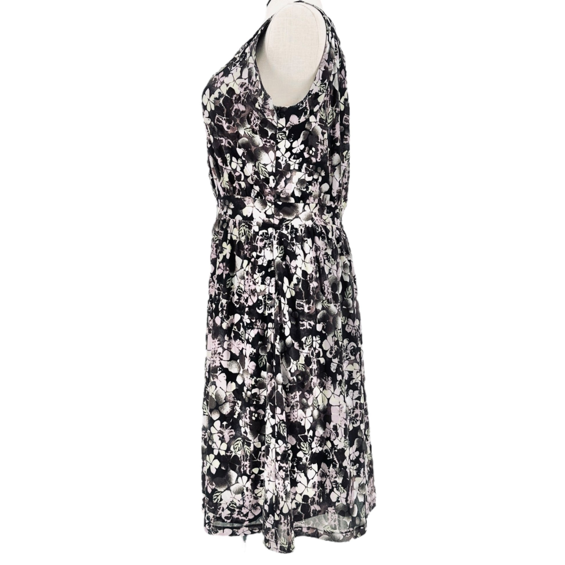 Jones New York Dress Womens 2X Black Purple Green Floral features tank midi styling with side zip and gathered waist. And did someone say pockets?
