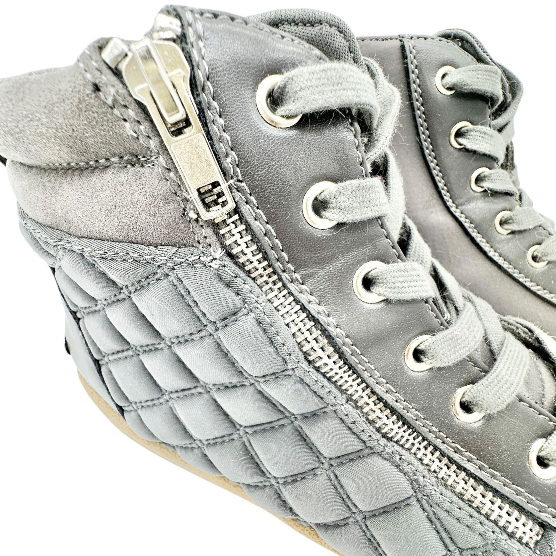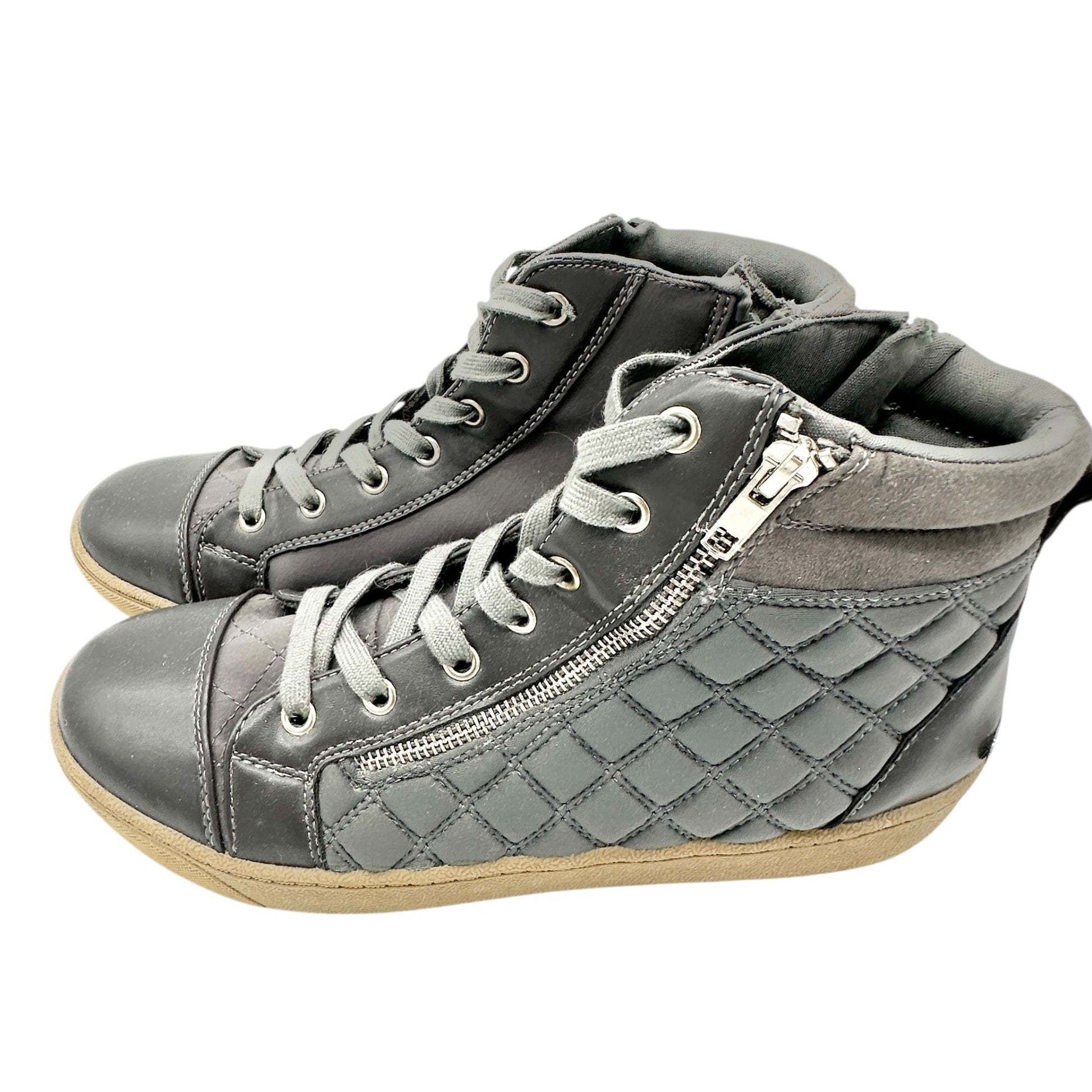 Juicy Couture Quilted High-Top Sneakers Womens Sz 10 Gray Faux Leather Side Zip