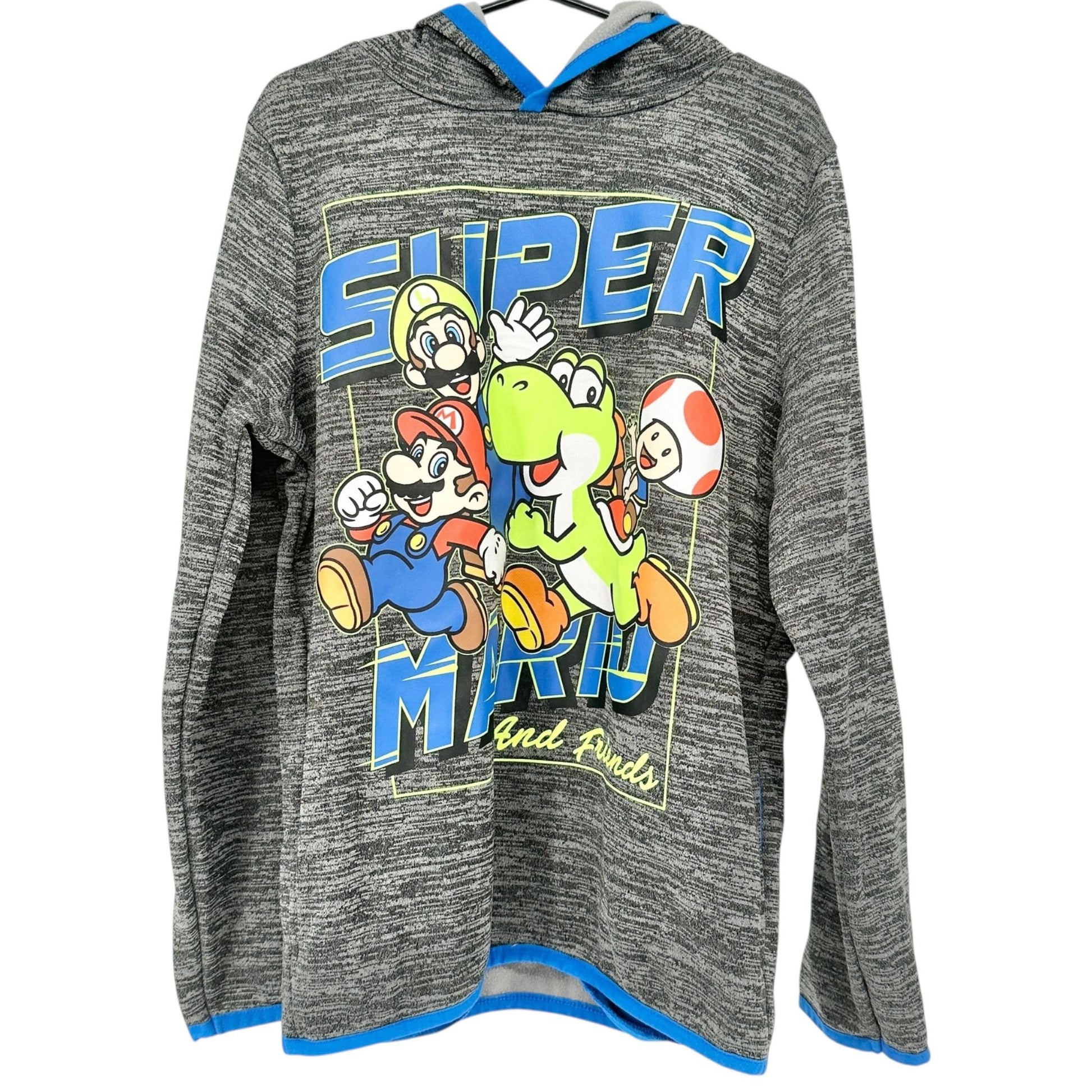 Jumping Beans Super Mario Hoodie Boys Size 8 Gray LS Fleece Lined Activewear