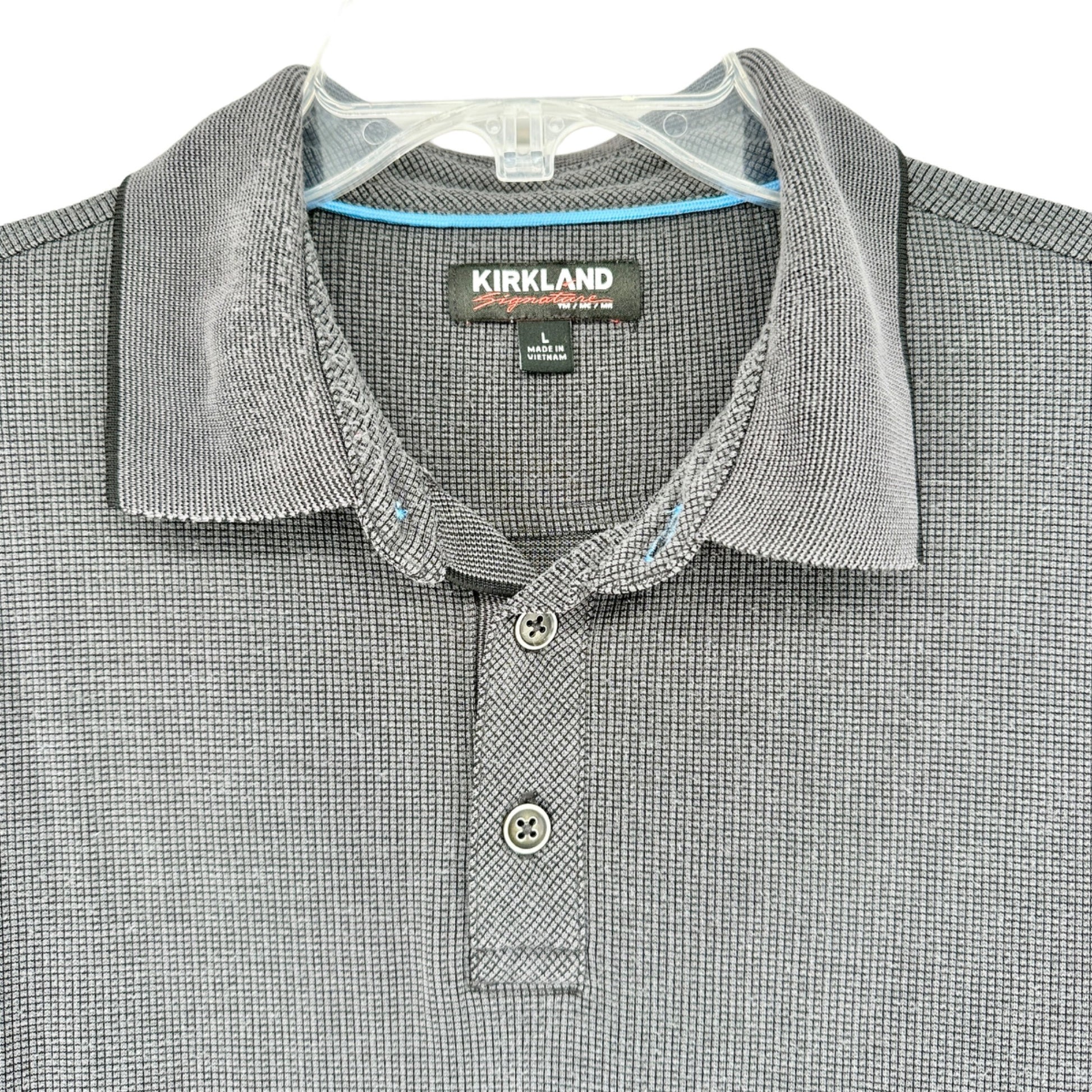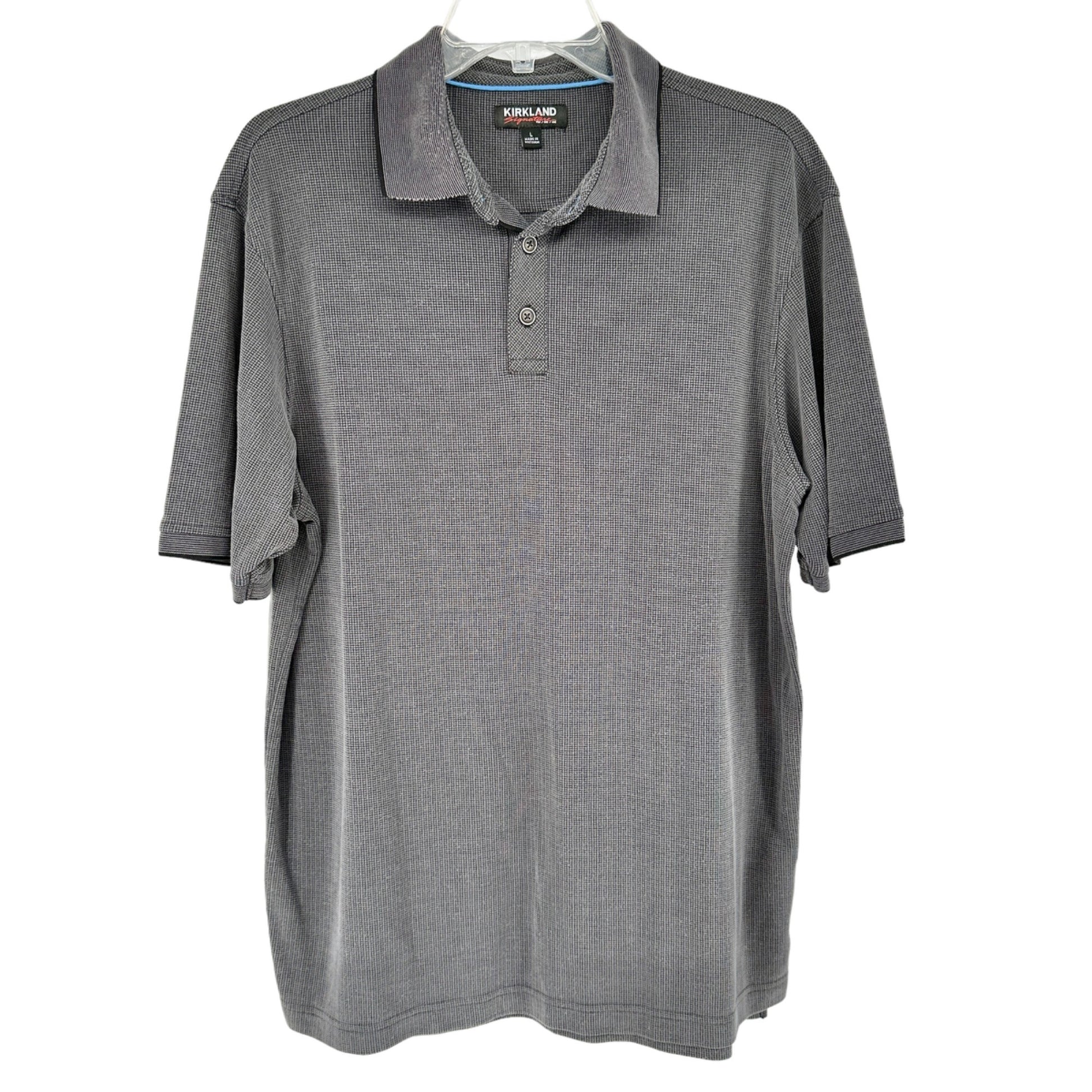 Kirkland Signature Jacquard Polo Shirt Mens L Gray Black Collared Short Sleeve - classic yet comfortable shirt for business casual to going out.