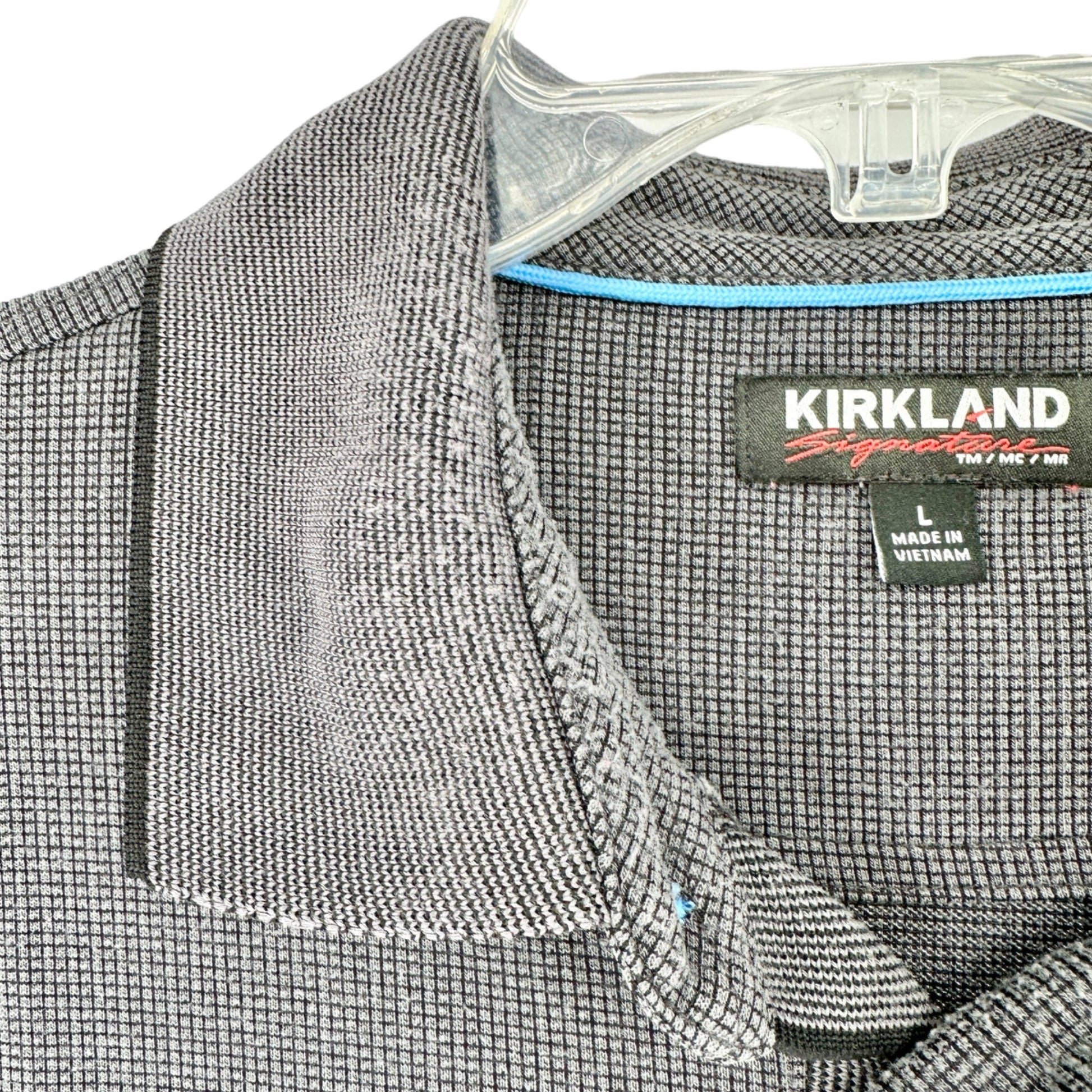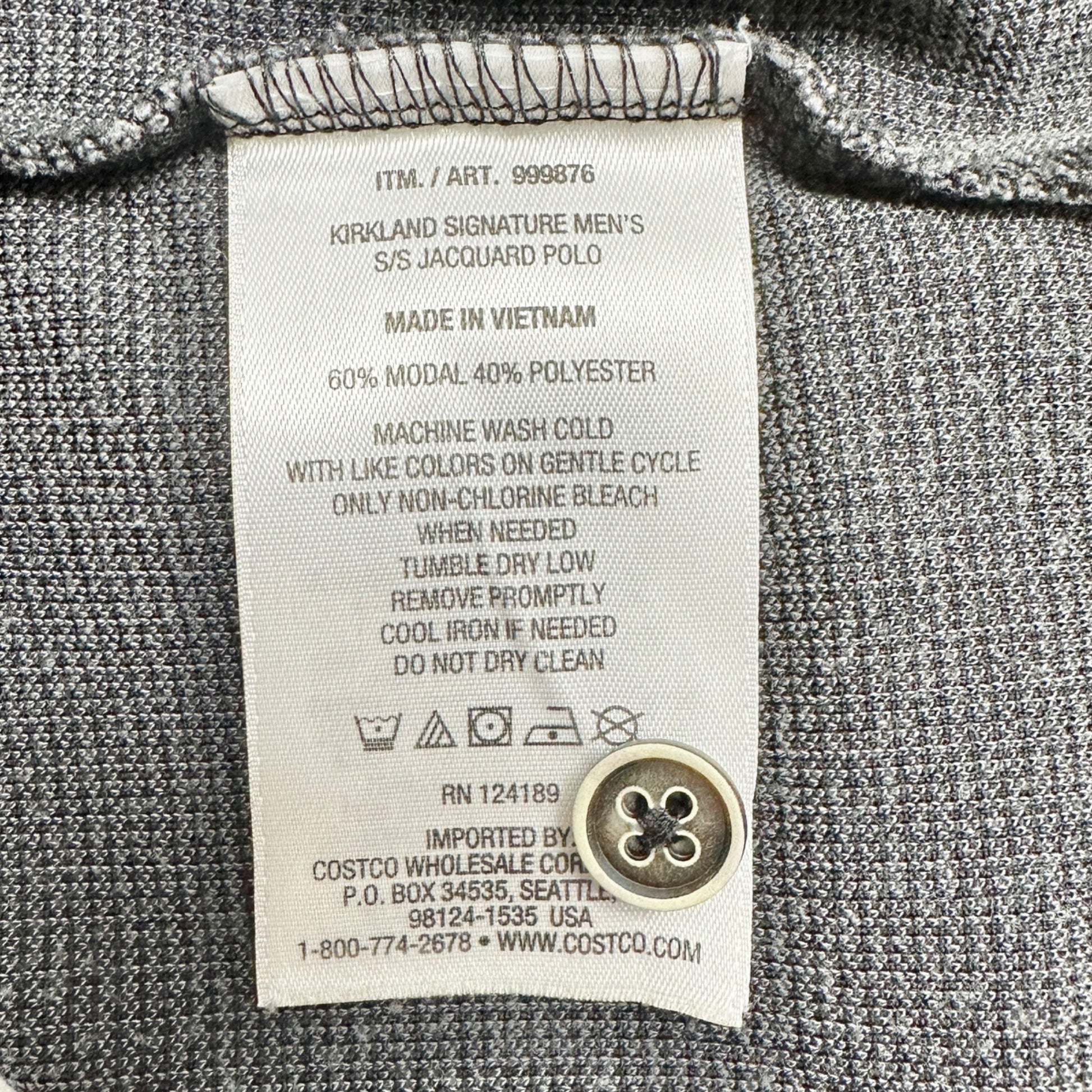 Kirkland Signature Jacquard Polo Shirt Mens L Gray Black Collared Short Sleeve