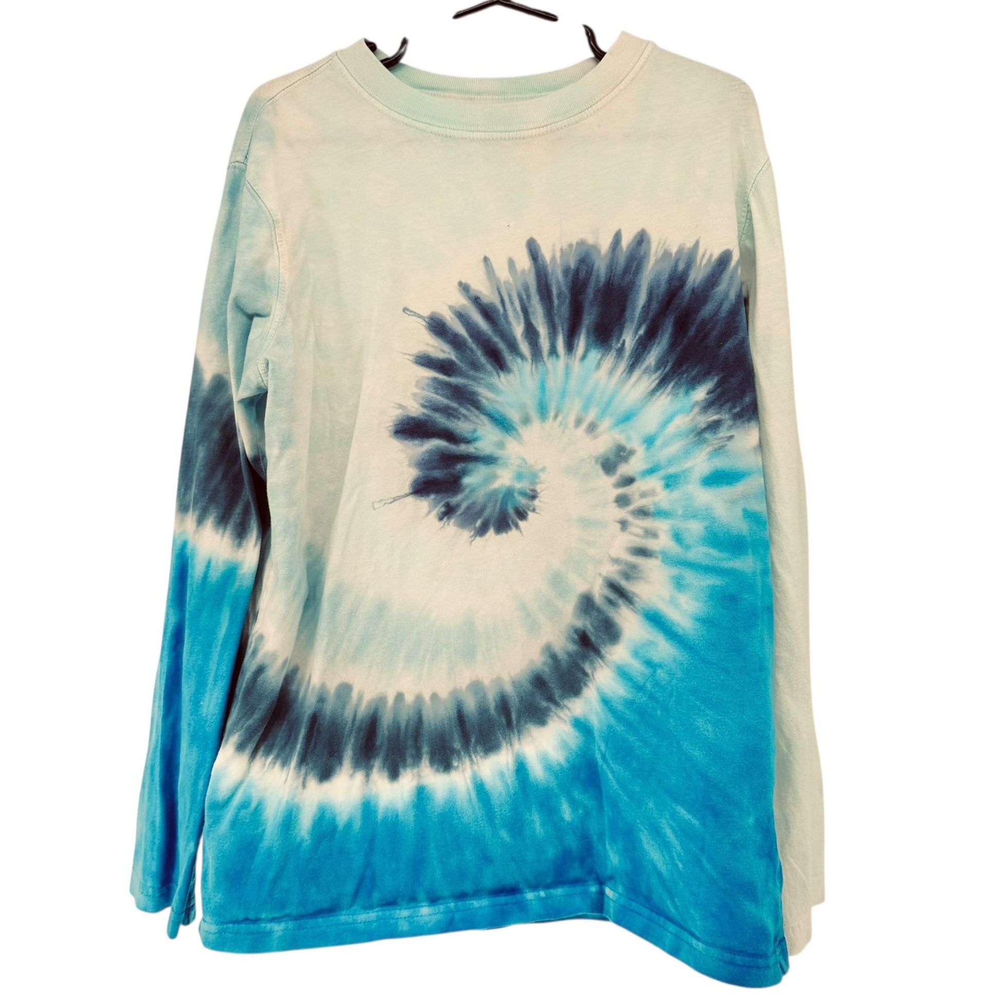 Lands End Tie-Dye Long Sleeve Shirt Kids Small Blue Spiral Cotton Unisex