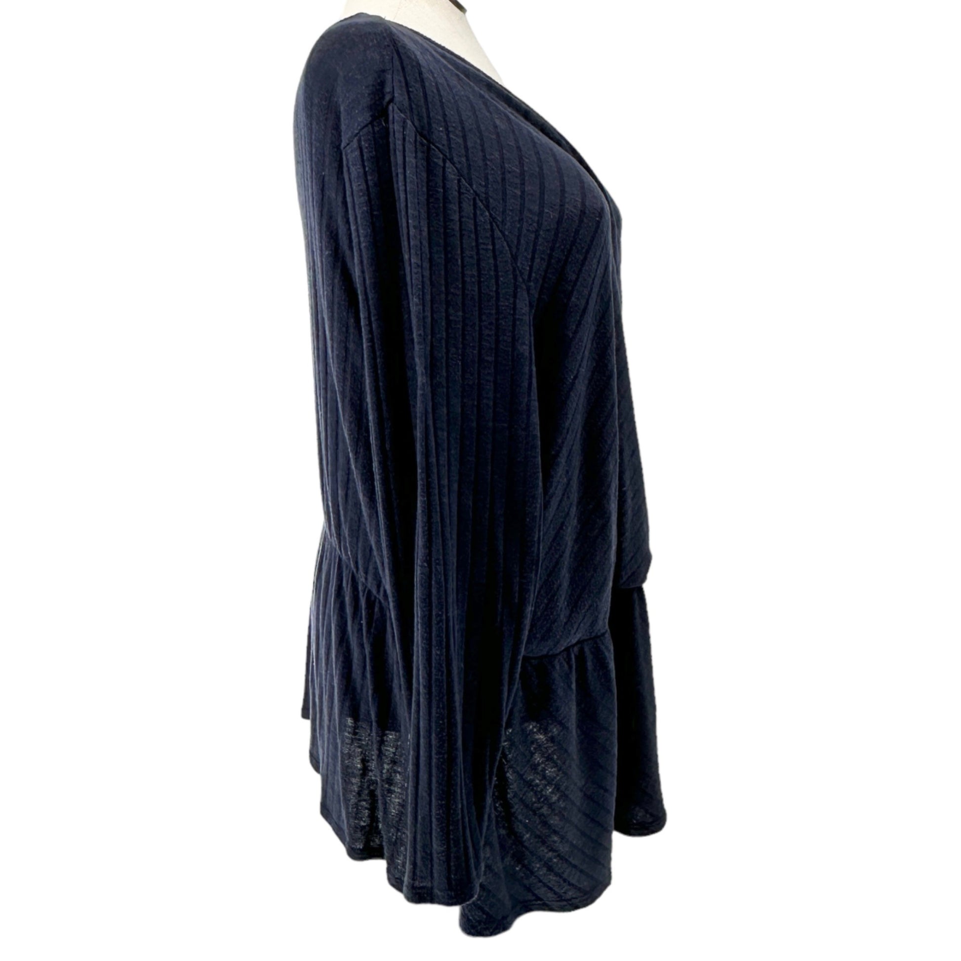 Lane Bryant Sweater Womens 26/28 Navy Gathered Waist Side Tie Crossover Vneck