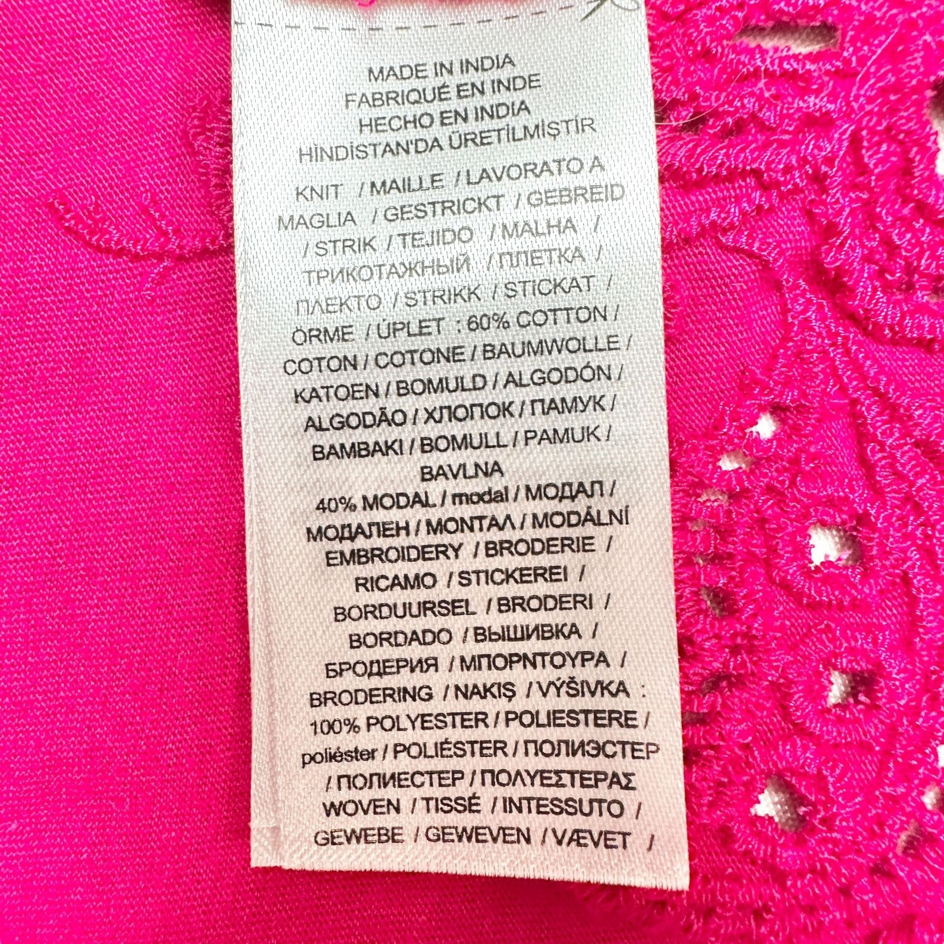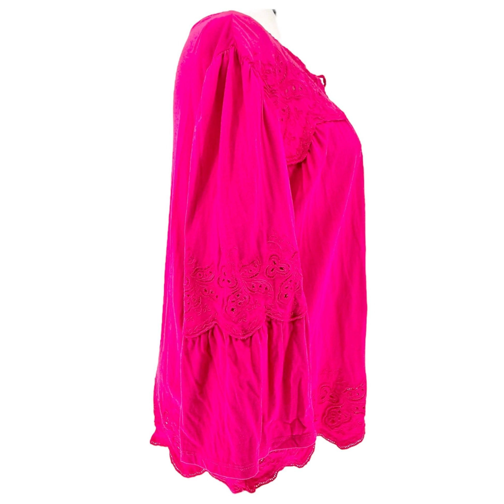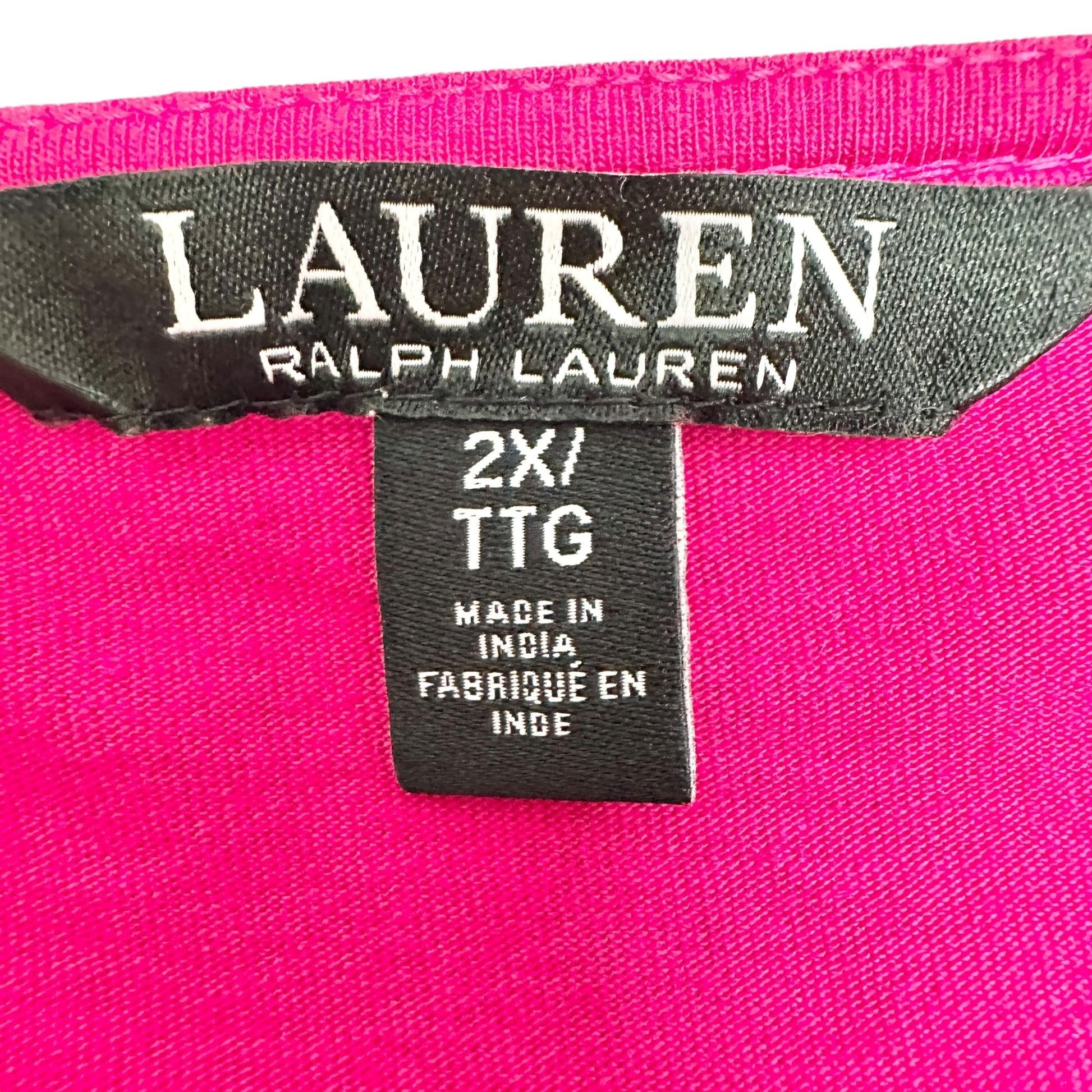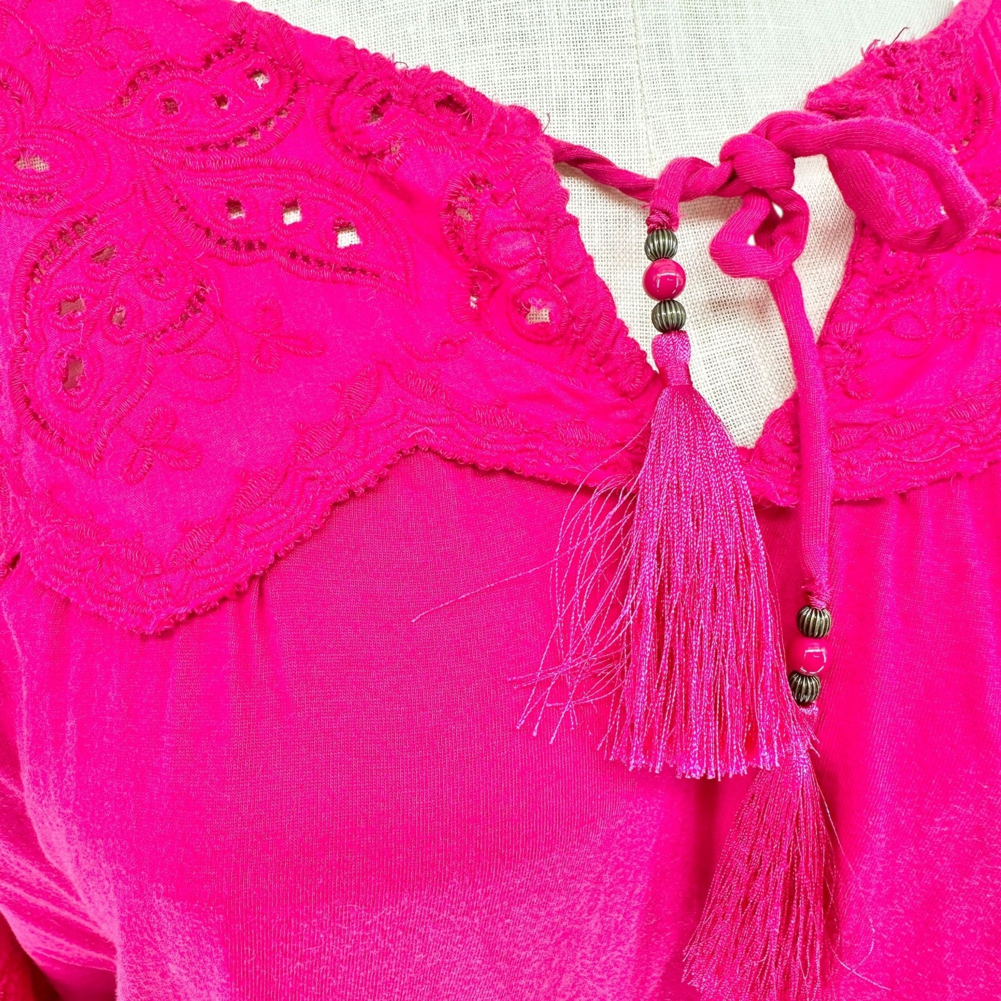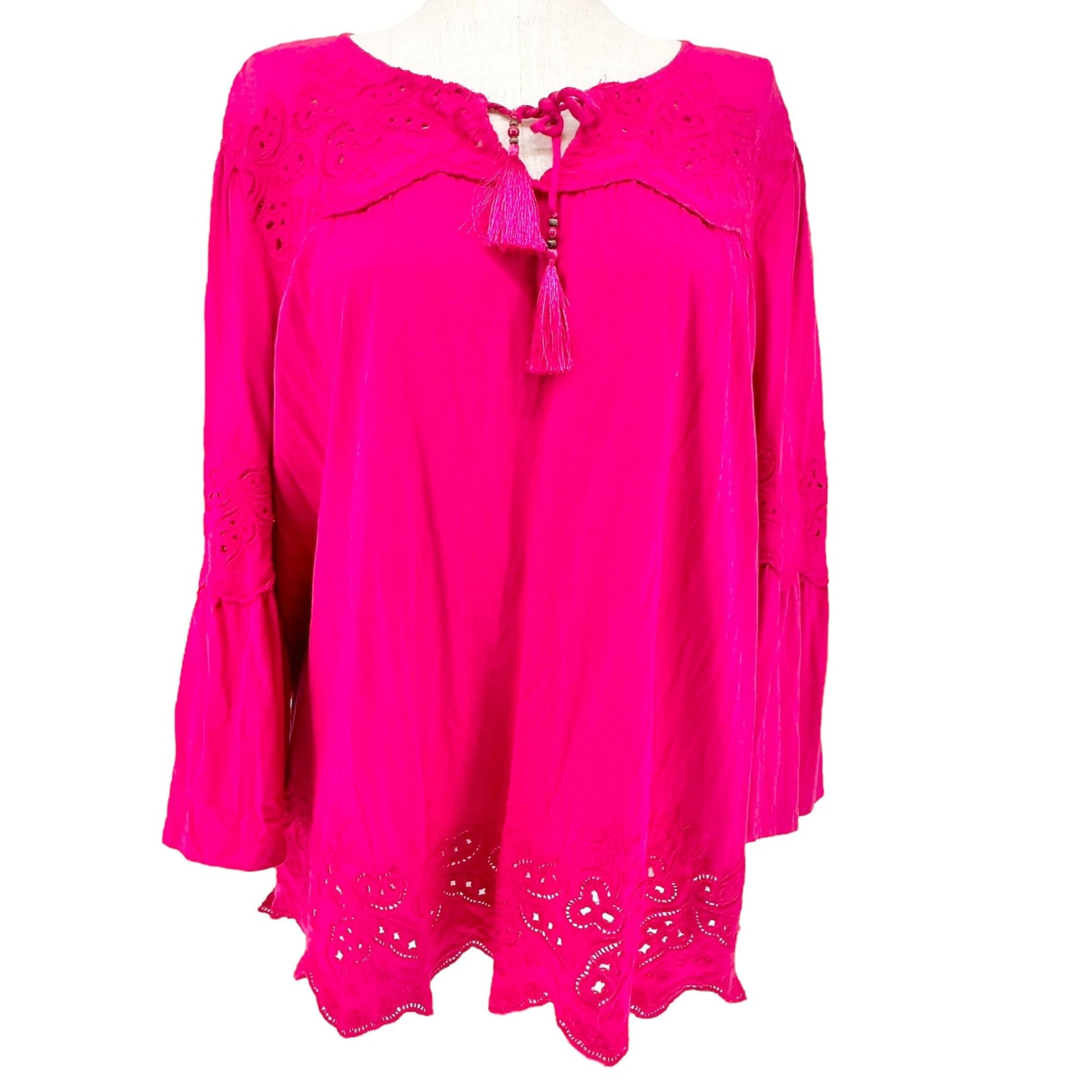 Lauren Ralph Lauren Boho Peasant Top Womens 2X Fuchsia Embroidered with Tassels