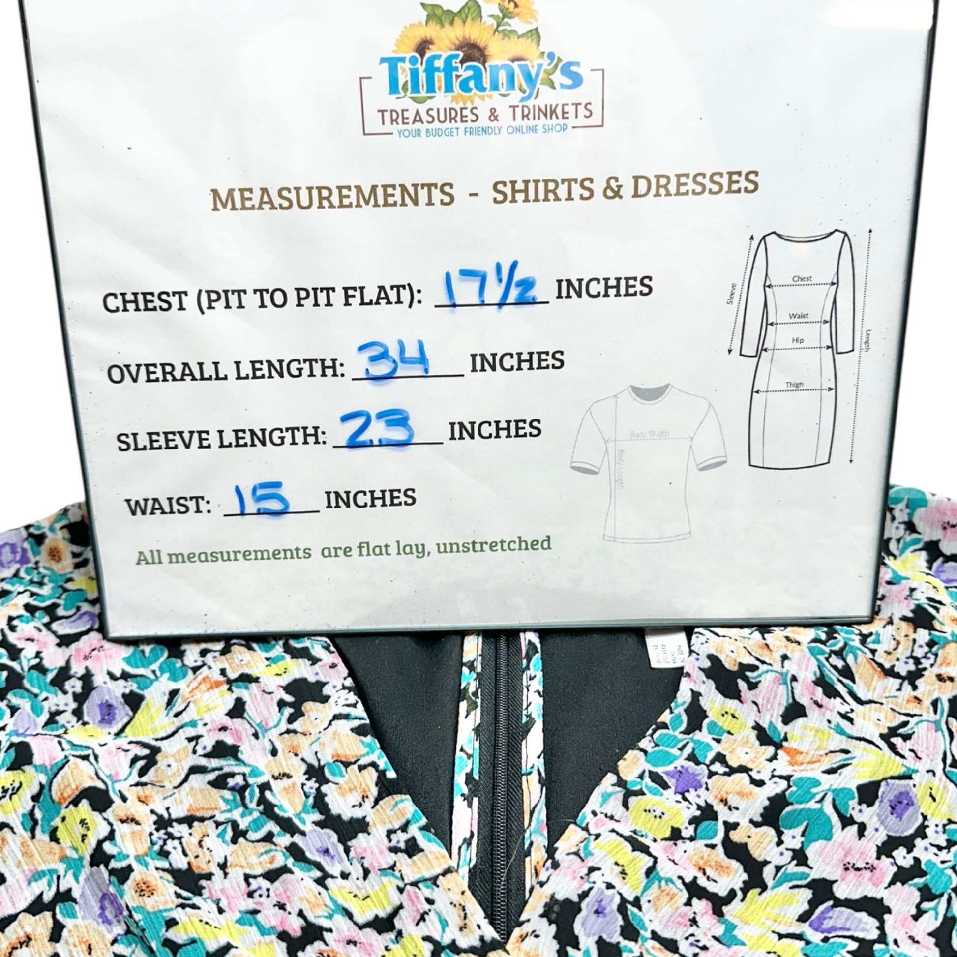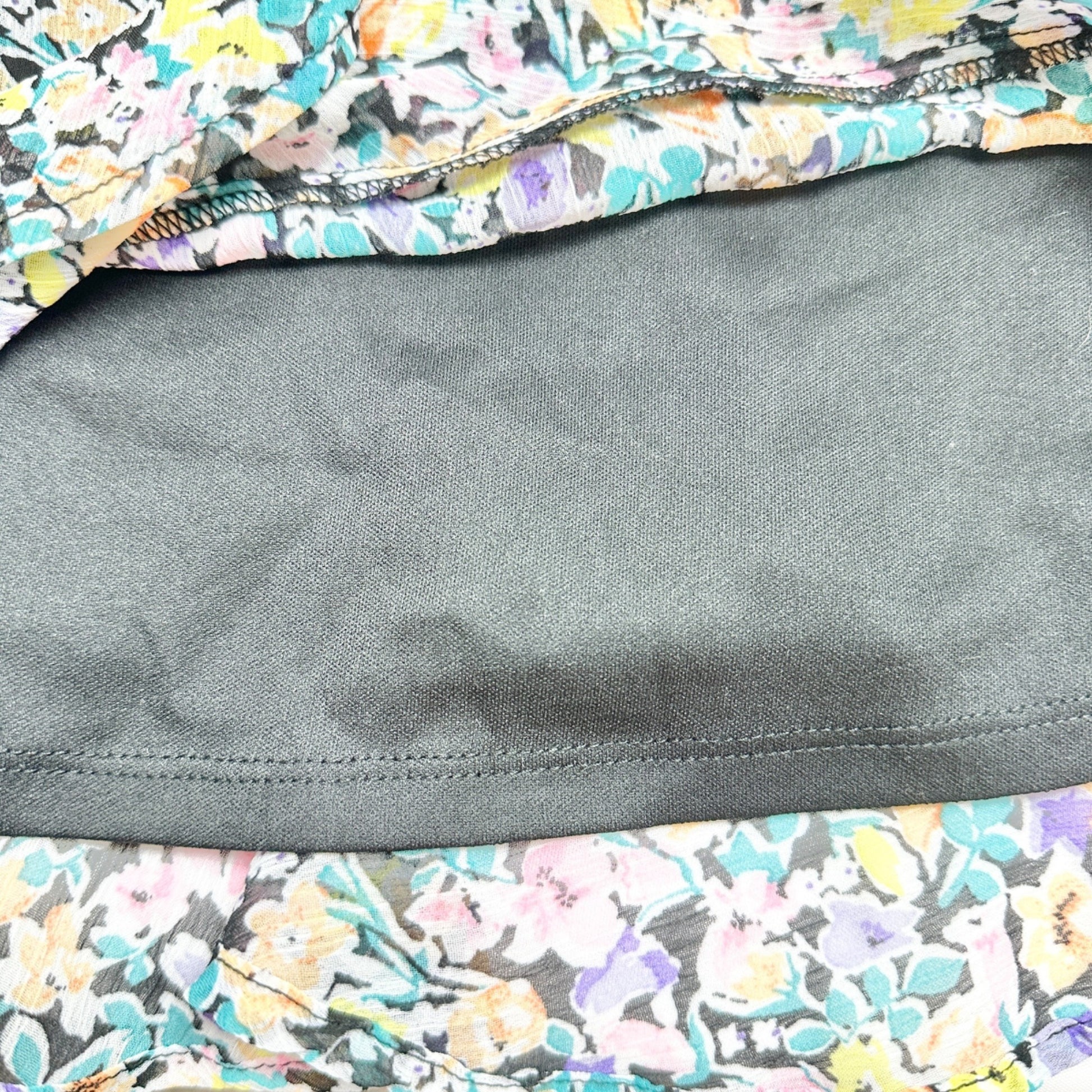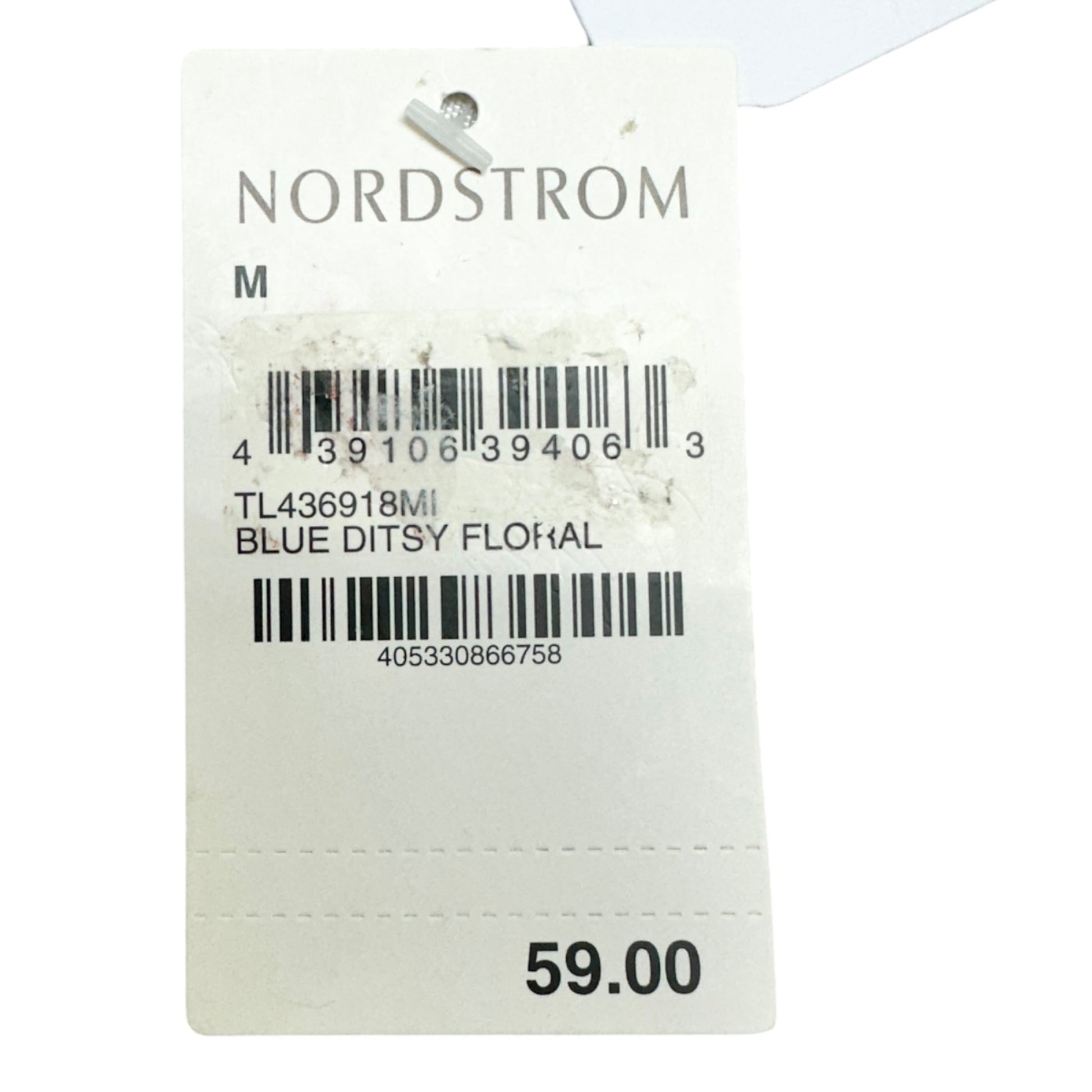 Leith Dress Womens M Blue Ditsy Floral Tie-Waist Ruffled Hem Sheer Long Sleeves
