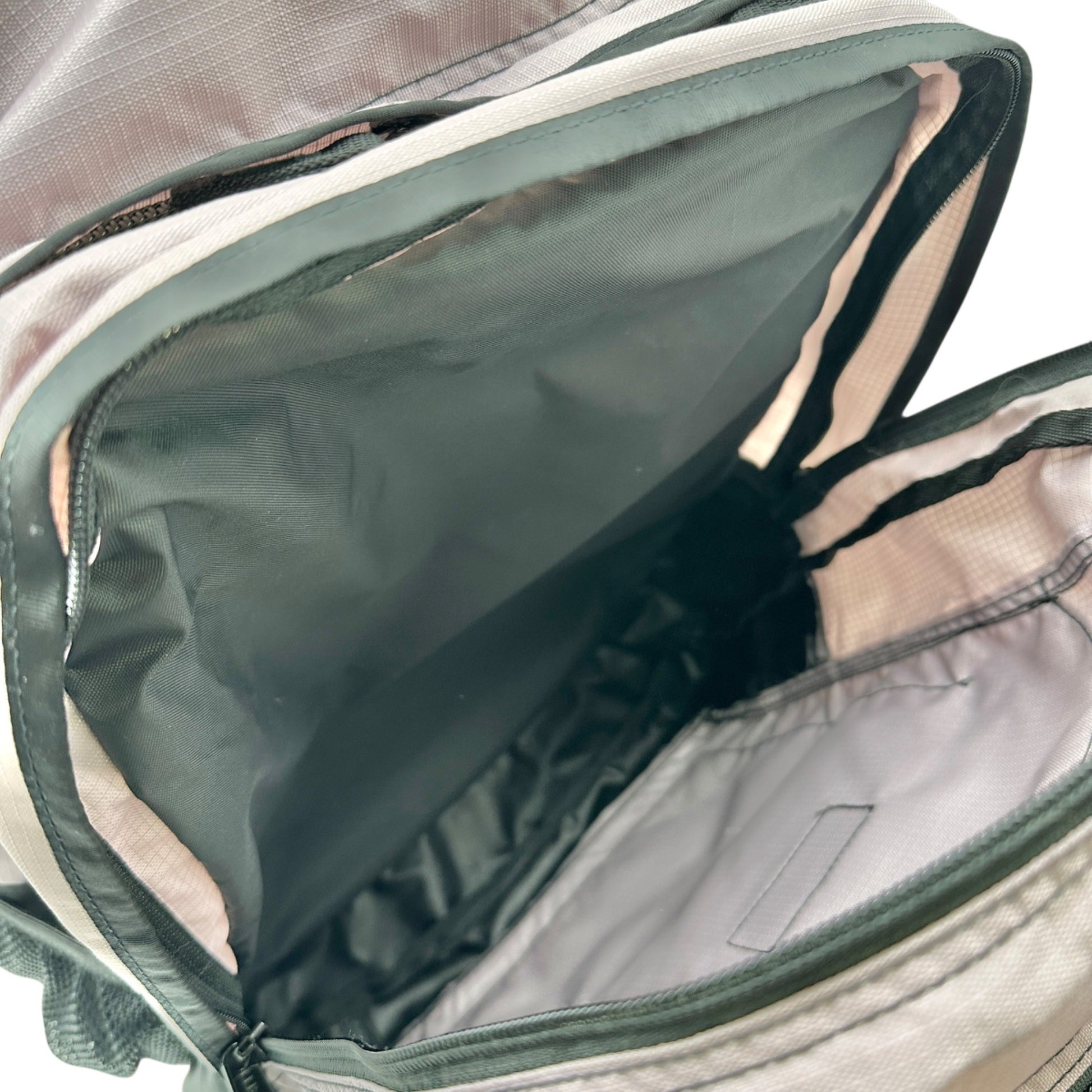 This L.L. Bean backpack tells a tale of practicality and style. With its soft pink and bold black hues, it offers ample space and thoughtful features, including a headphone port for music on the go. Crafted from durable nylon, it’s ready for journeys, big or small.