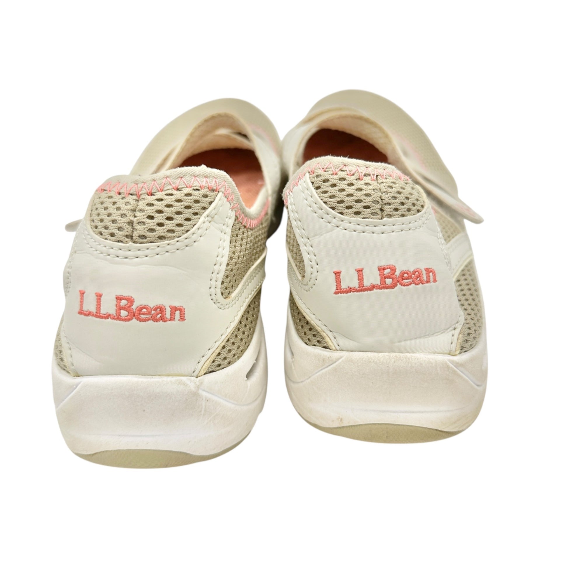 LL Bean Womens Beige Pink Mary Jane Mesh Walking Shoes Size 10 Rubber Soles
