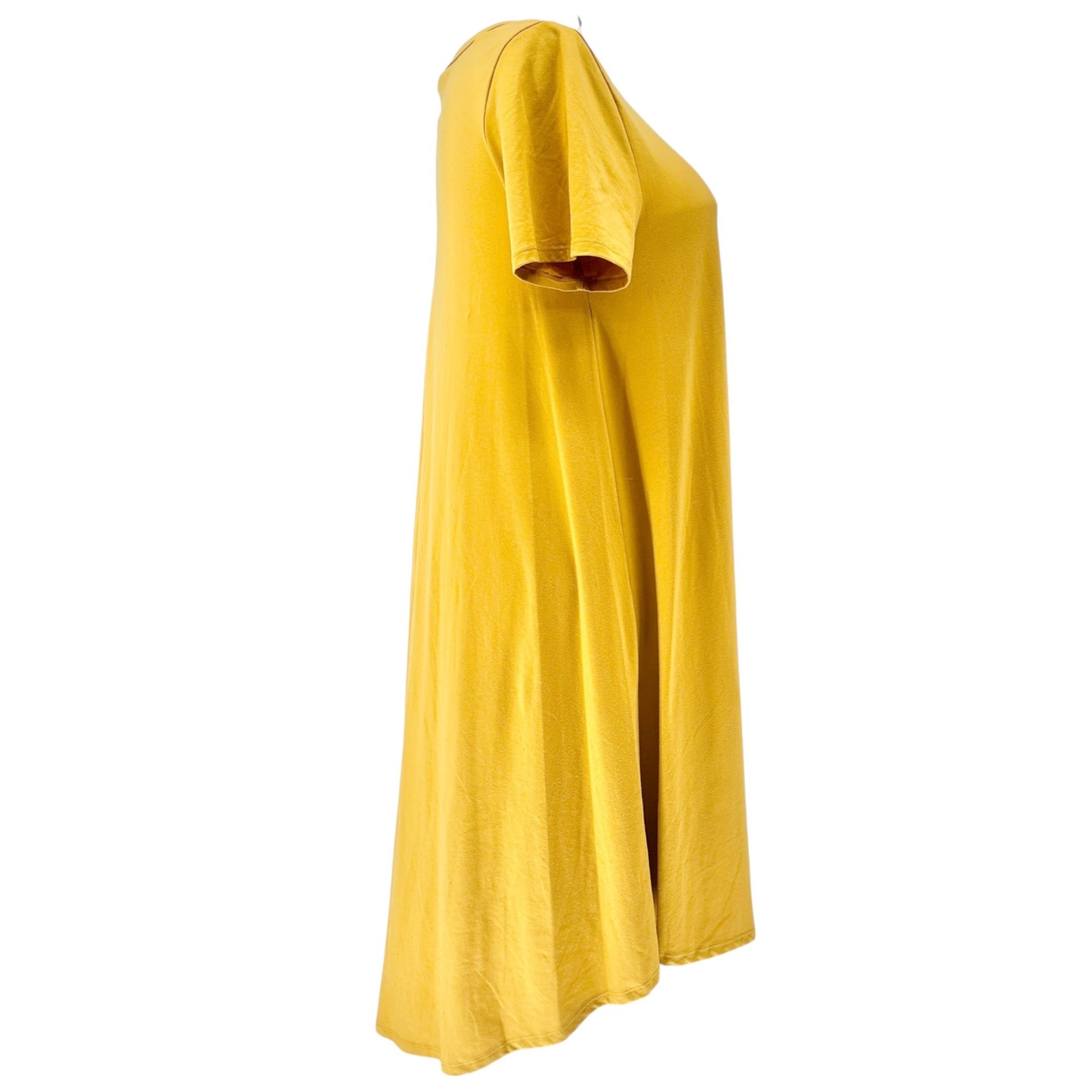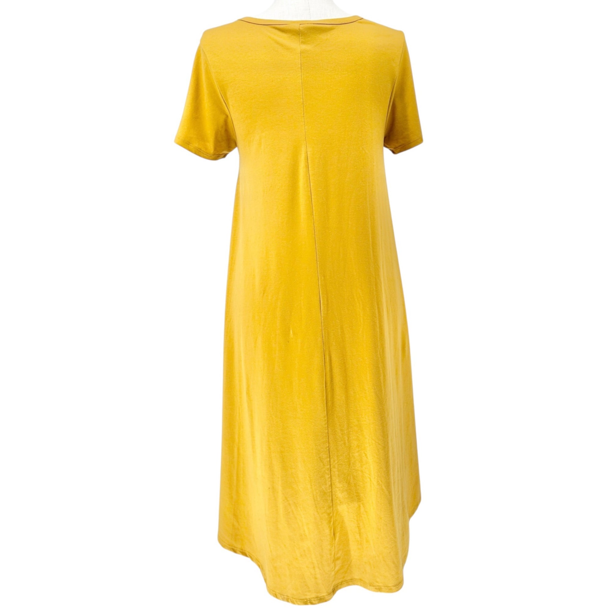 LuLaRoe Carly Dress Womens M SS Mustard Yellow A-Line Soft Stretchy Pocket HiLow