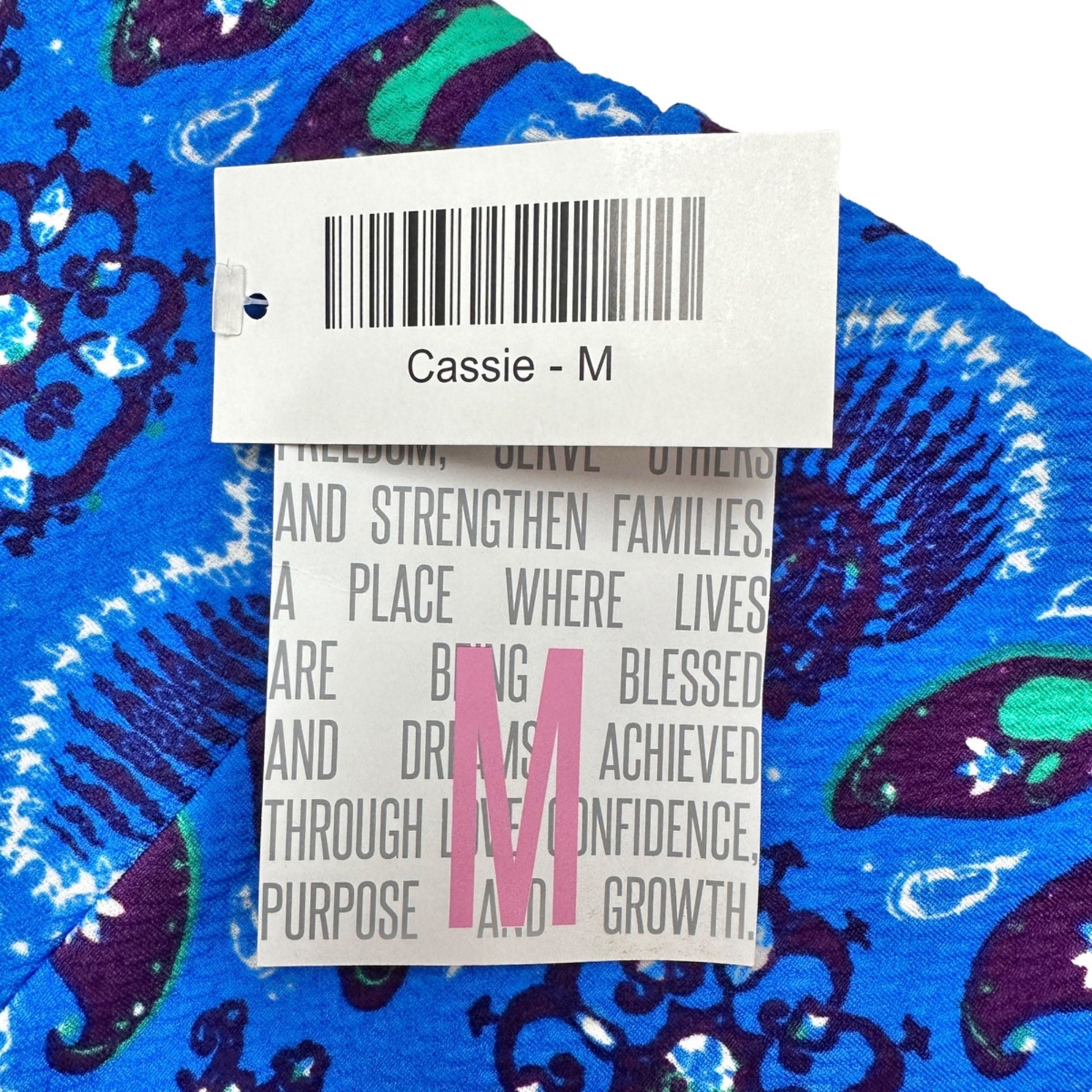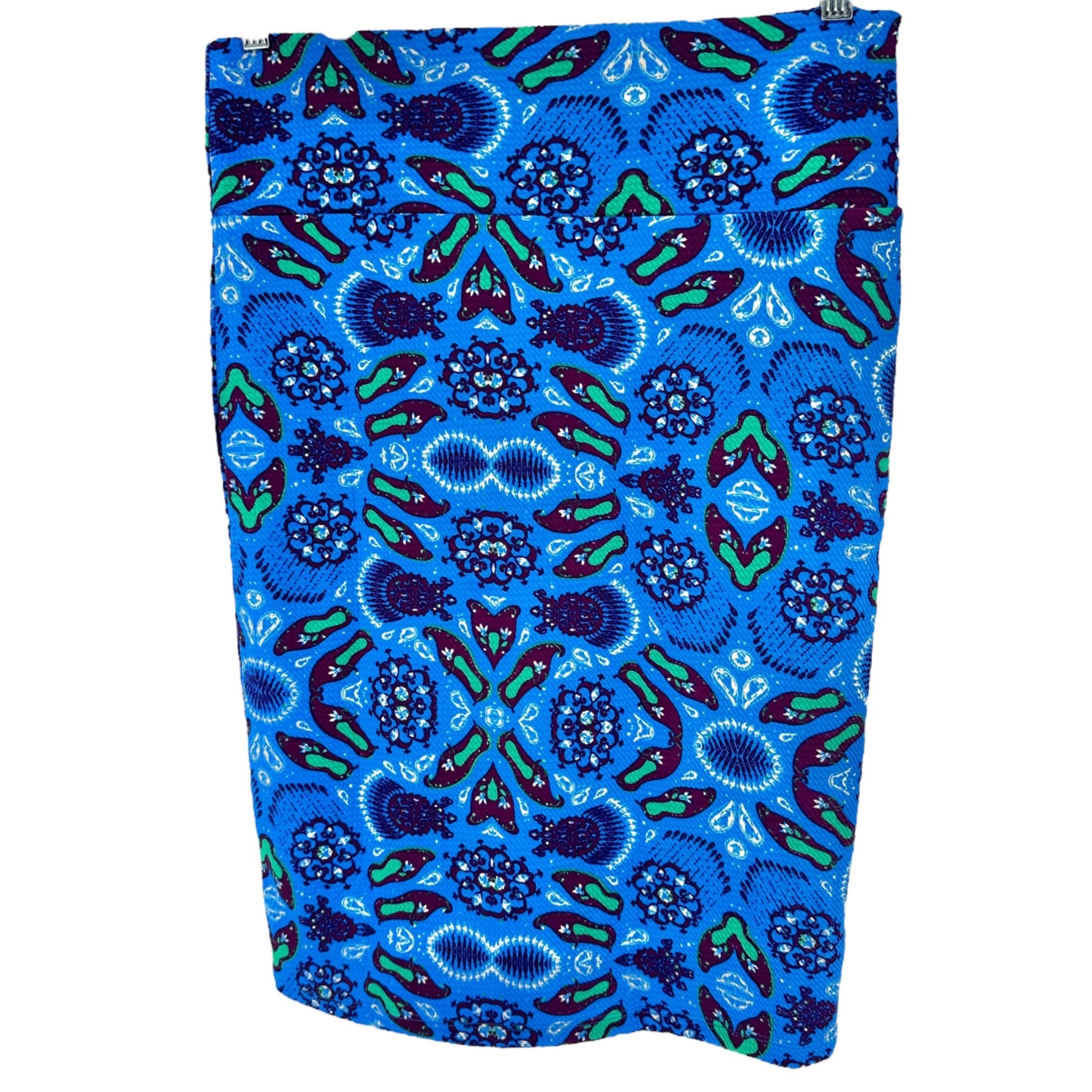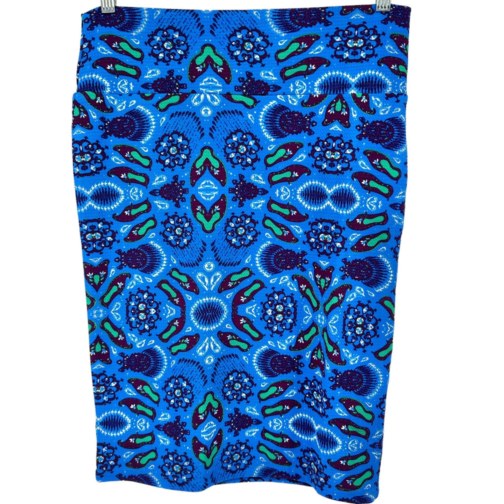 LuLaRoe Cassie Skirt Womens M Bright Blue w Red Green White Graphic Print NWT