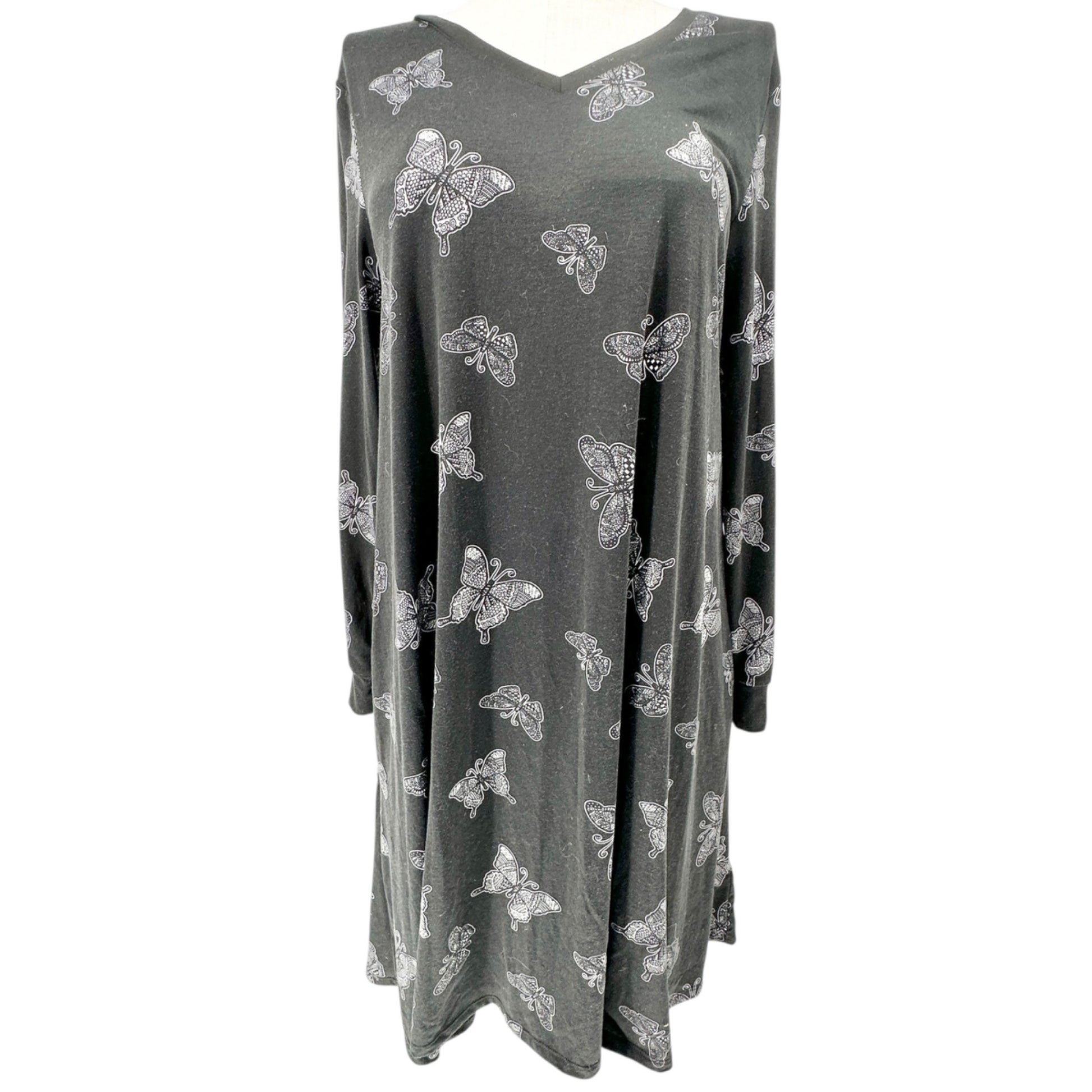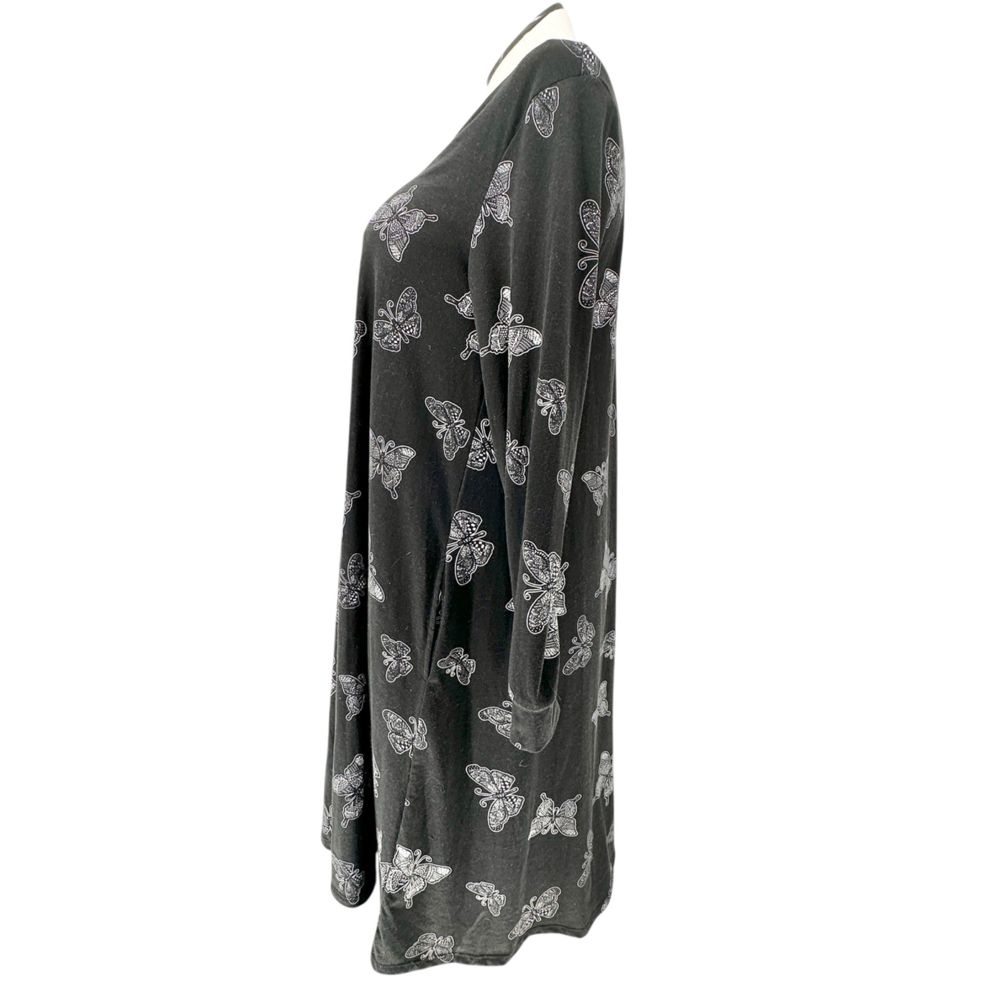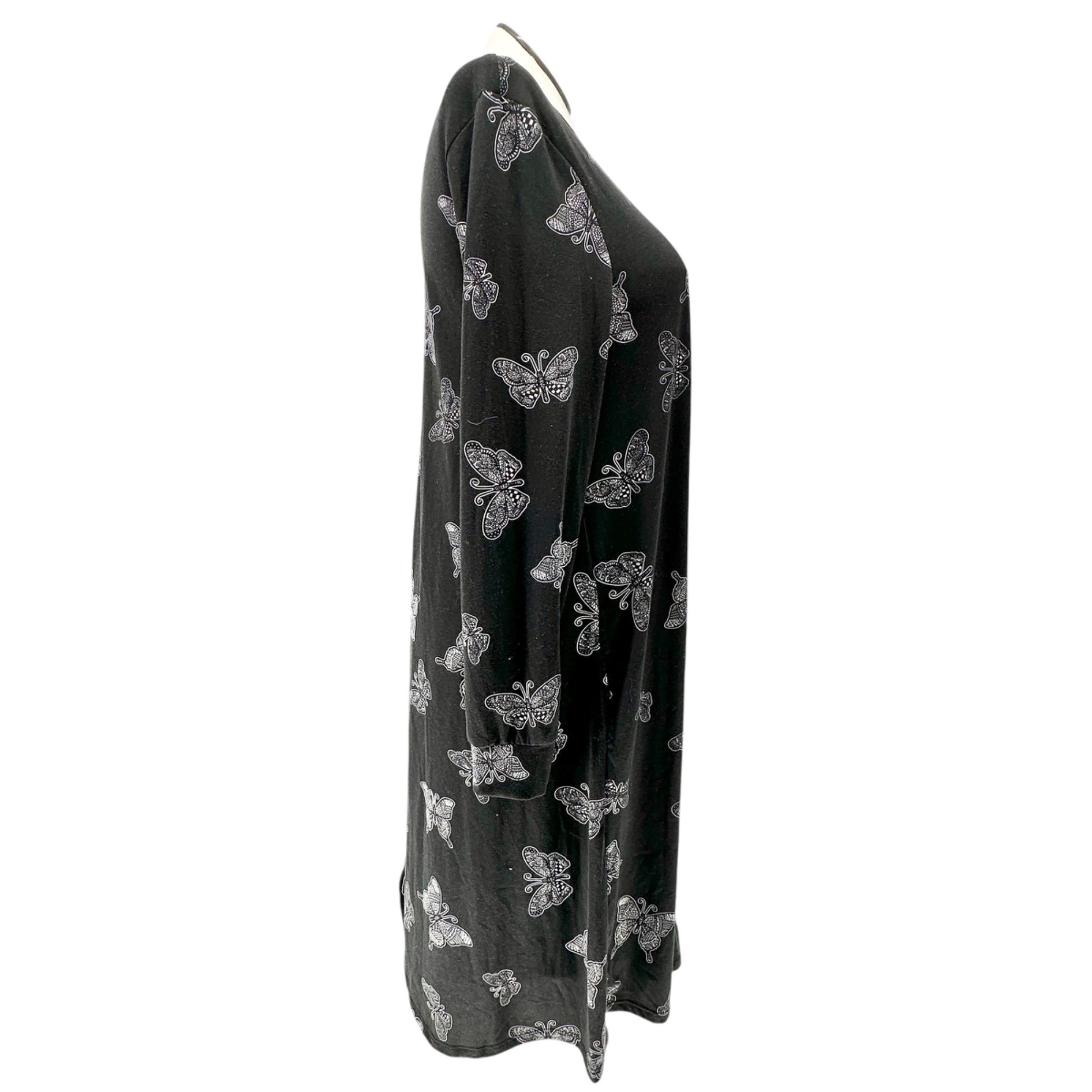 Lularoe Emily Dress Womens L Black White Butterfly Print LS Side Pockets Soft