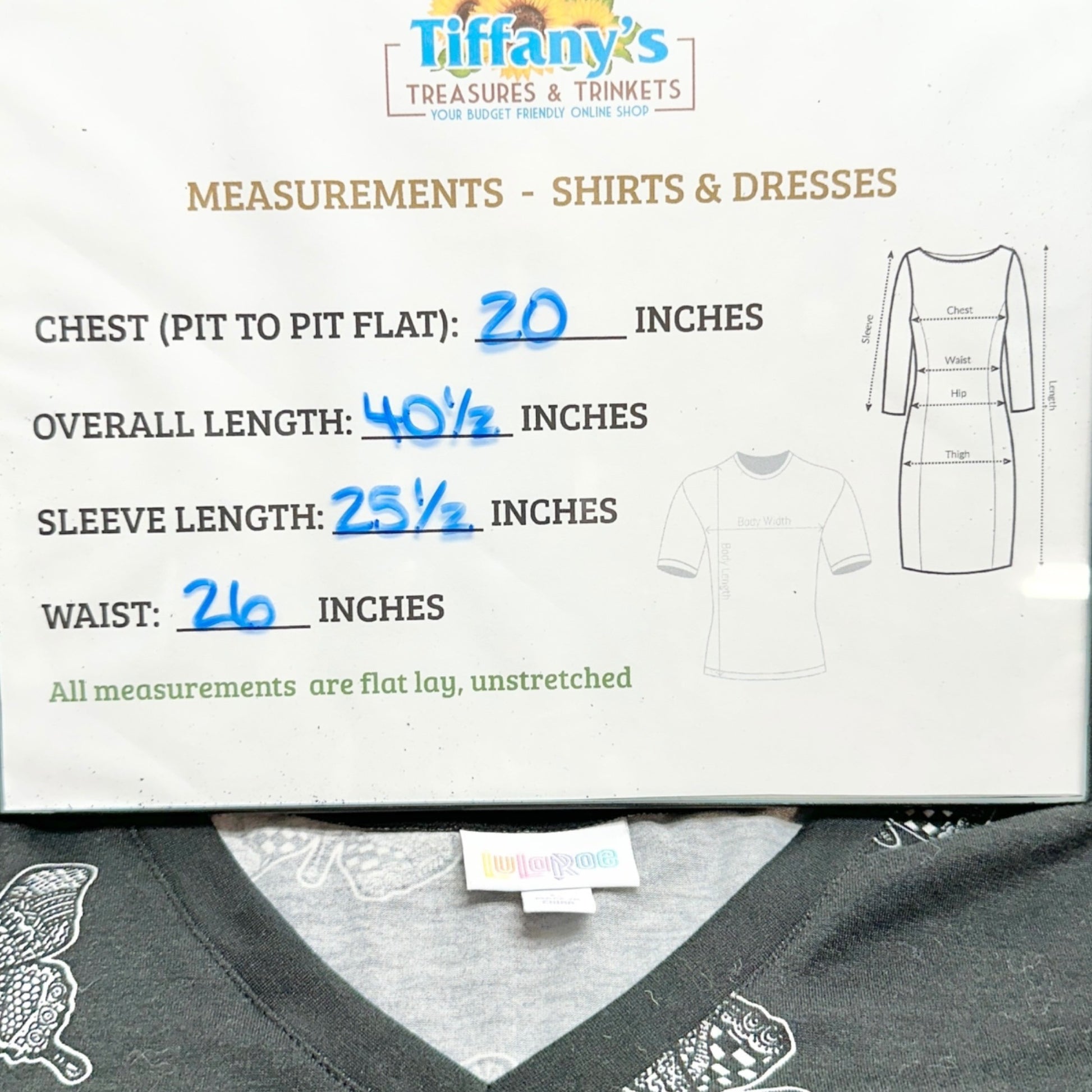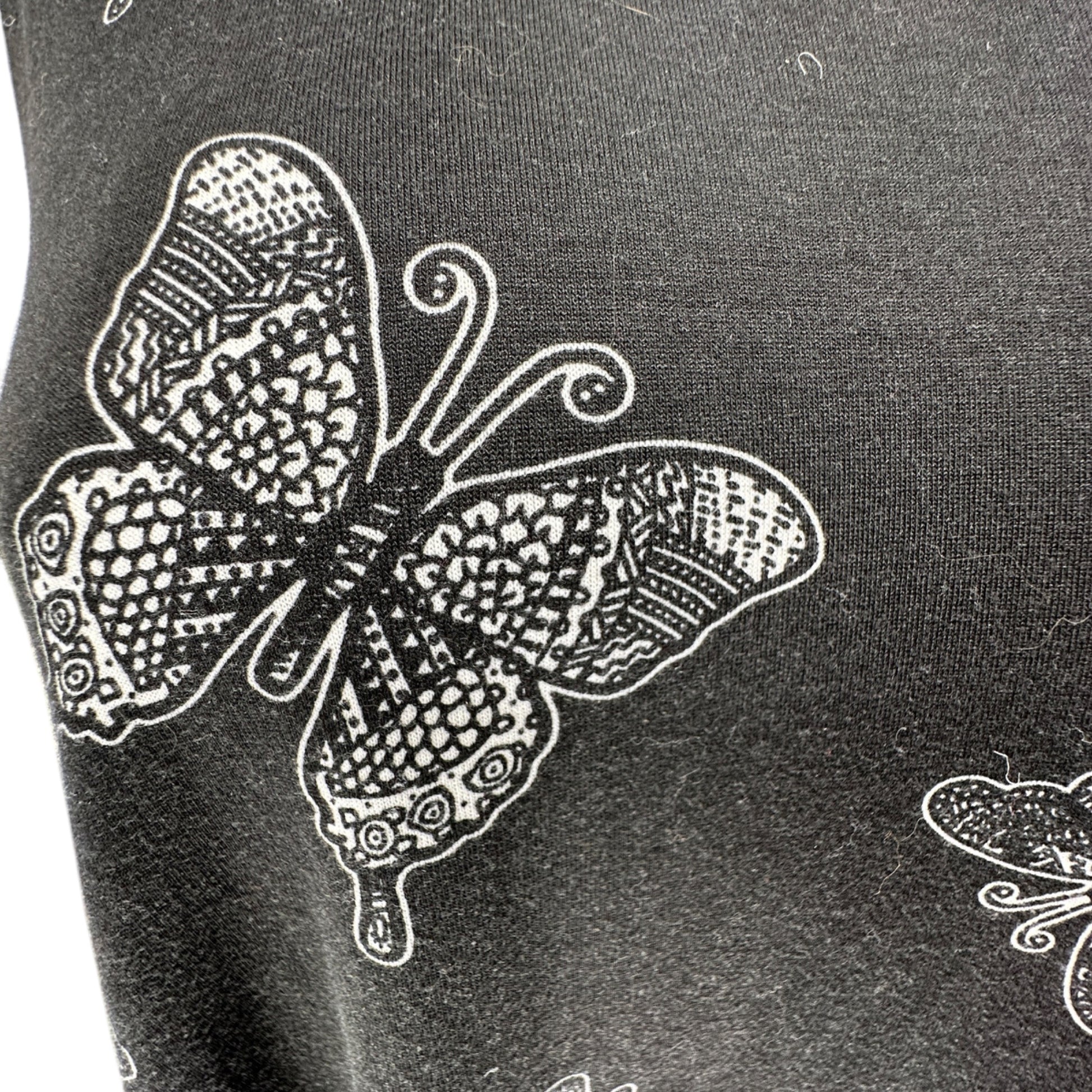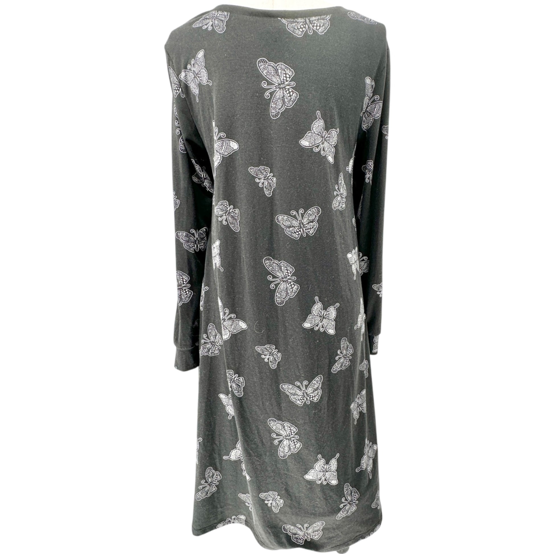 Lularoe Emily Dress Womens L Black White Butterfly Print LS Side Pockets Soft