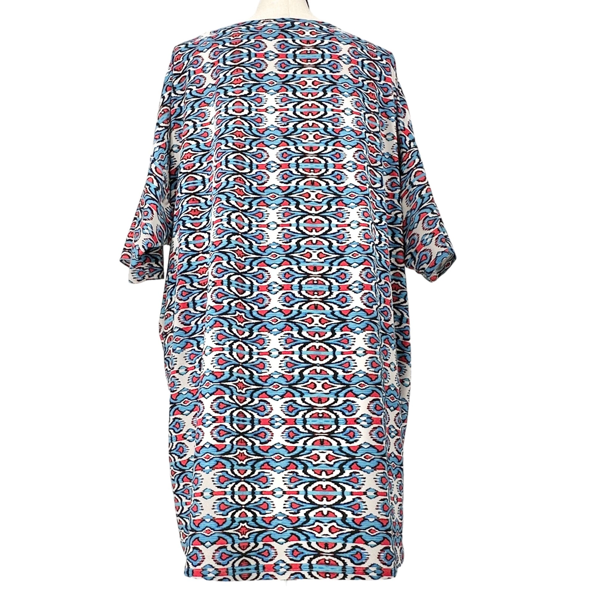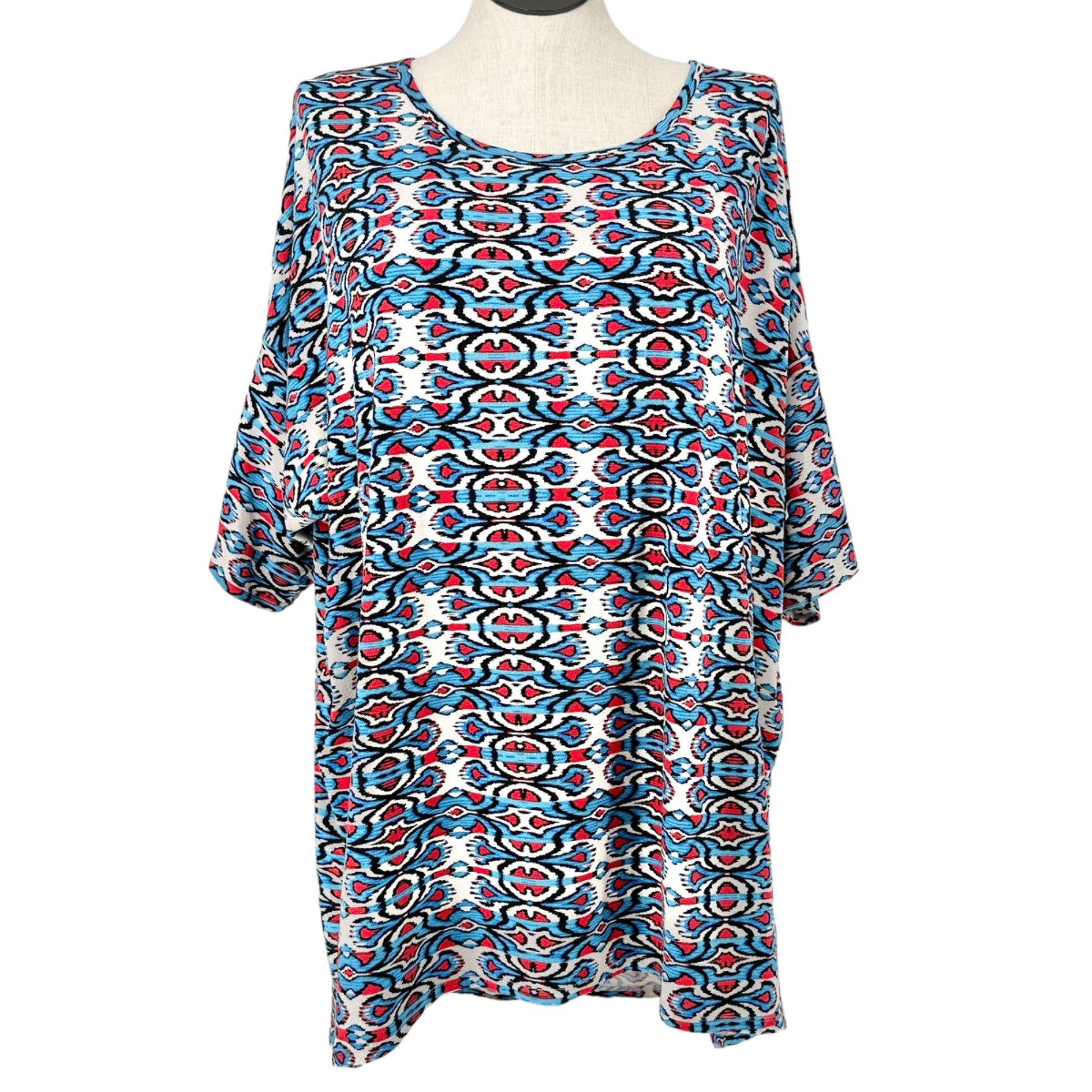 LuLaRoe Irma Top Womens 3XL Geometric Print Red White Blue Scoop Neck HiLow