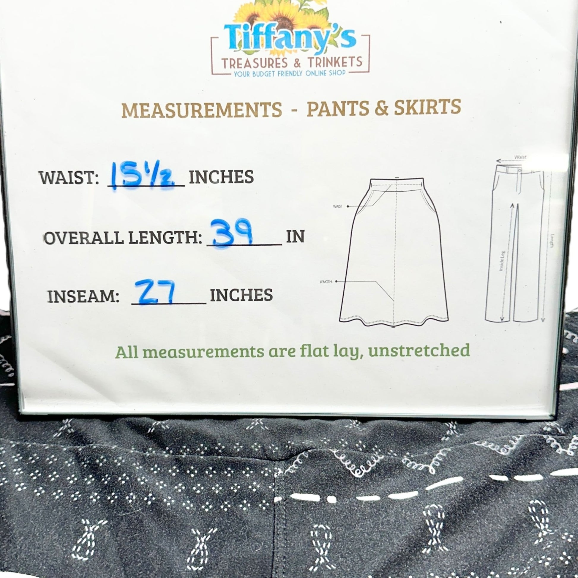 No visible flaws. Measurements: Waist = 15.5 inches, Overall Length = 39 inches, Inseam = 27 inches.