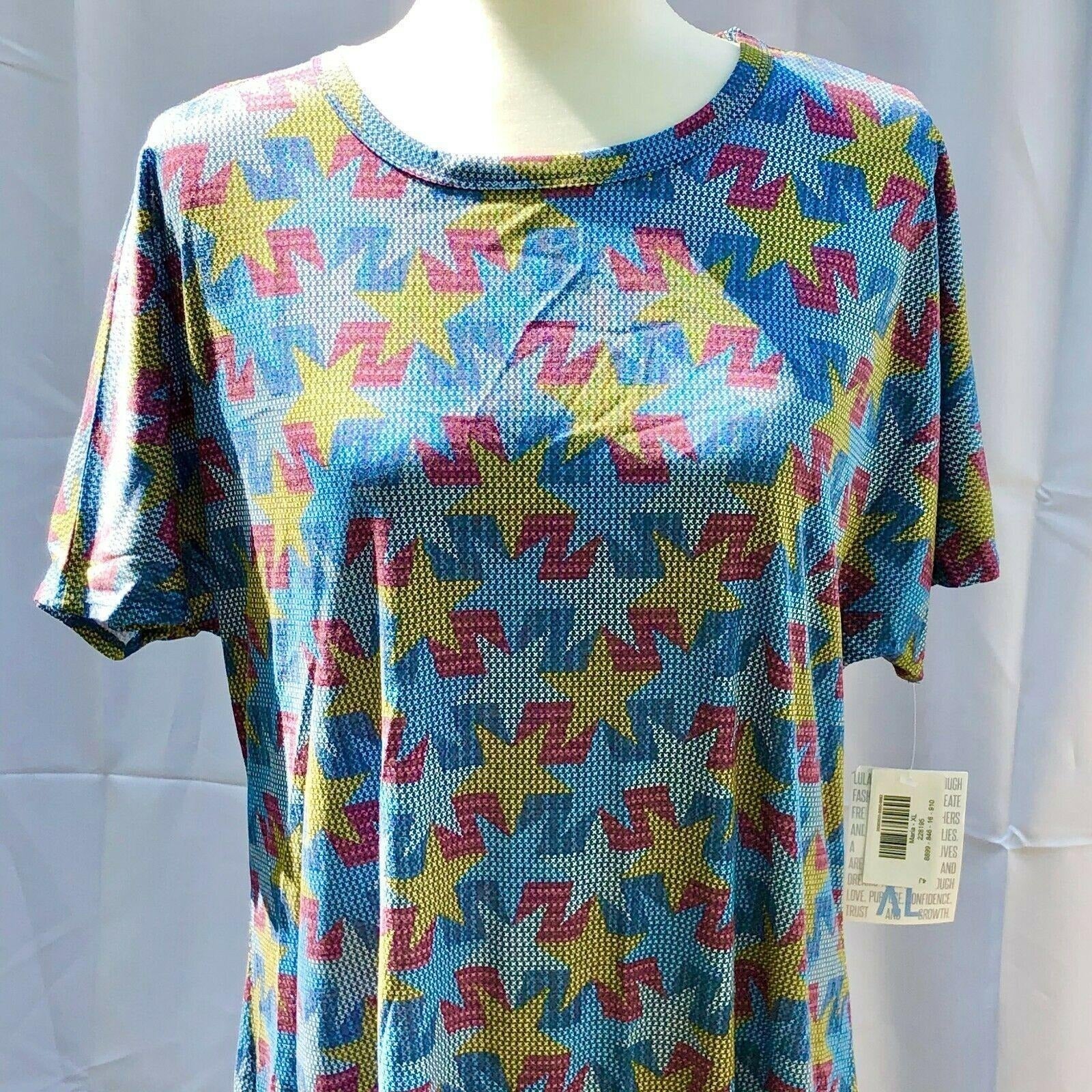 LuLaRoe Maria XL Americana NWT Patriotic Maxi Dress Stars Red Yellow Blue - The Maria is a loose fitting maxi dress with cap sleeve and high neckline with slight high low hemline. Can be worn casual or dressed up!