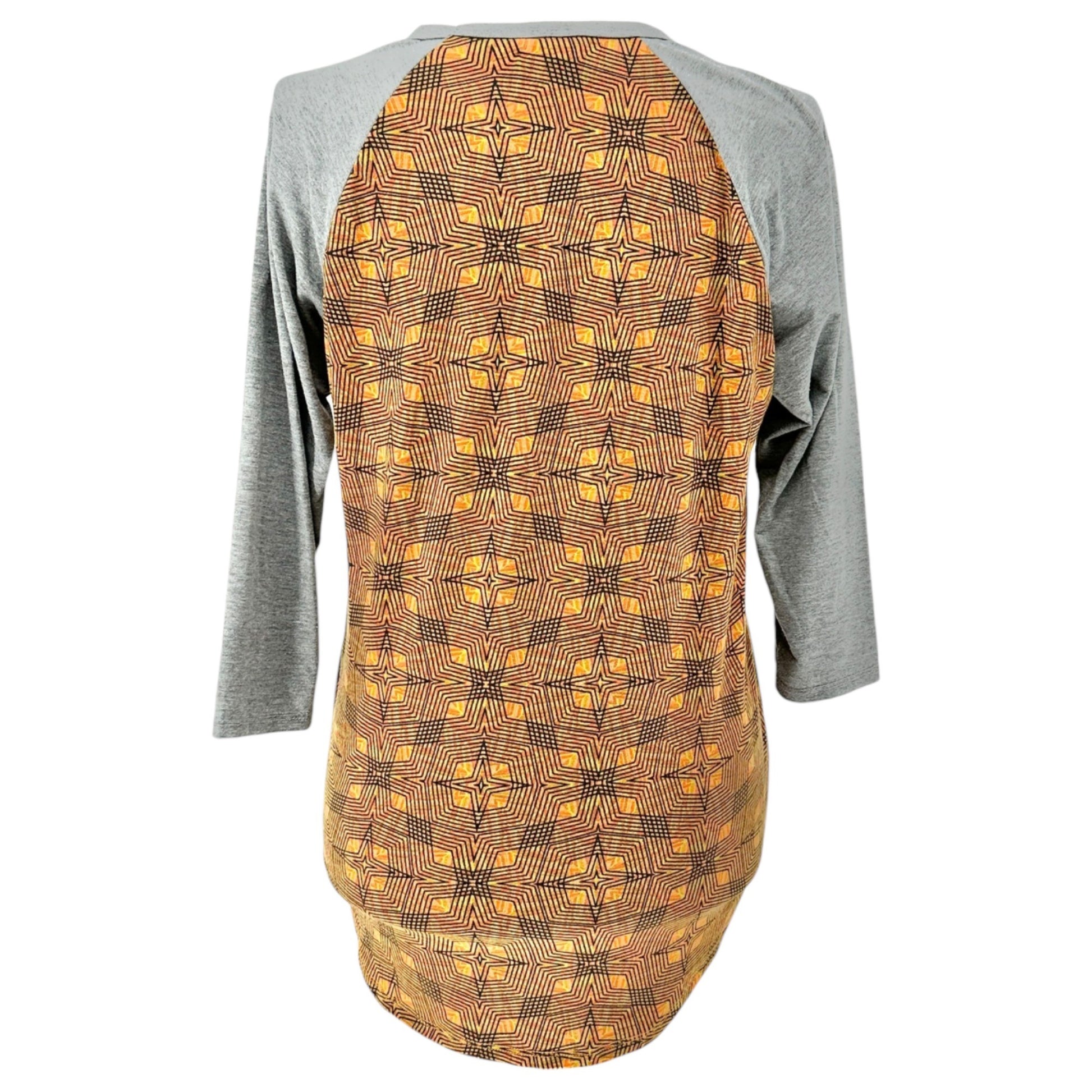LuLaRoe Randy Top L Orange Gray Geometric Star Print 3/4 Sleeve Stretchy Shirt