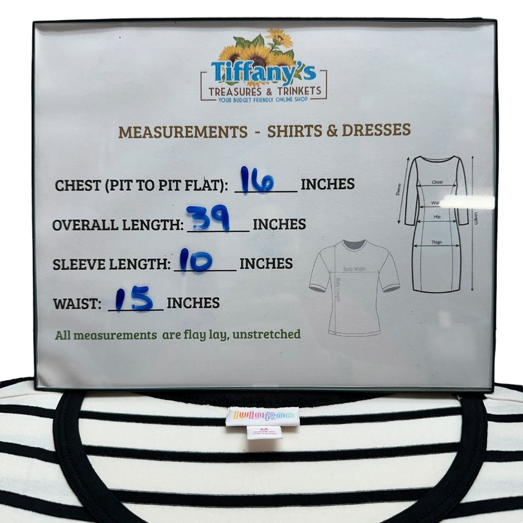 • LuLaRoe Retired Julia Dress M Black and White Striped SS Form Fitting NWT