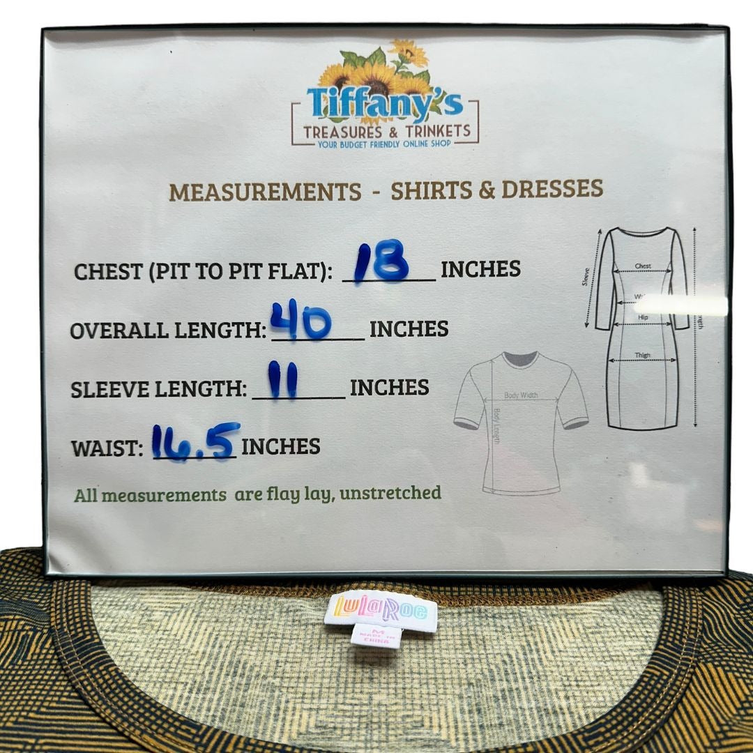 • LuLaRoe Retired Julia Dress M Brown and Black Geometric Print SS Form Fitting NWT