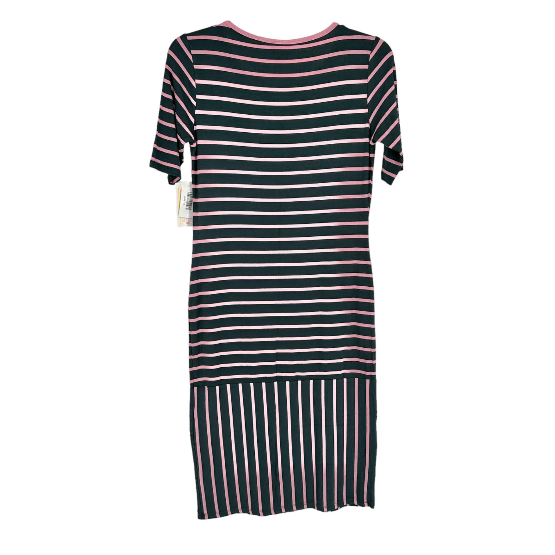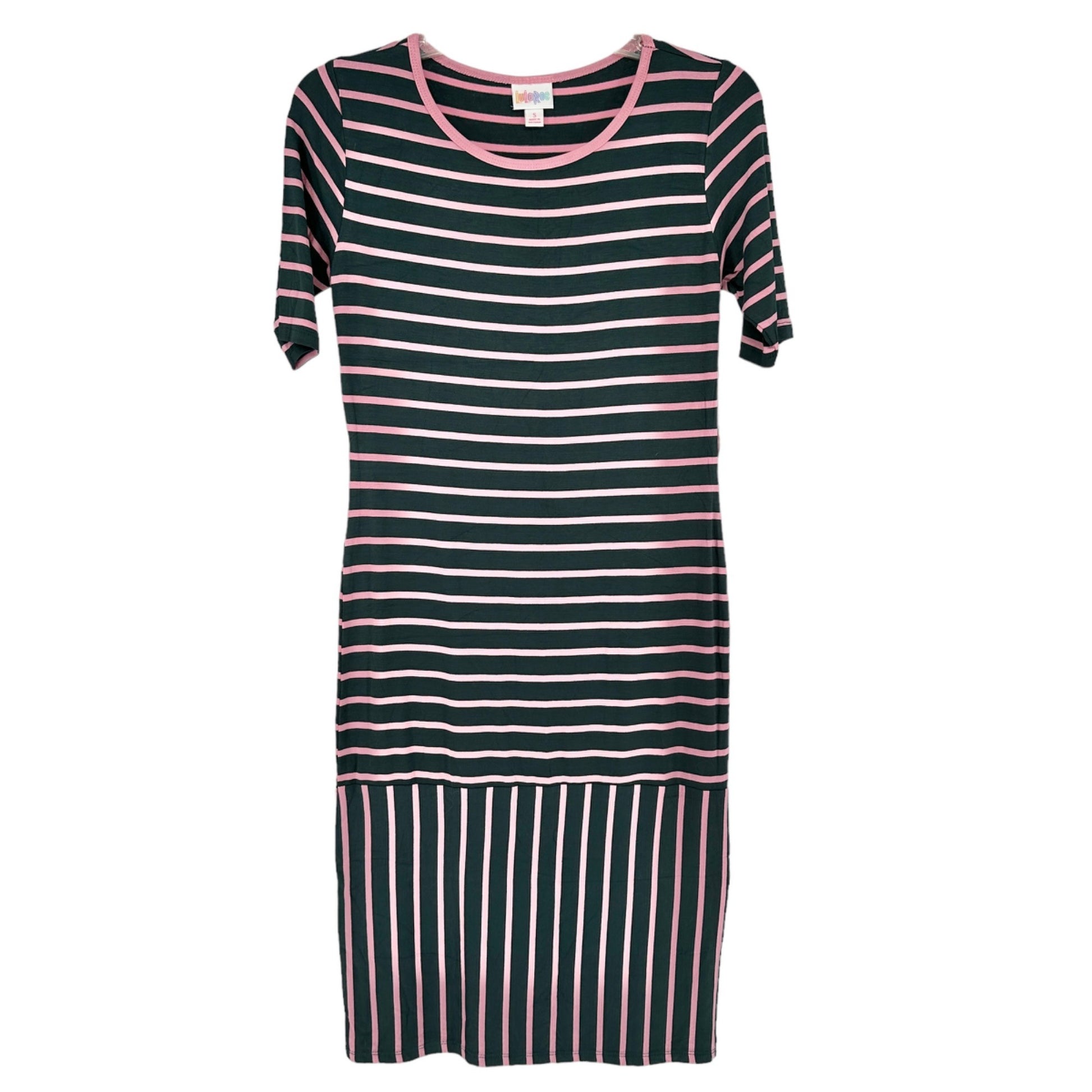 LuLaRoe Retired Julia Dress S Gray and Pink Striped SS Form Fitting NWT