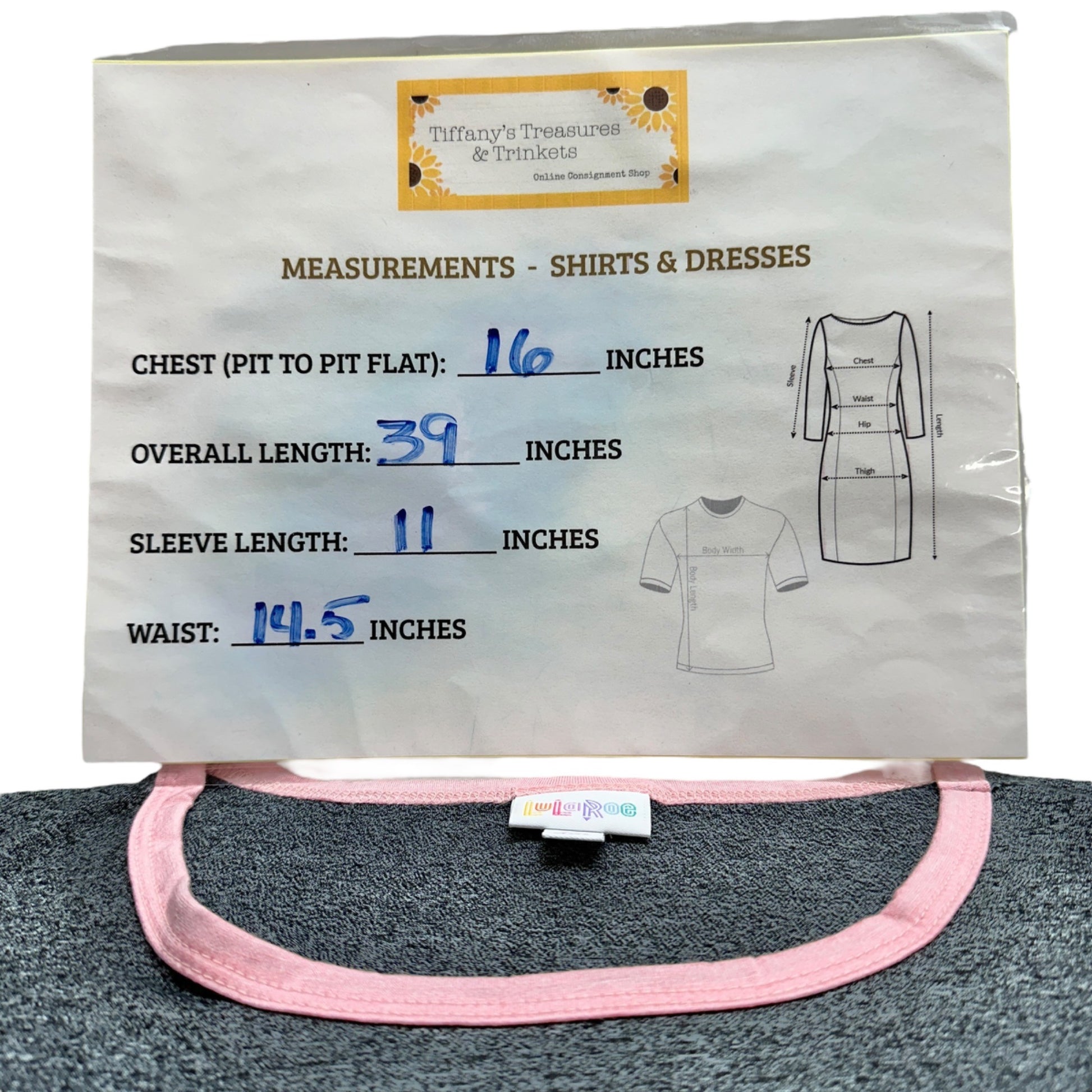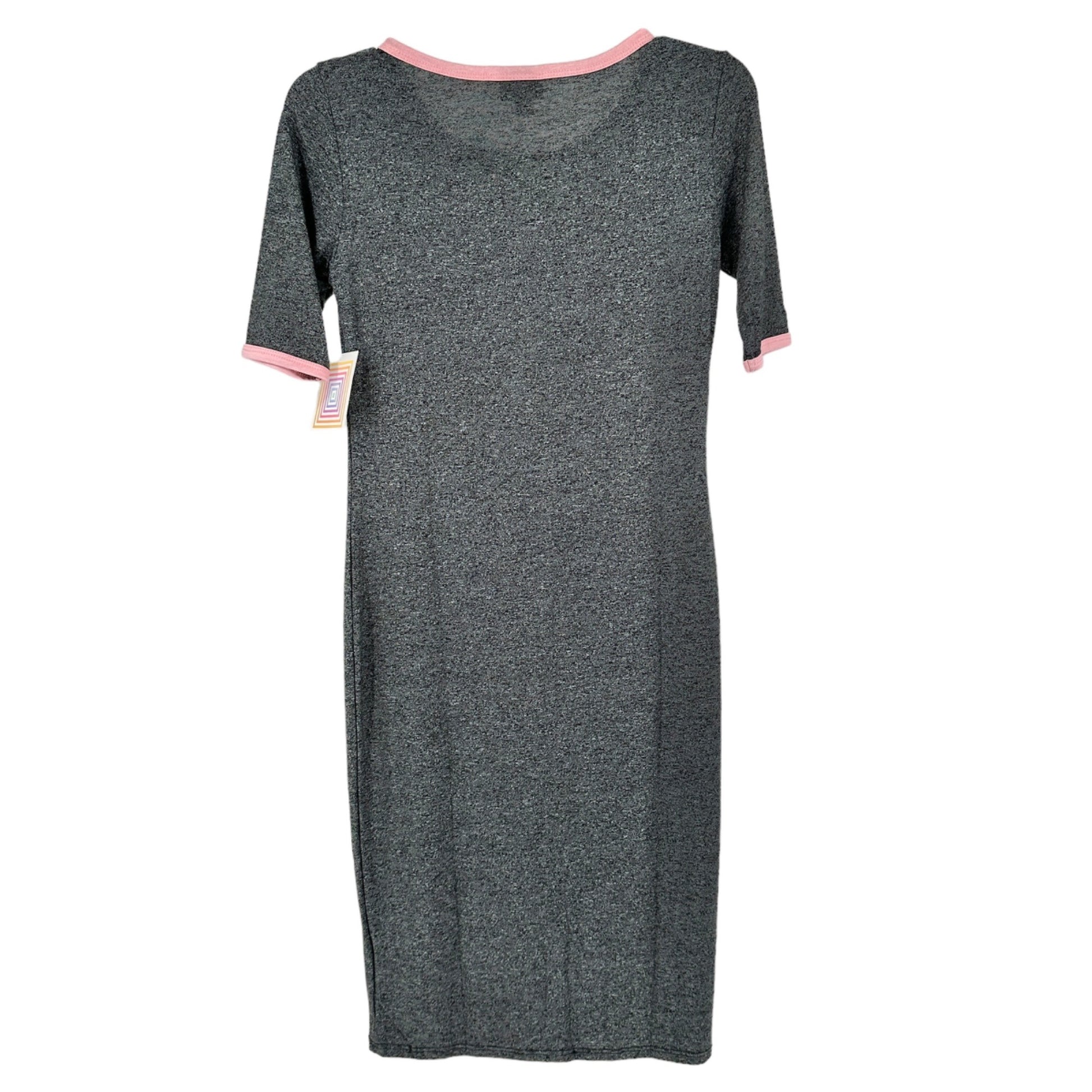 LuLaRoe Retired Julia Dress XS Heathered Gray with Pink Trim Neck SS Form Fit NWT
