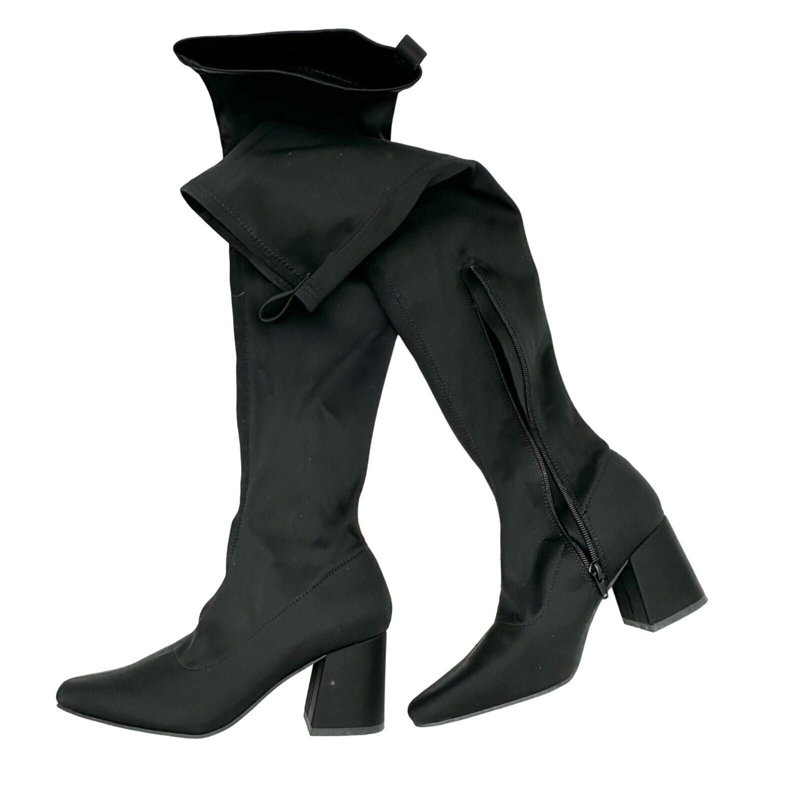Missguided Boots Size 6.5 Black Thigh High 22.5 inch Shaft 3 inch Heel EUC