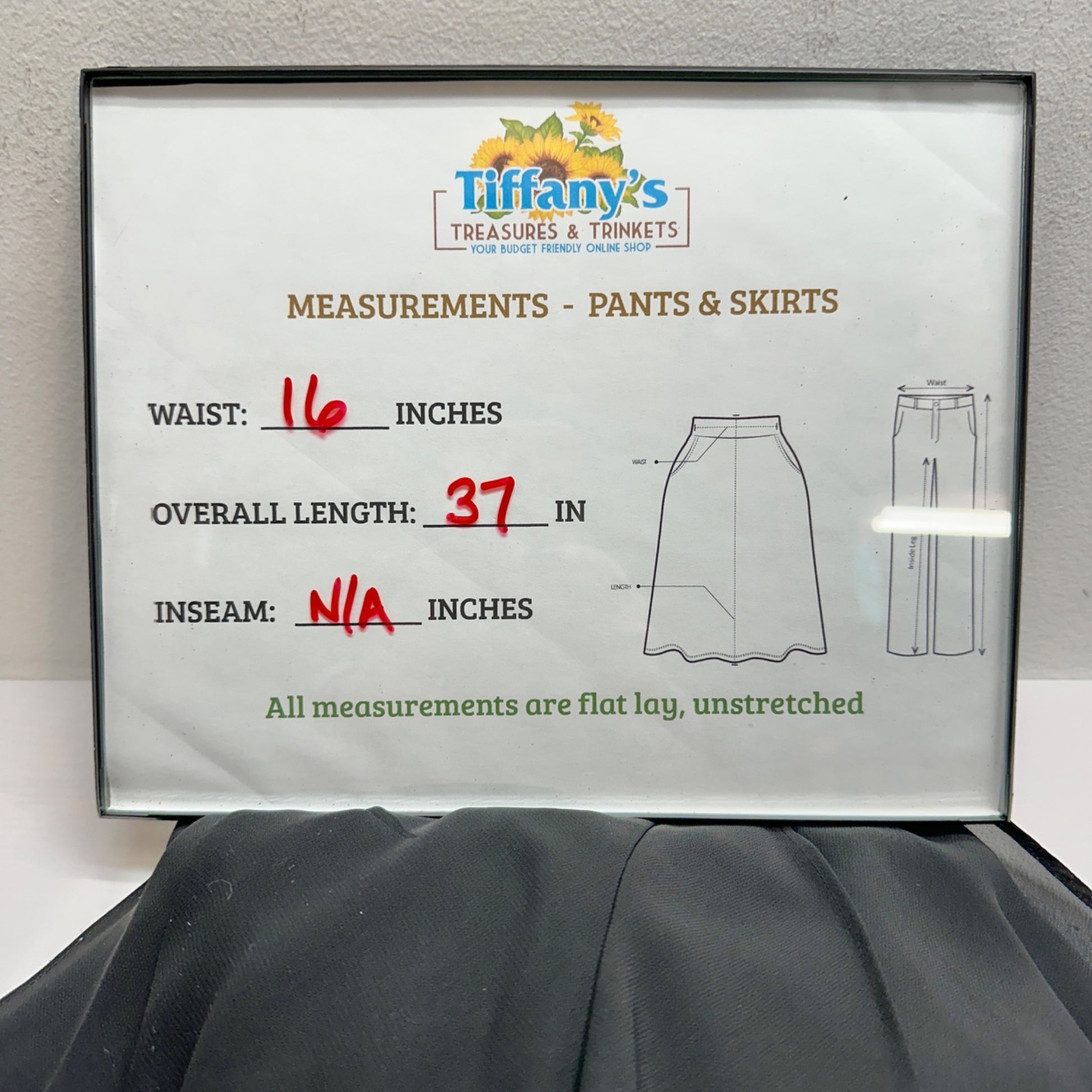 Measurements: Waist = 16 inches, Overall Length = 37 inches.