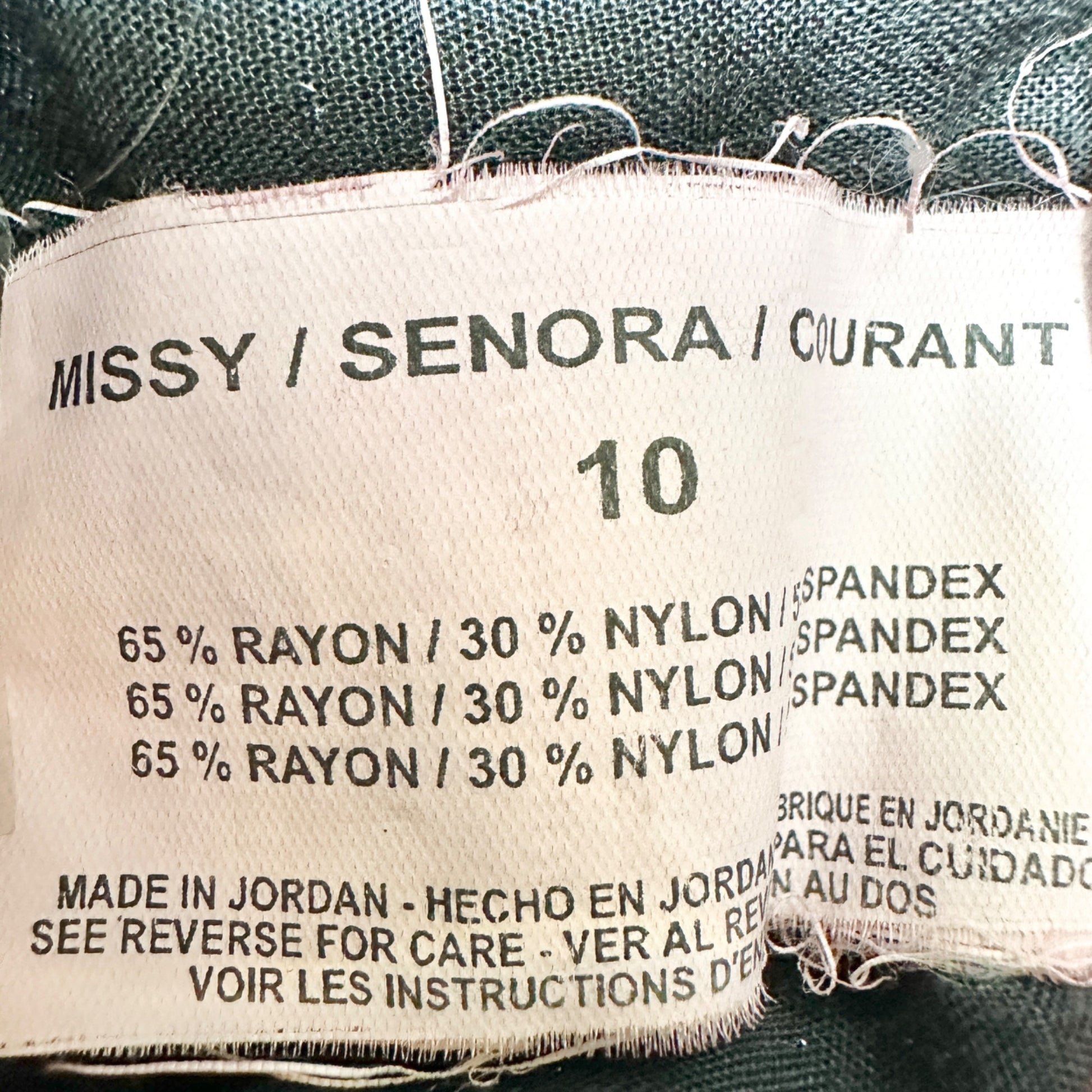 • 65% Rayon, 30% Nylon, 5% Spandex