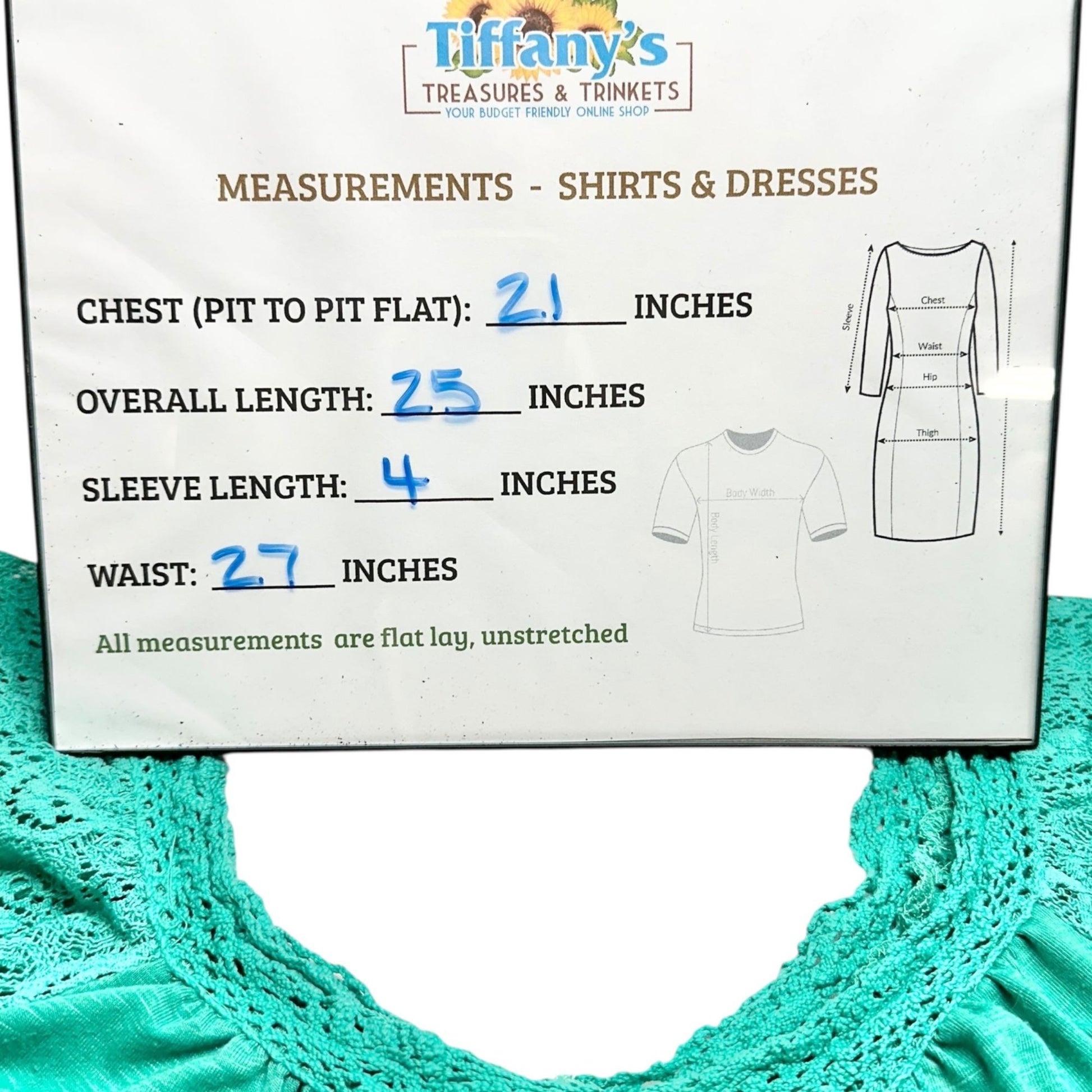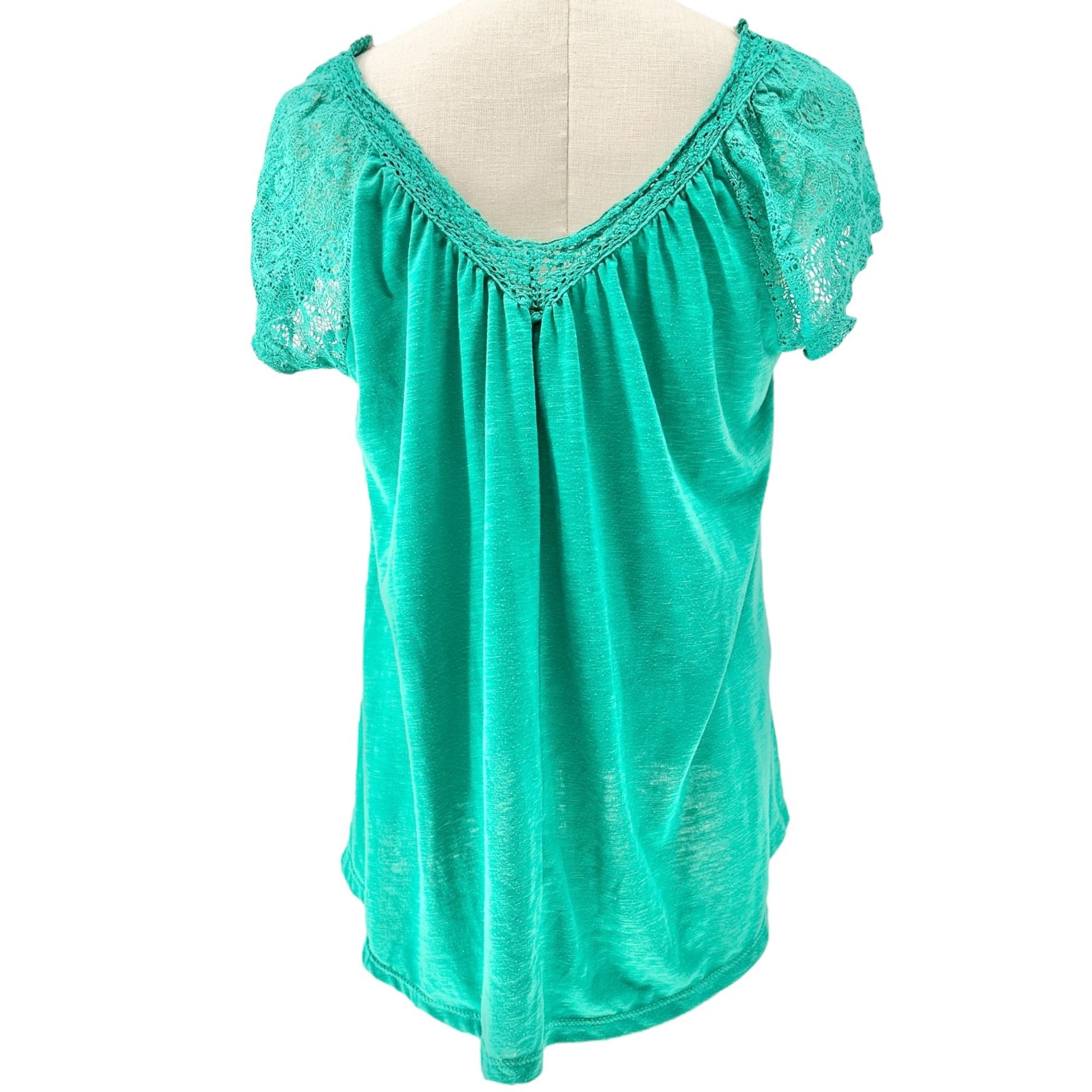 No Boundaries Blouse Juniors XL (15-17) Green Lace-Trimmed SS Poly Spandex Blend