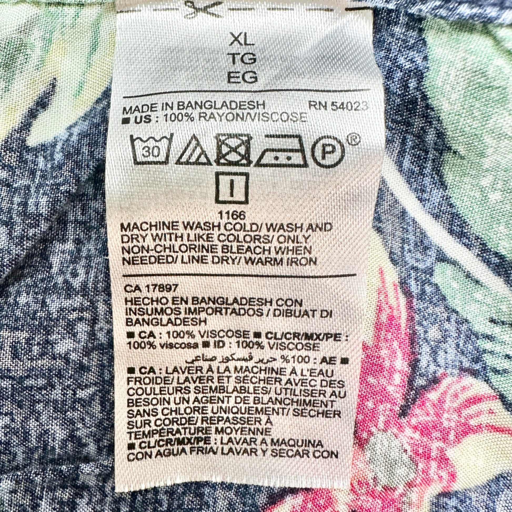 Old Navy Floral Hawaiian Shirt Mens XL Rayon Button-Up SS Tropical Navy Pink