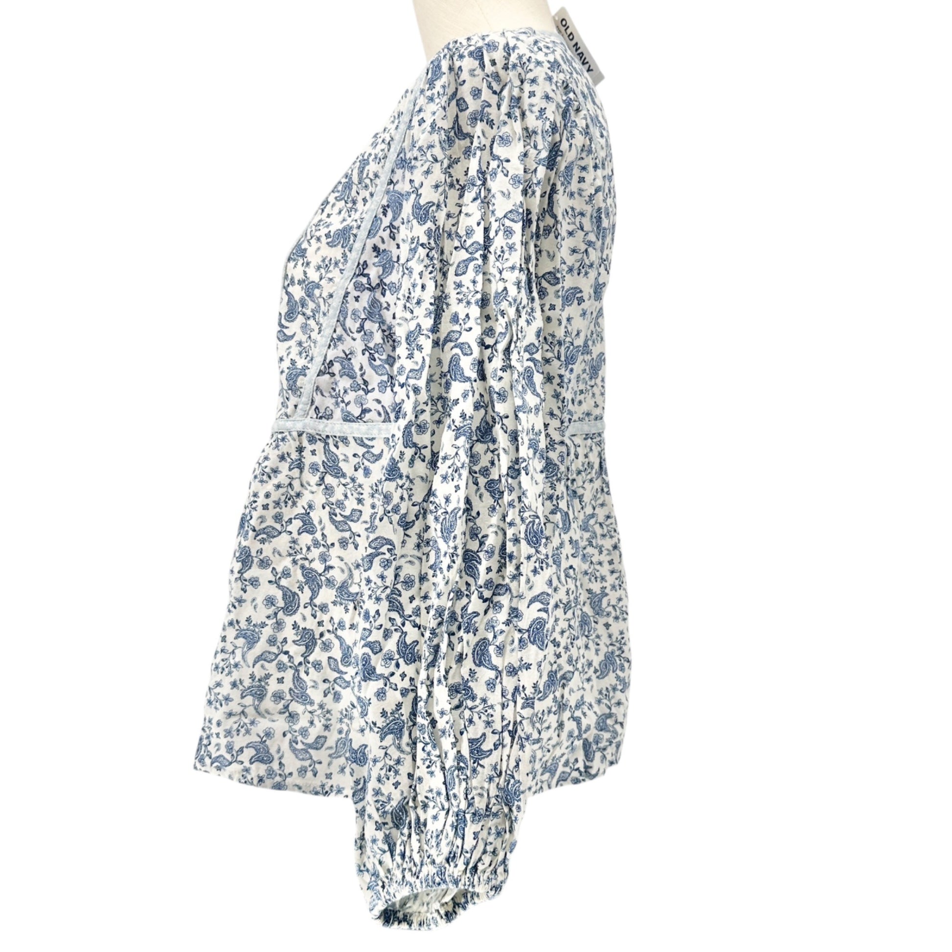 Old Navy Peasant Button-up Blouse Womens S Petite Blue White Floral Rayon Cotton
