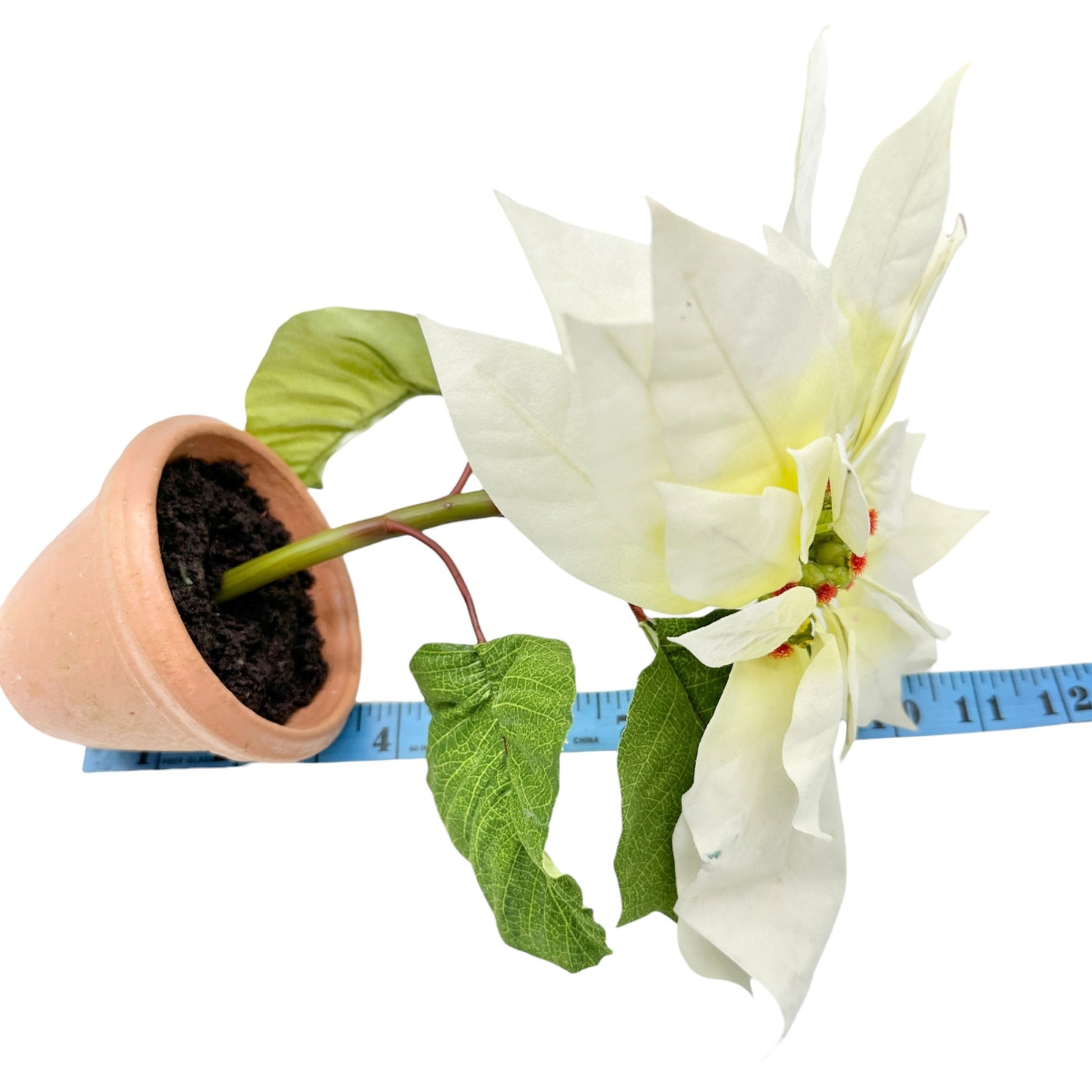 Pair of Faux White Poinsettia Plants In 3.5 inch Terracotta Pots 11 inches tall