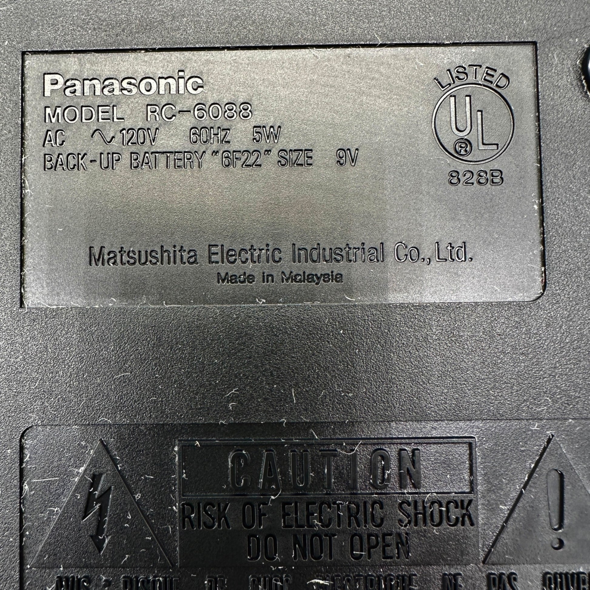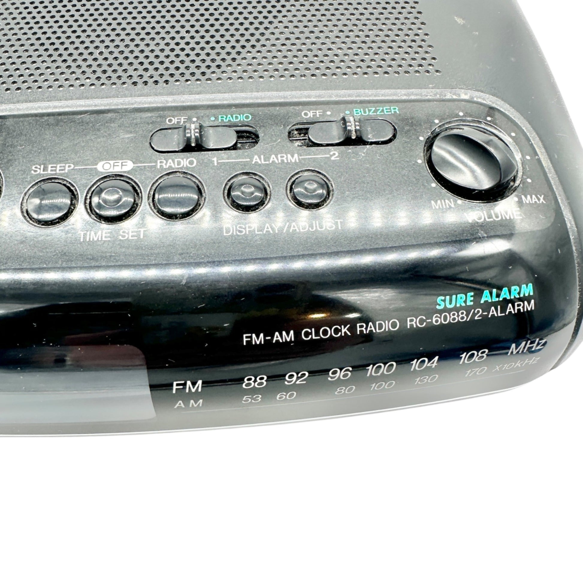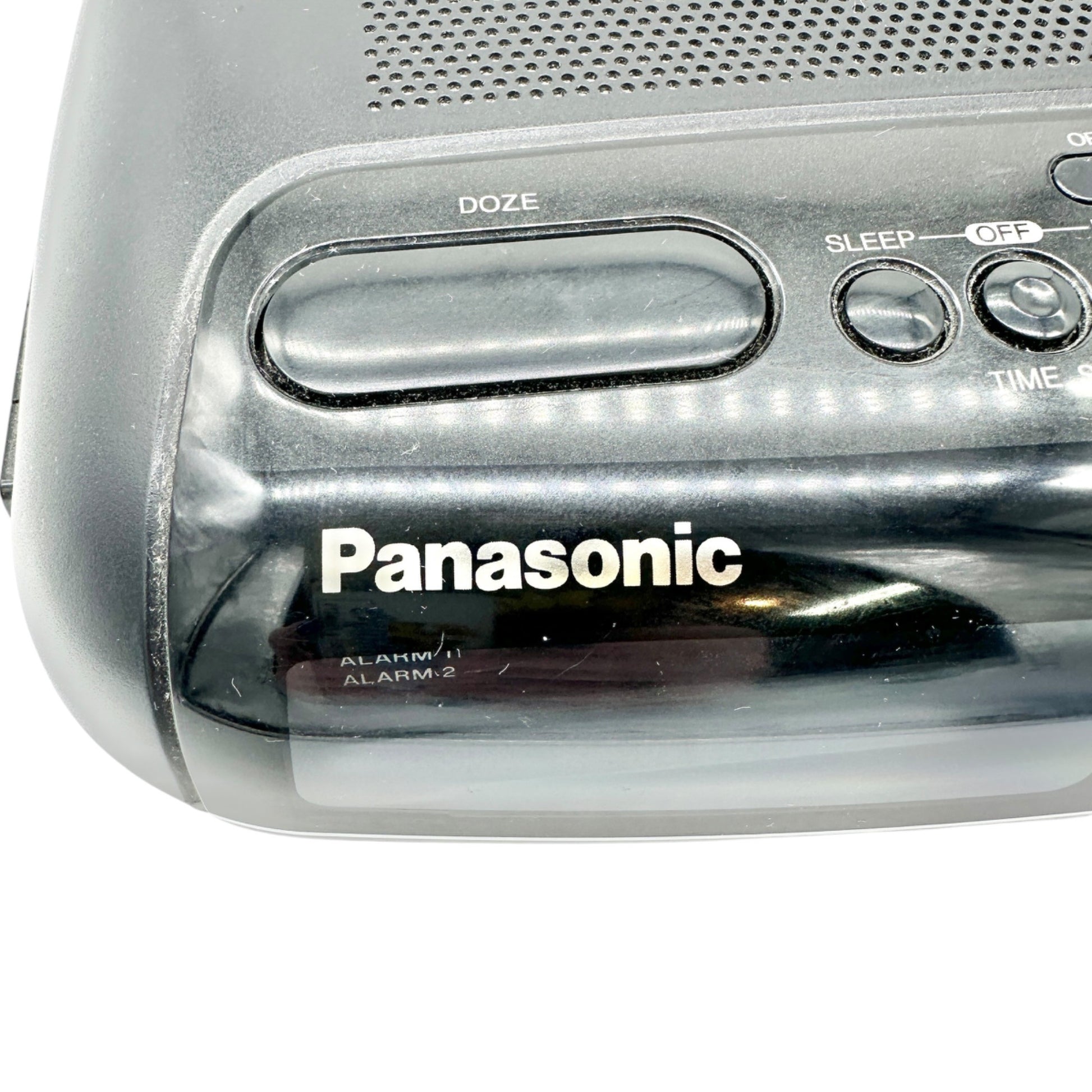 Panasonic FM AM Clock Radio RC6088 Dual Alarm Sure Alarm Black Dual Power WORKS