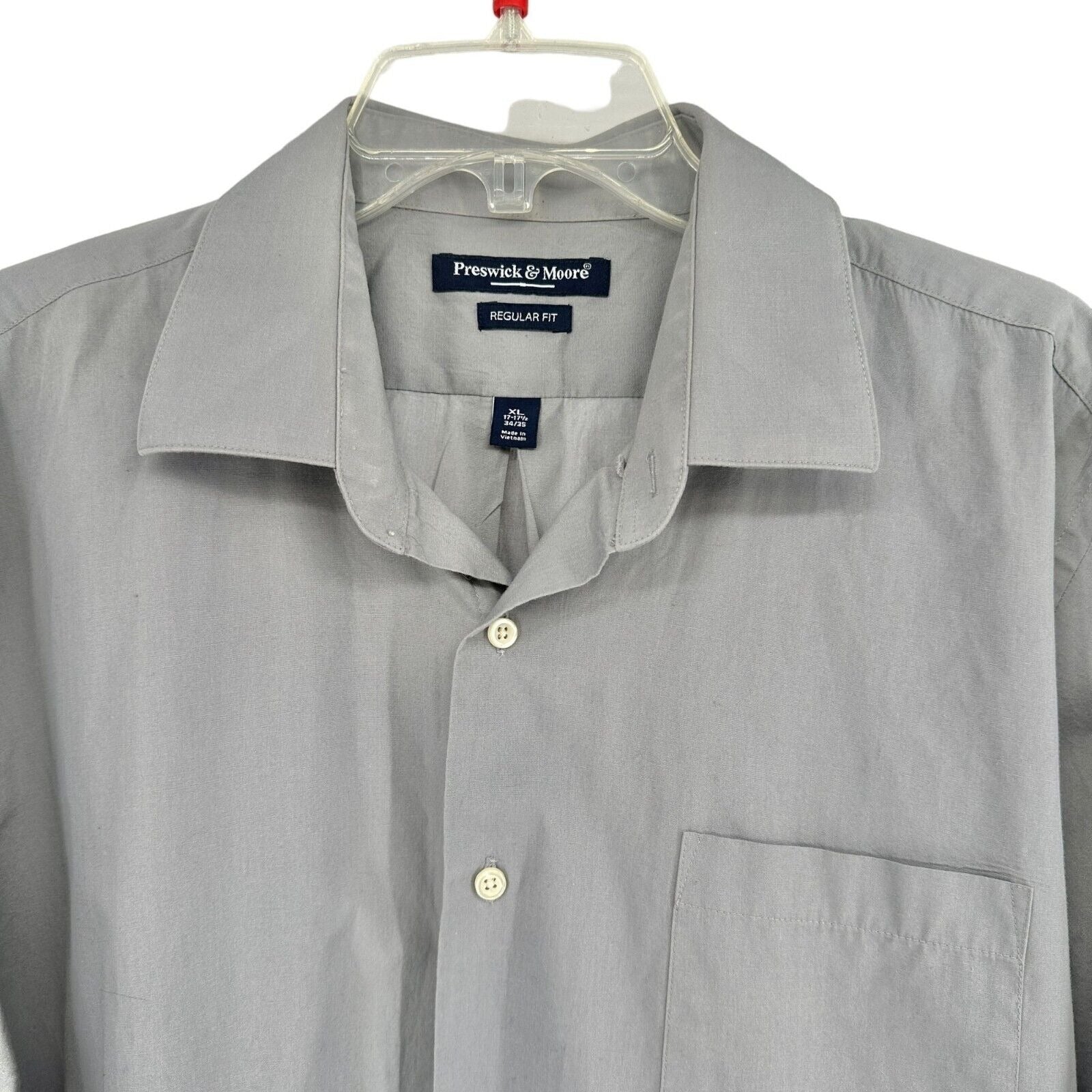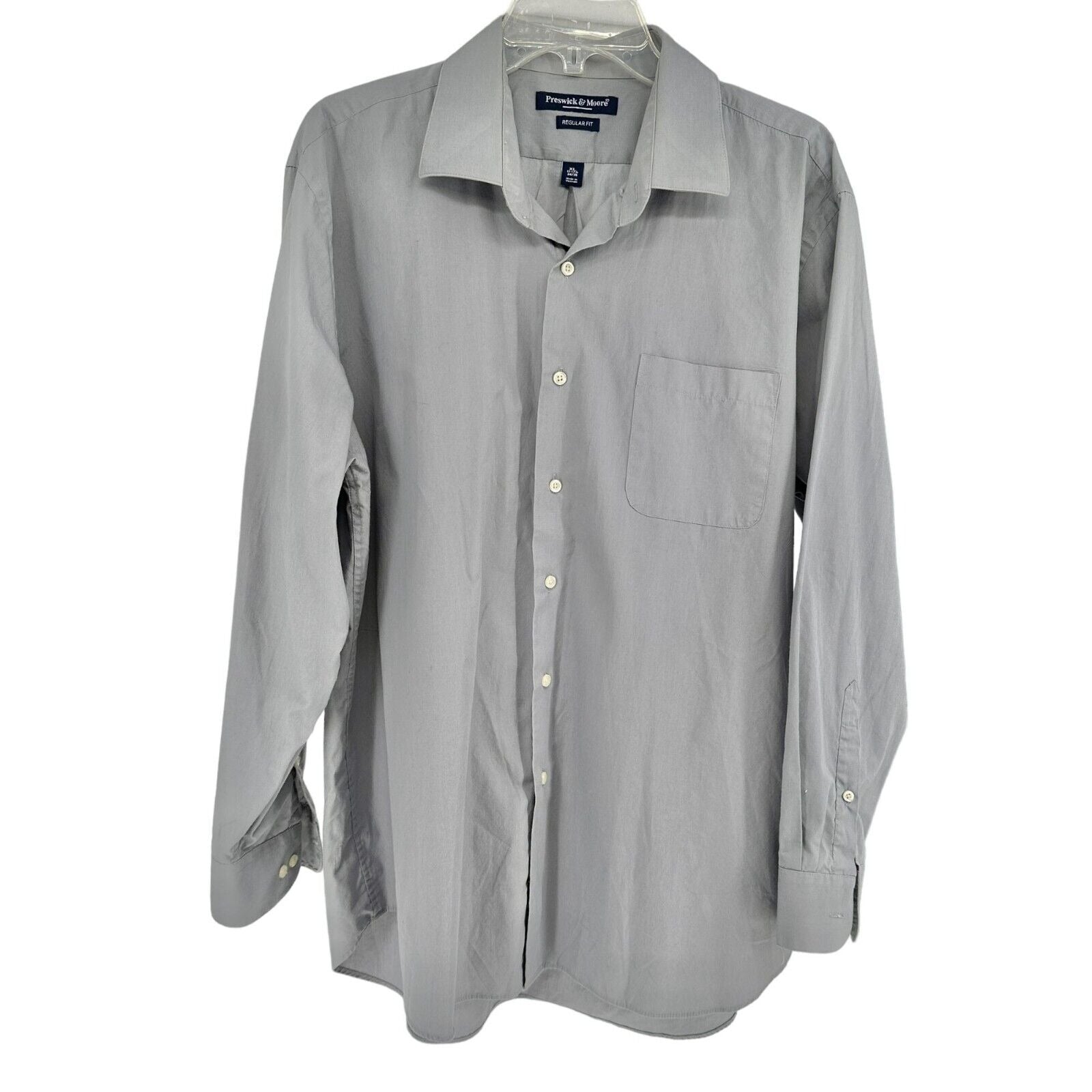 Preswick & Moore Men's Regular Fit Shirt XL 17-17 1/2 34/35 Gray features long sleeves, button down front and single chest pocket. Business to casual!