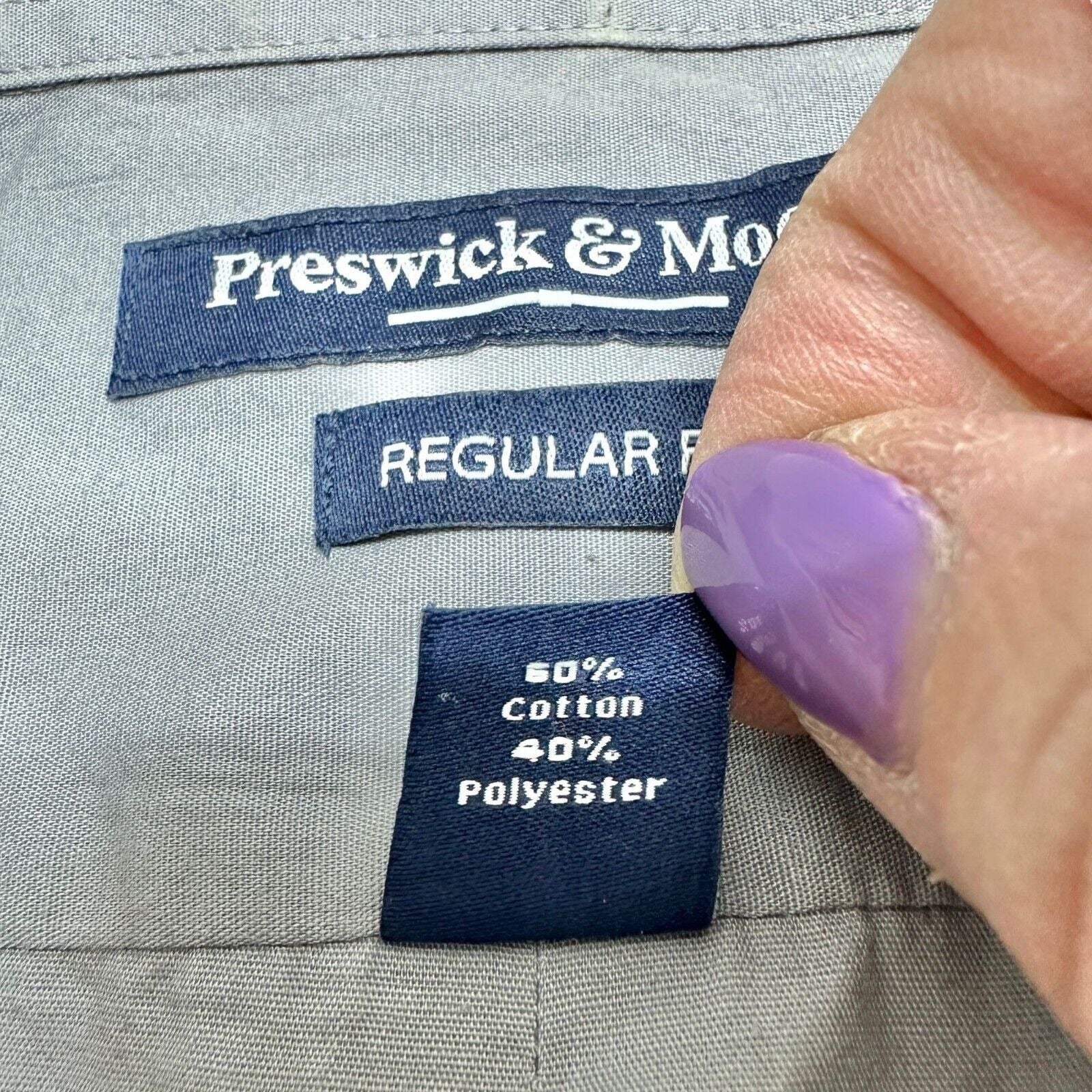 Preswick & Moore Regular Fit Shirt XL 17-17 1/2 34/35 Gray LS Button Down
