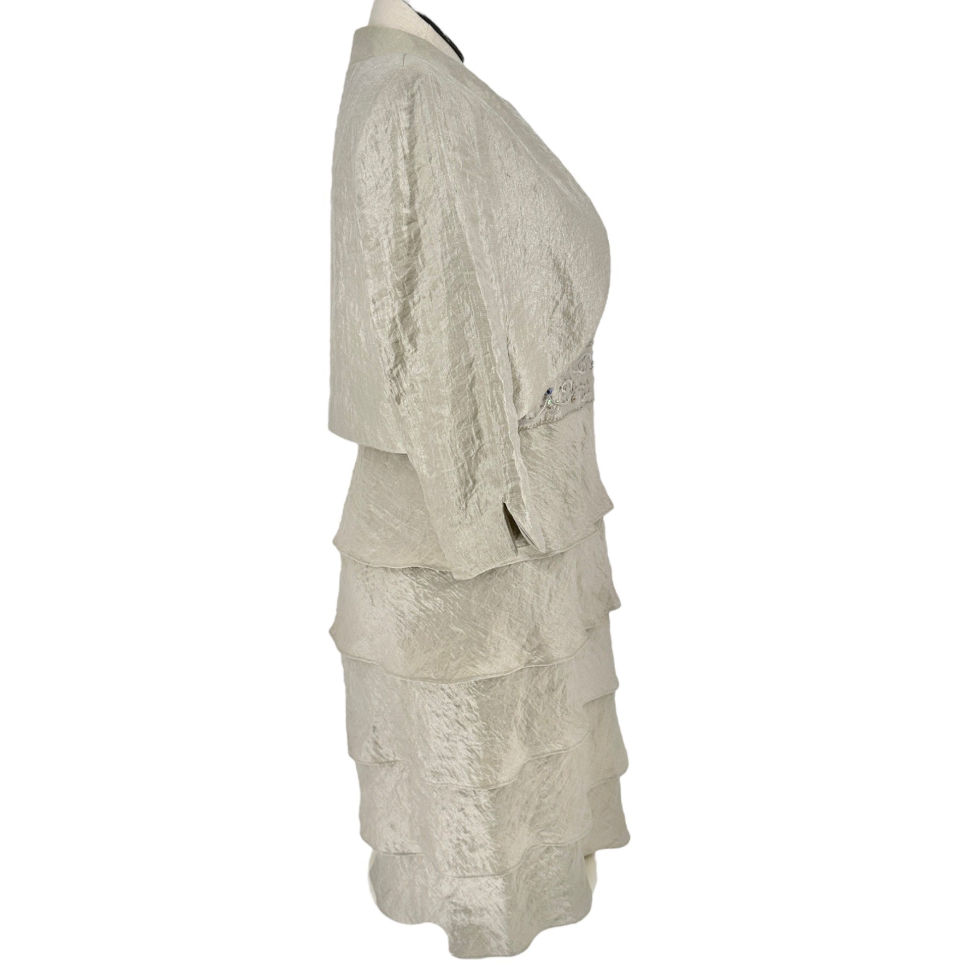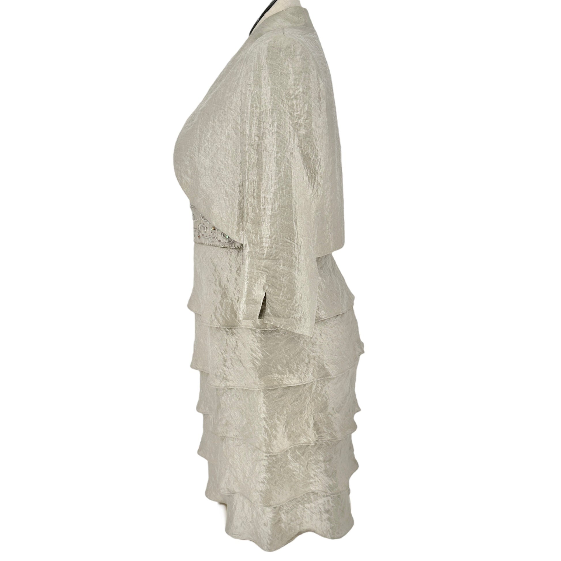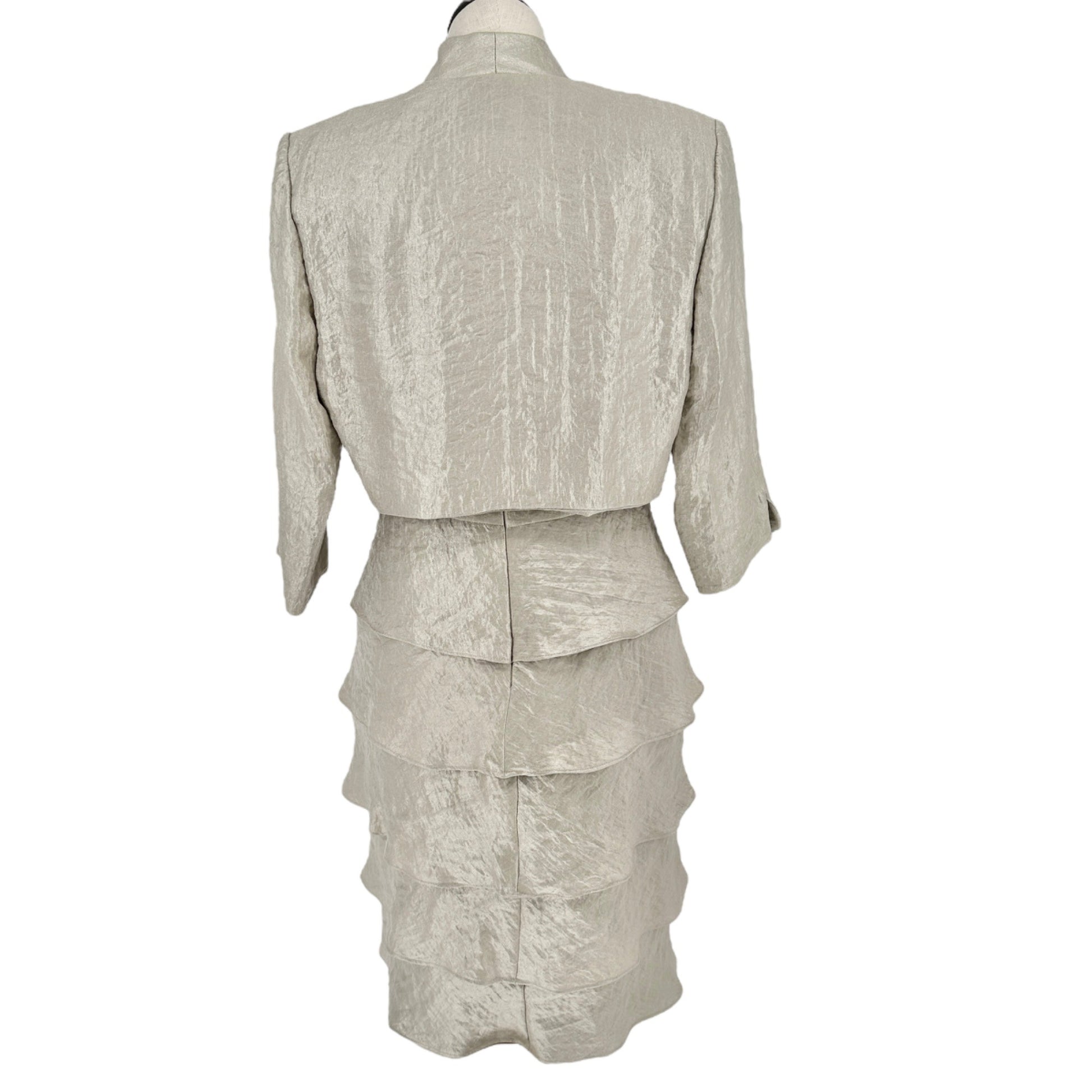 R&M Collection 2pc Dress Jacket Set Womens 16 Champagne Gold Tiered Skirt
