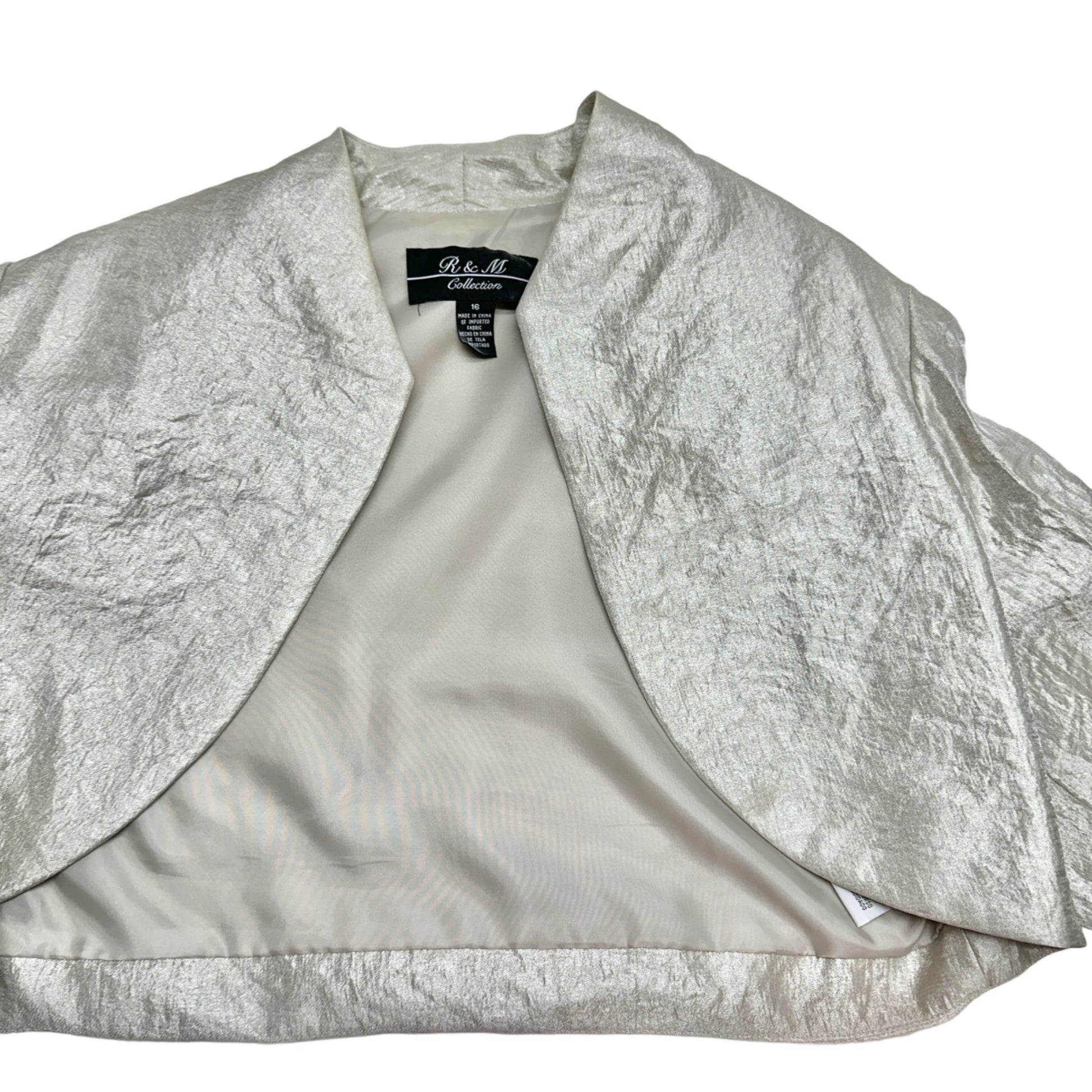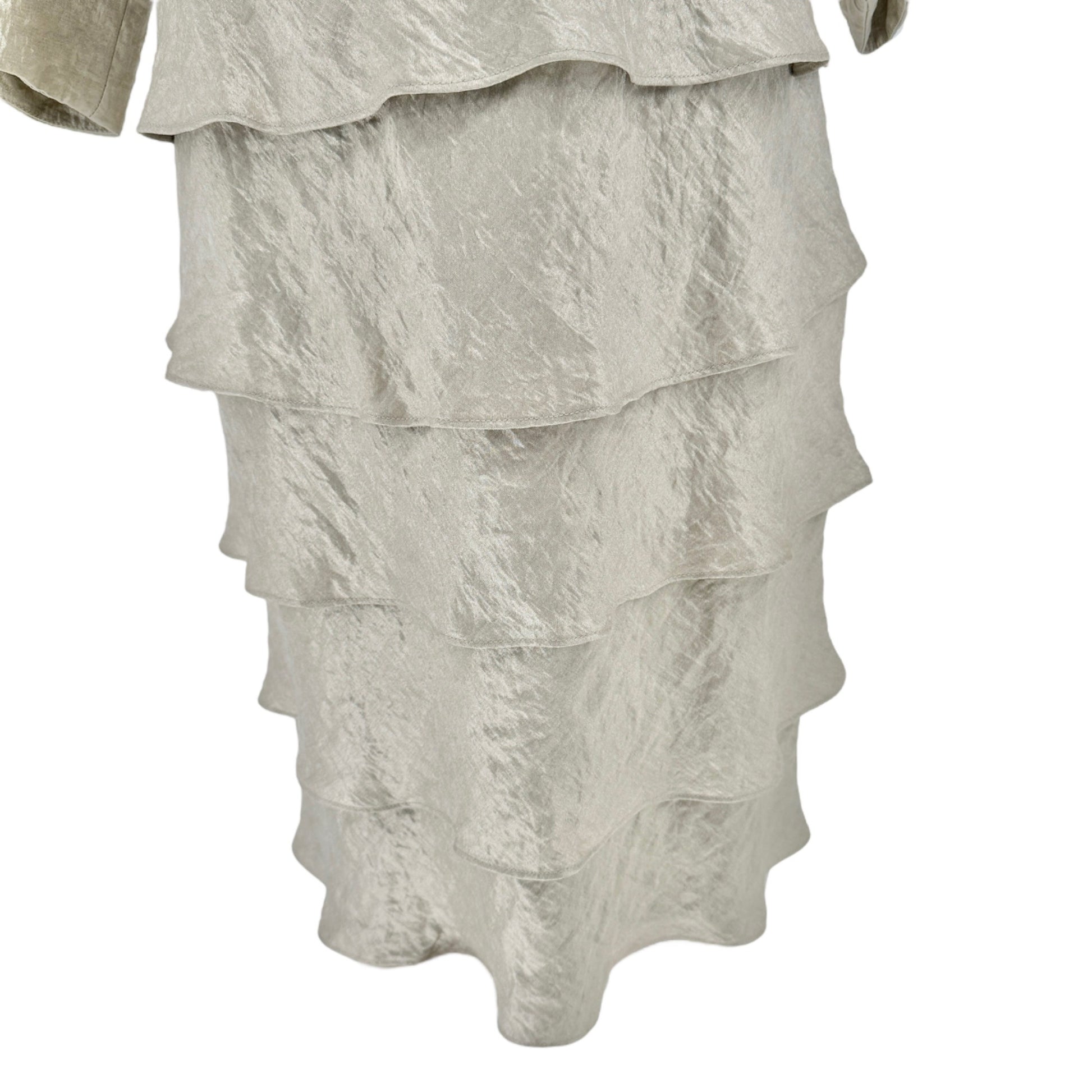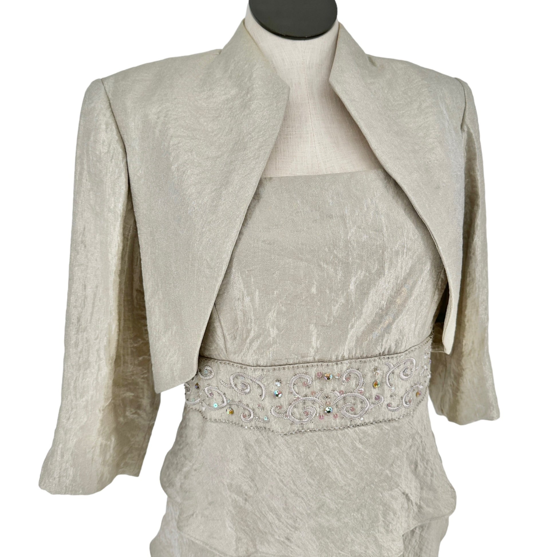 R&M Collection 2pc Dress Jacket Set Womens 16 Champagne Gold Tiered Skirt