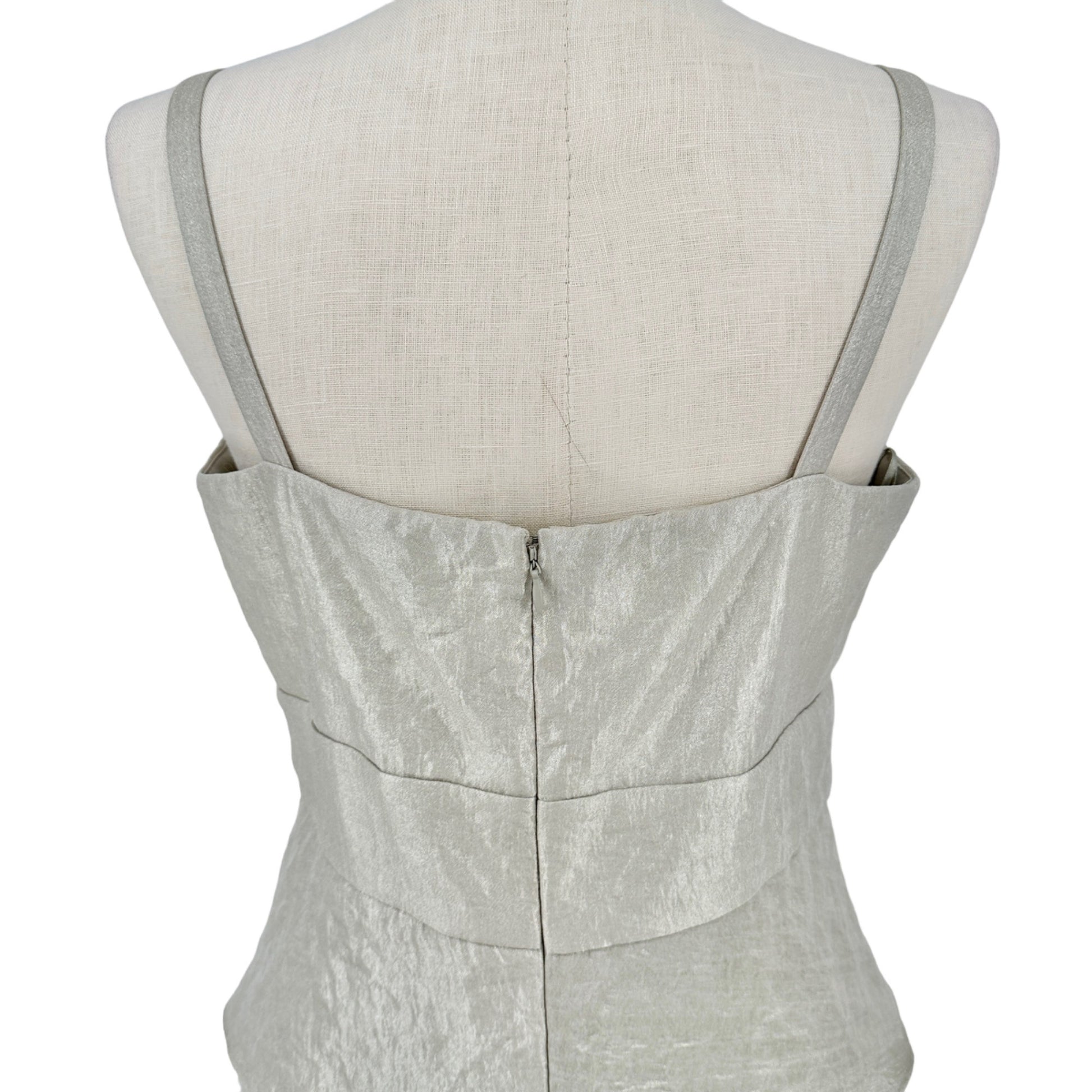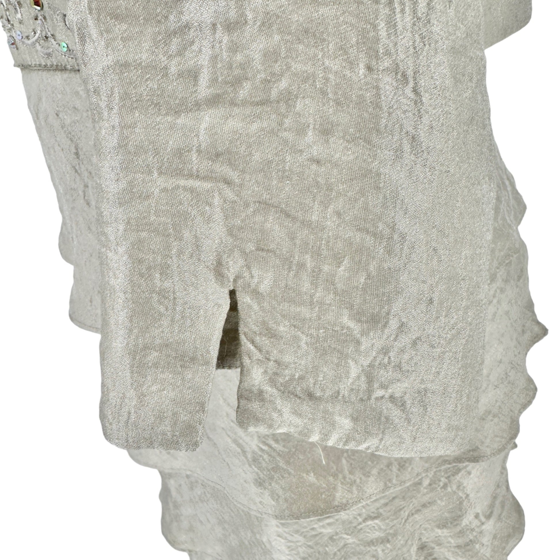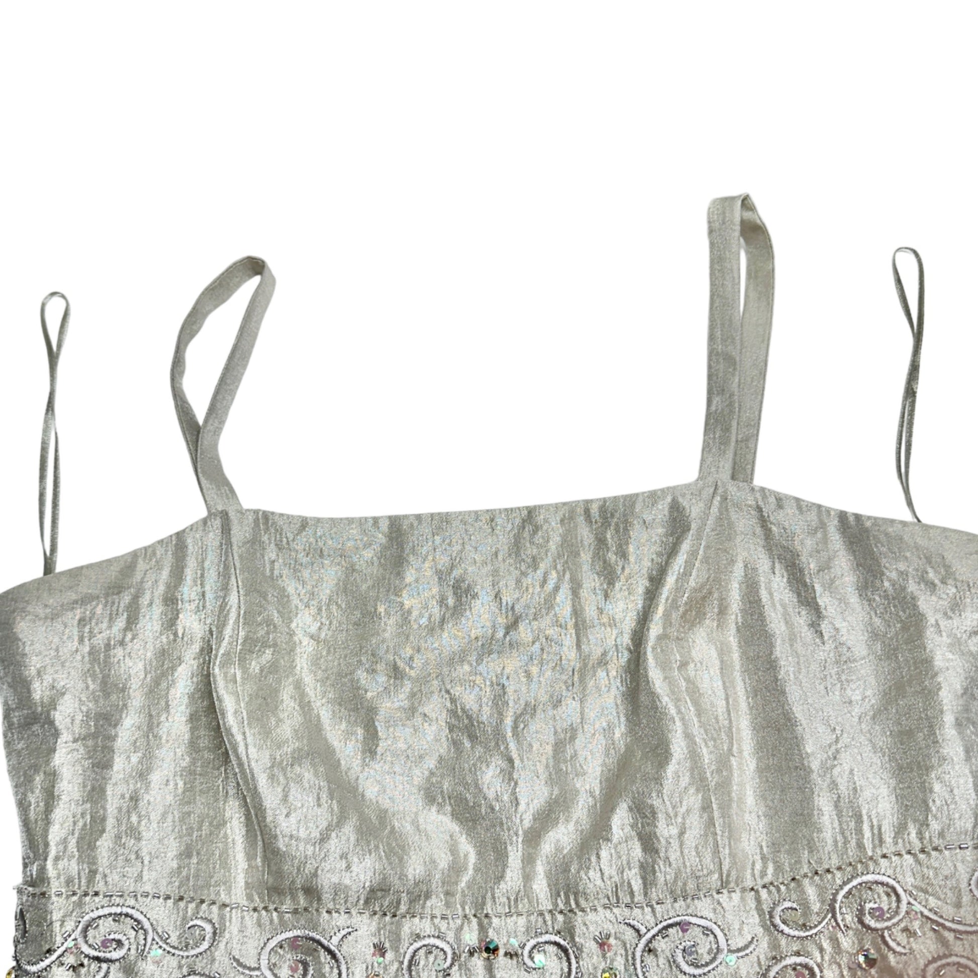 R&M Collection 2pc Dress Jacket Set Womens 16 Champagne Gold Tiered Skirt featured embellished empire waist and back zip. Can be worn with or without the jacket. Shimmery and sleek this tiered jacket dress is perfect for any event.