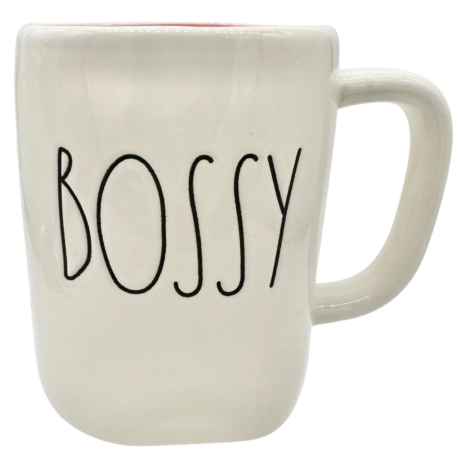 Rae Dunn Artisan Collection 20 oz Mug BOSSY White Black Letter Orange Inside NEW