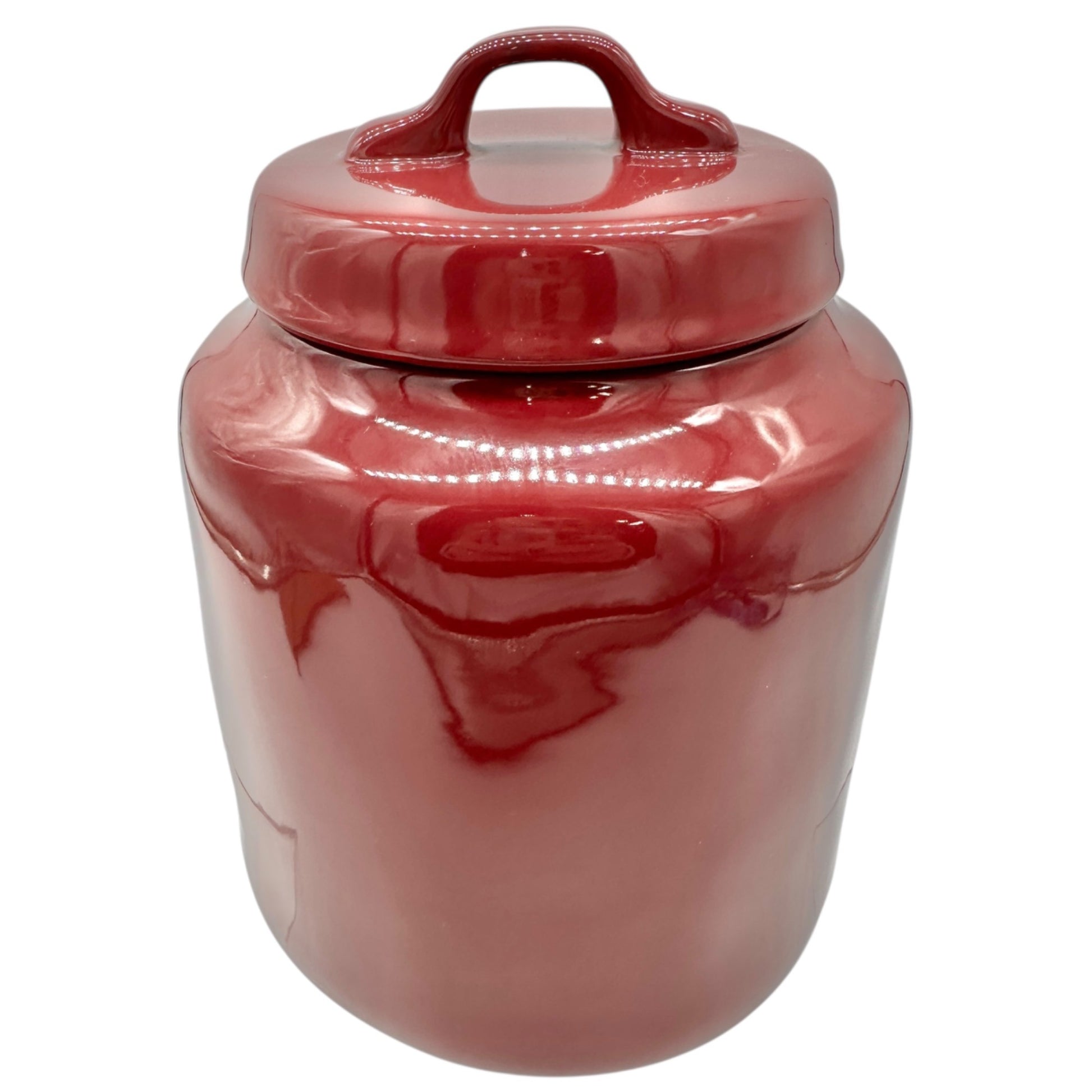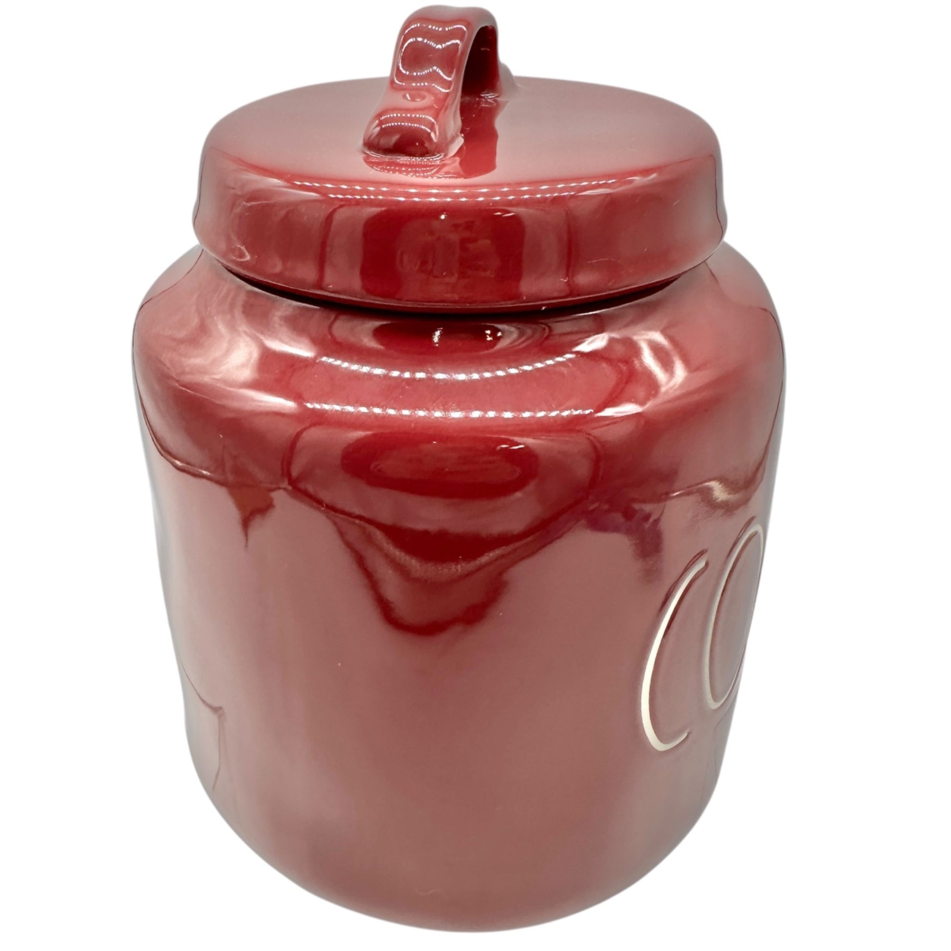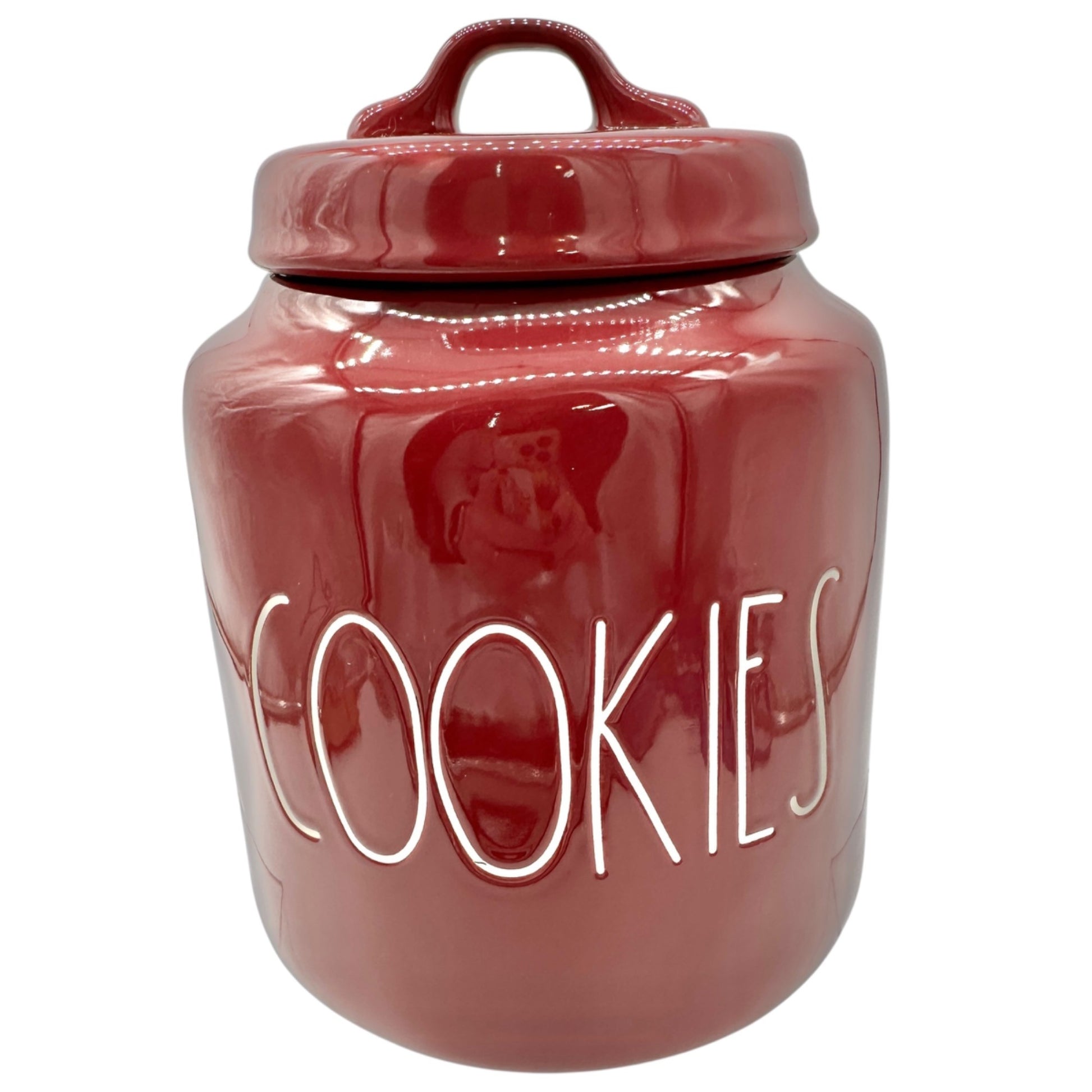 Once upon a kitchen counter, this Rae Dunn "Cookies" jar stood as a guardian of treats. Its bold red ceramic finish adds charm while safely holding sweet treasures. A tale of style and function, it invites you to savor moments of indulgence.