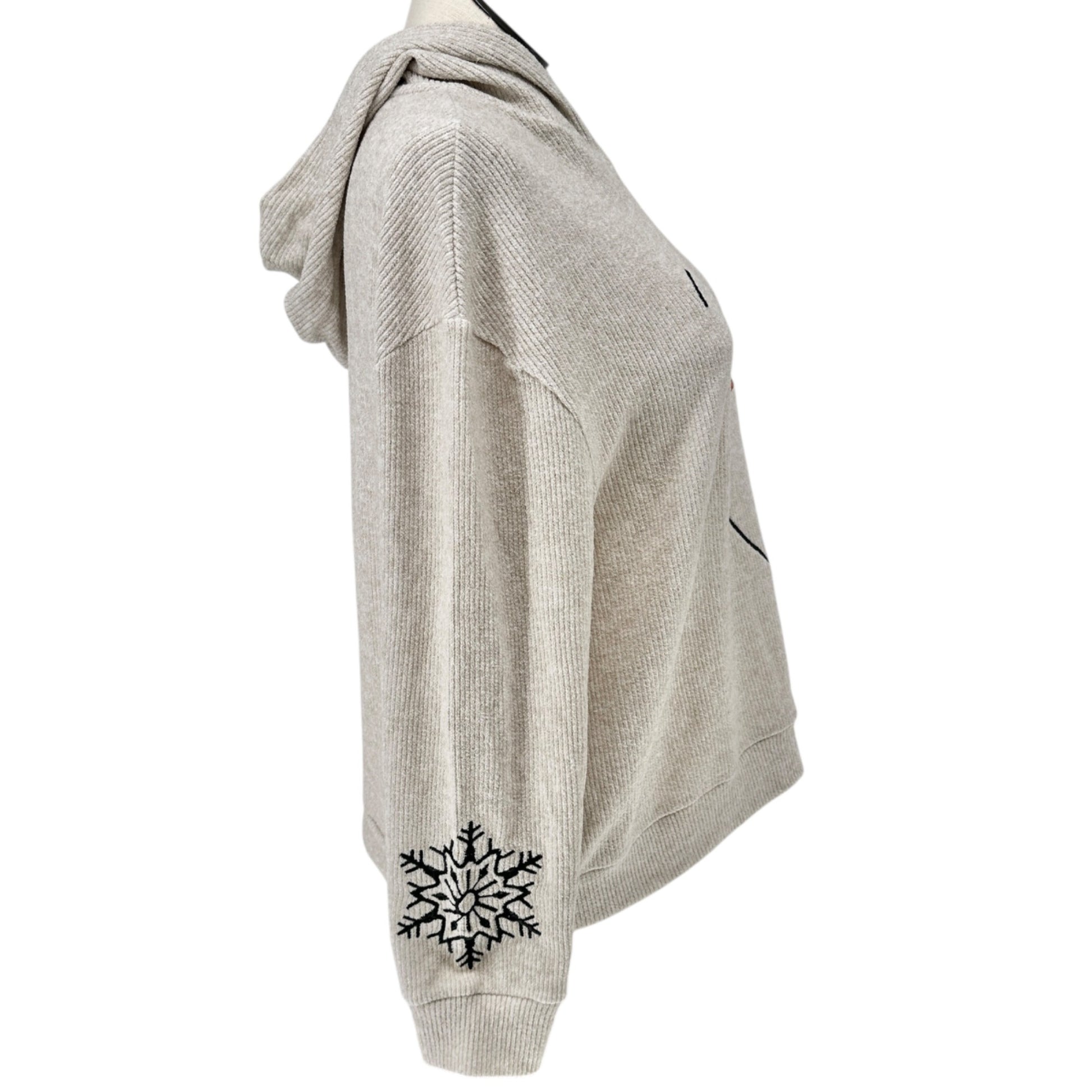 Ribbed Knit Hoodie Womens XXL Snowman Face Embroidery Soft Comfortable NEW